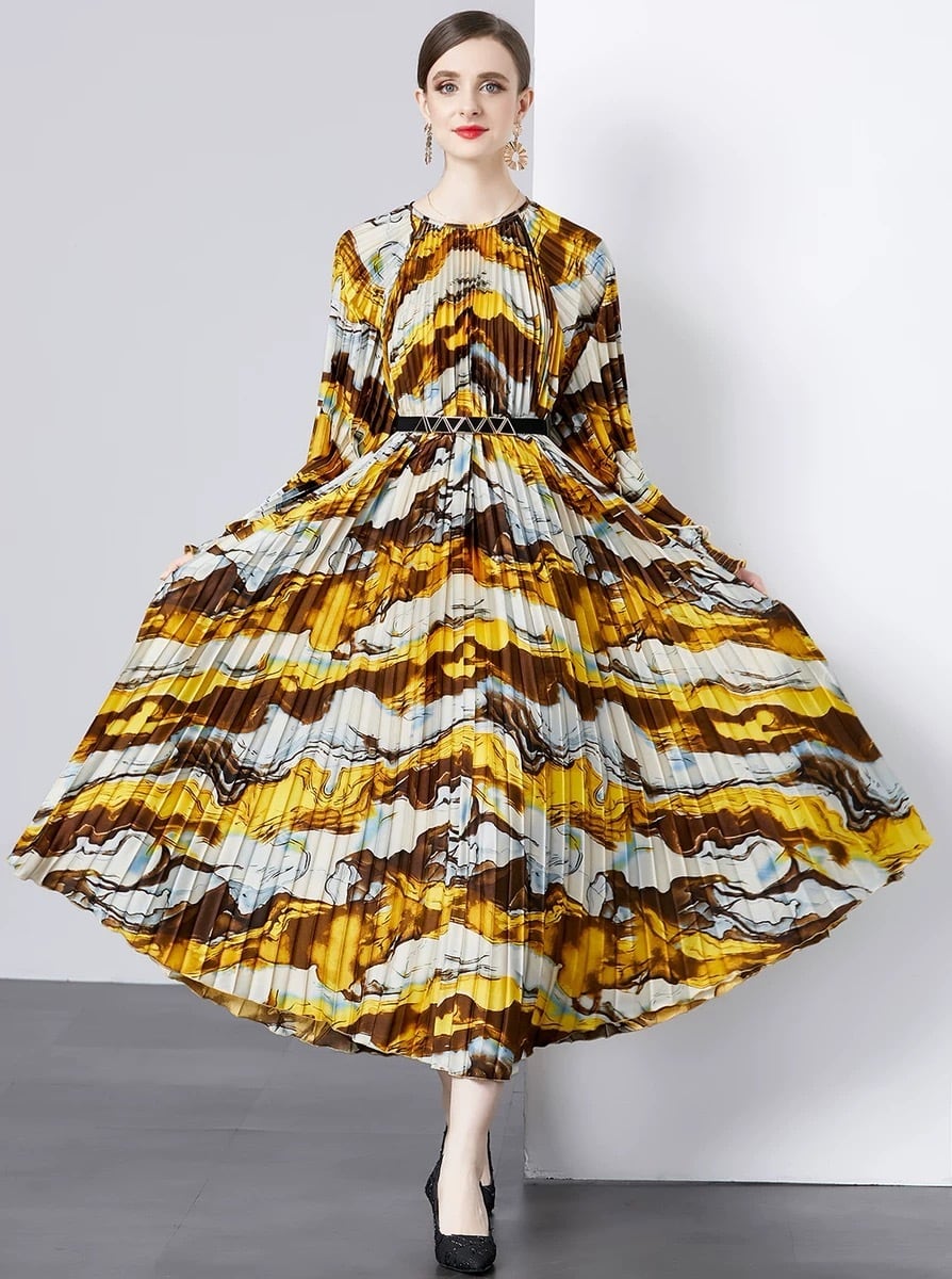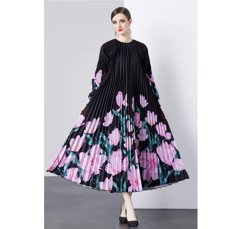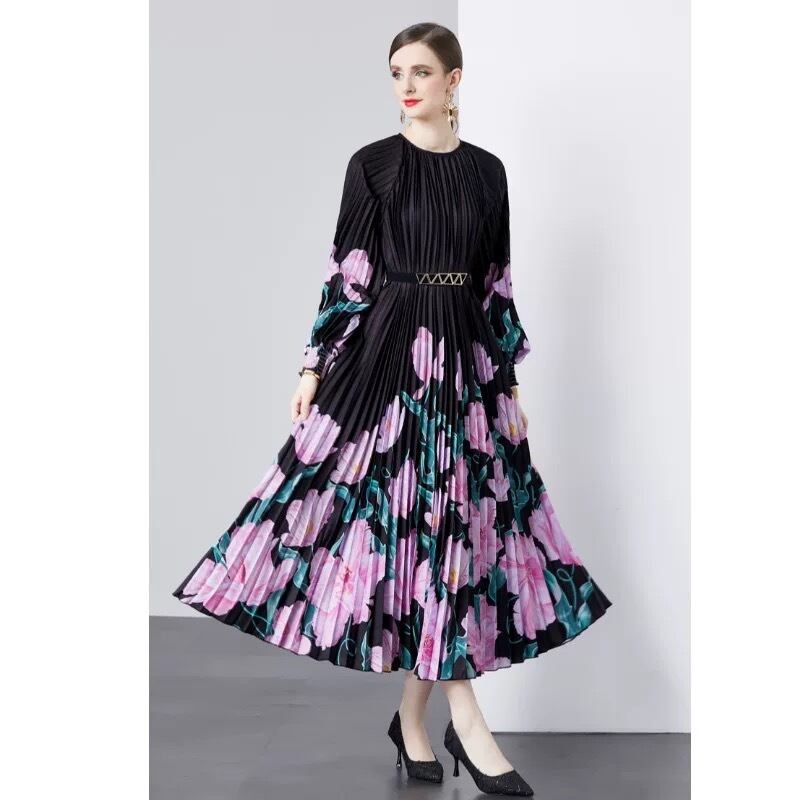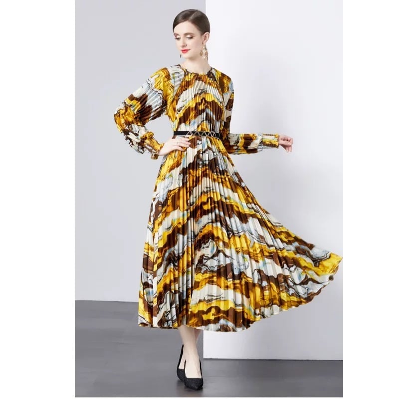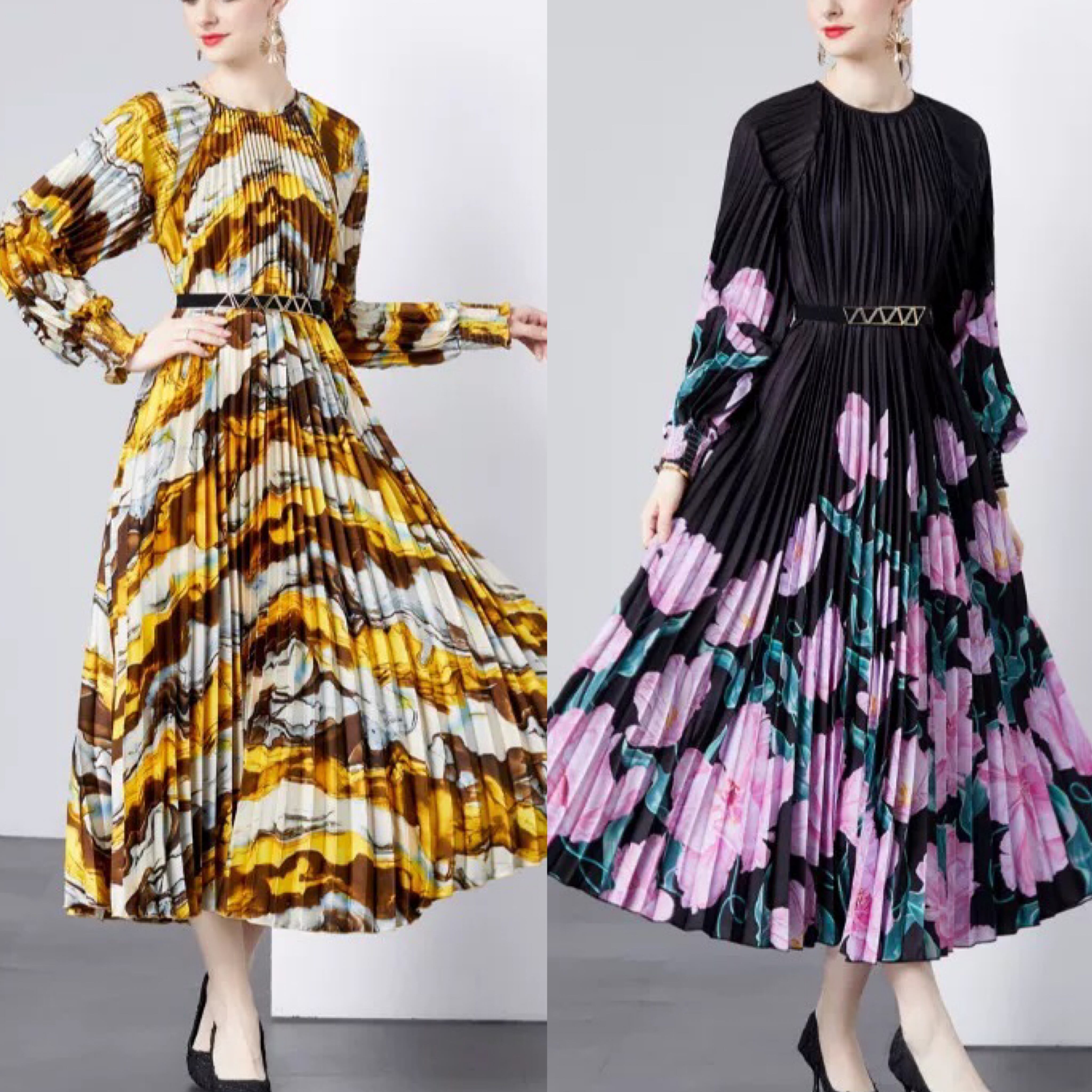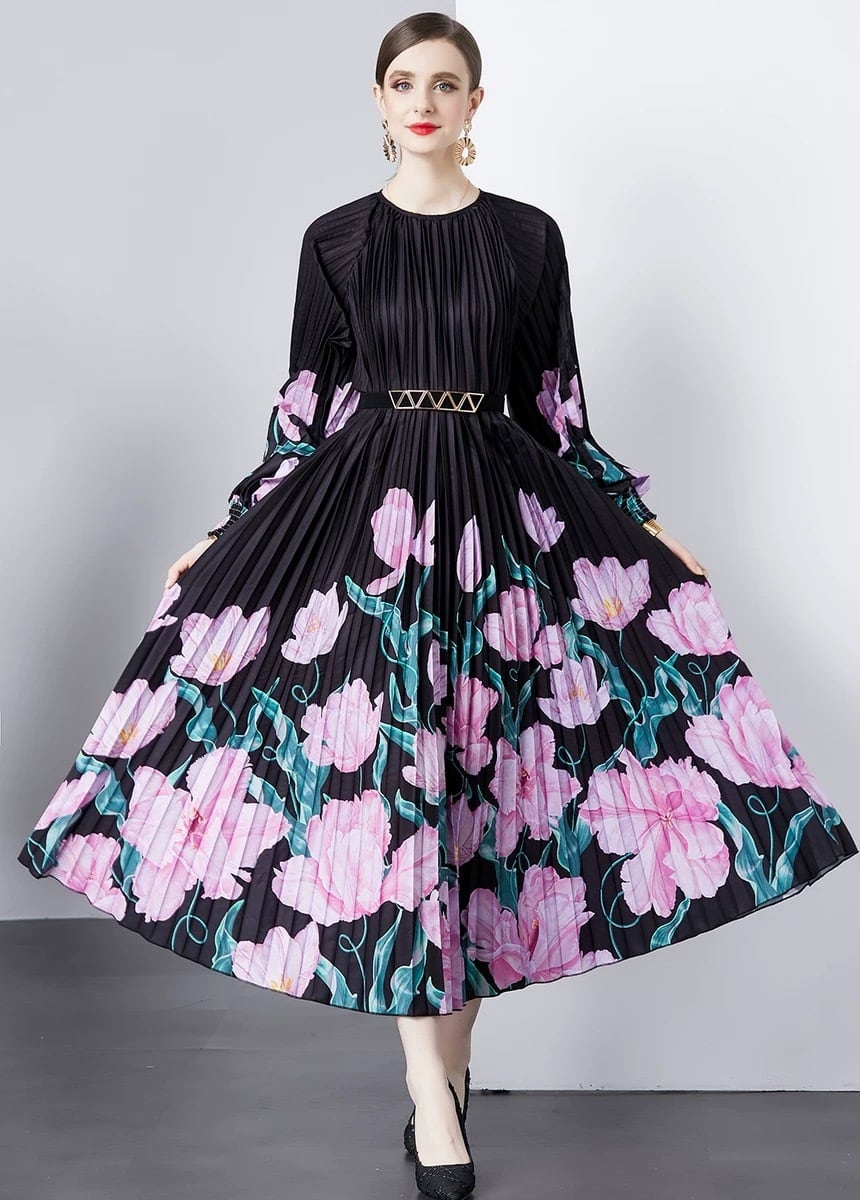 黄色 グラデーション マーブル 花柄 ピンク 黒 ワンピース