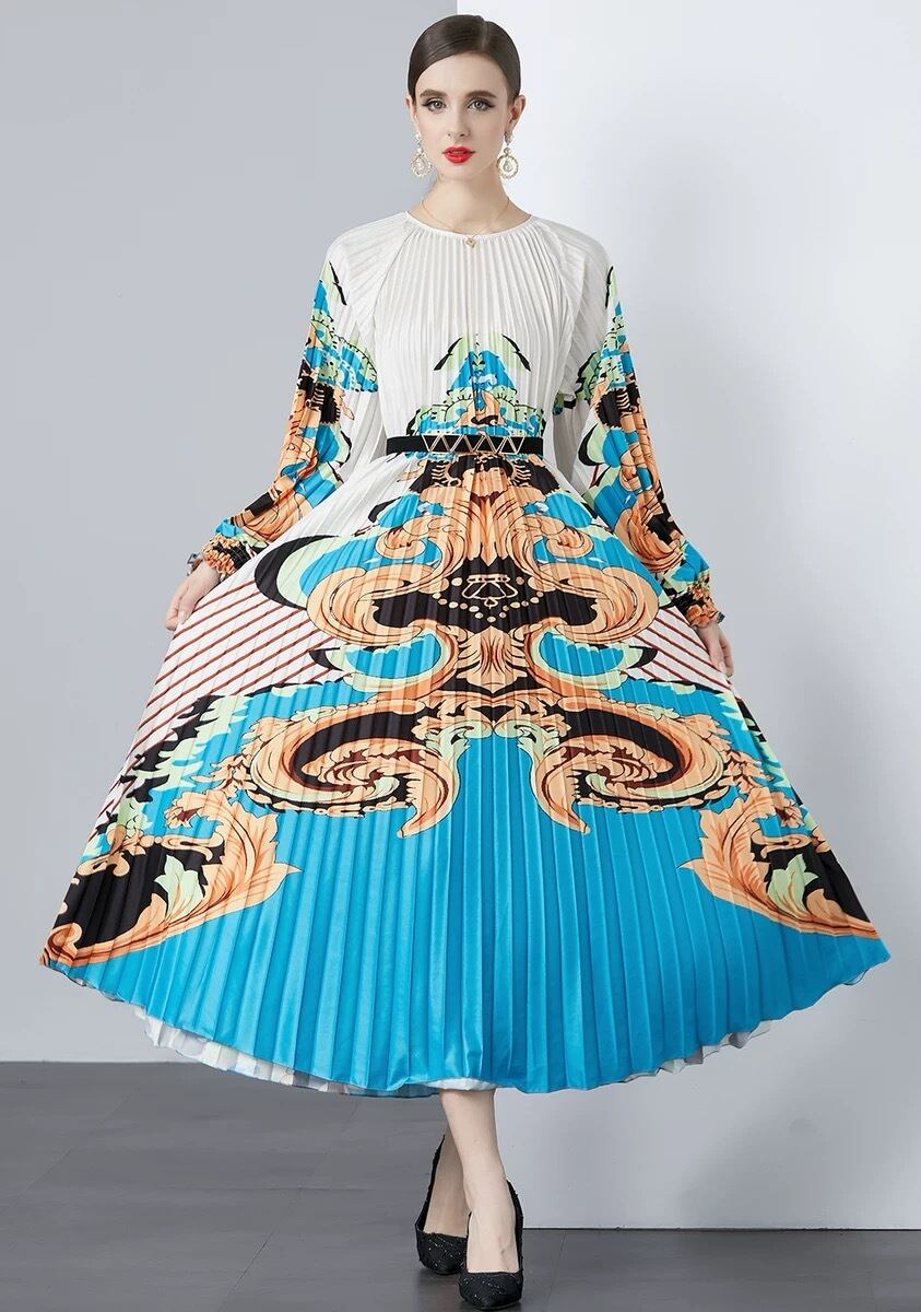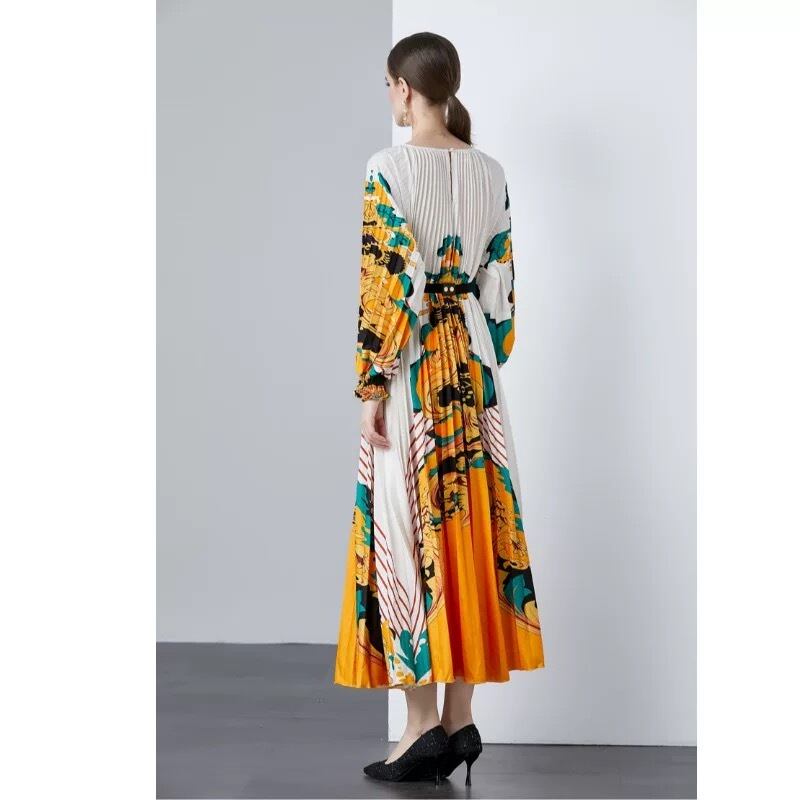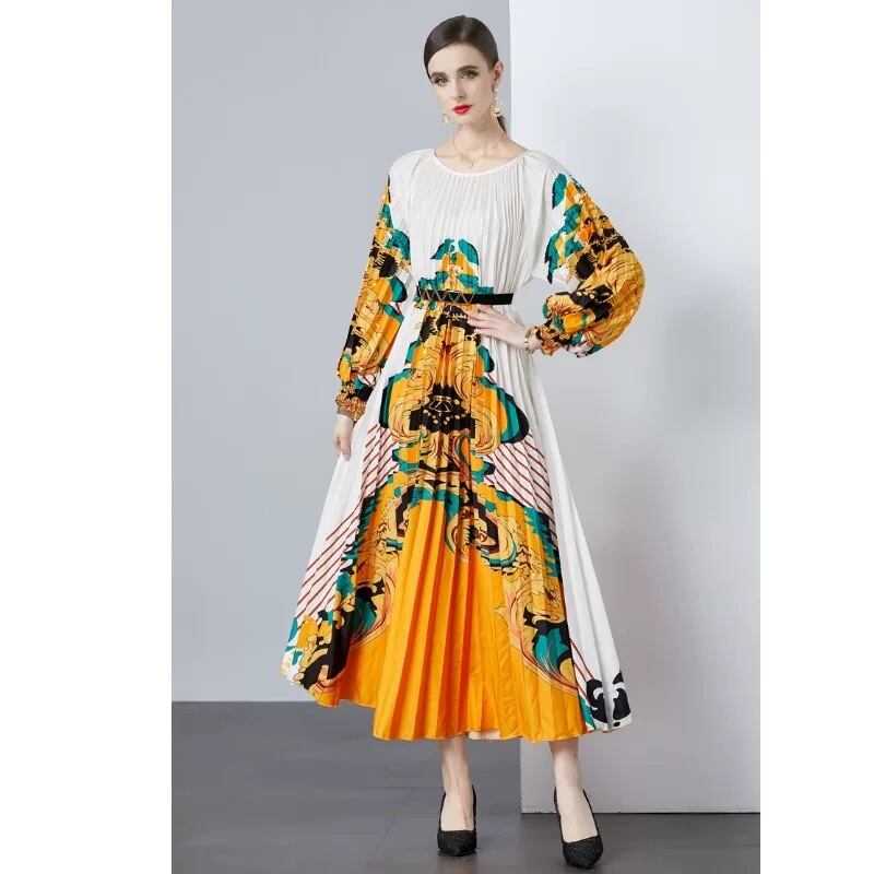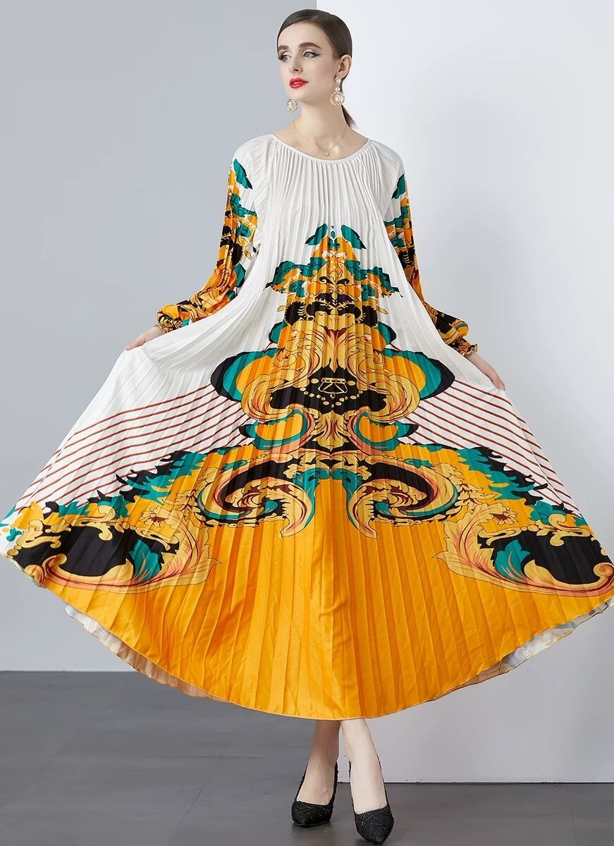 黄色 フラワー スカーフ ワンピース 水色 ゆったり