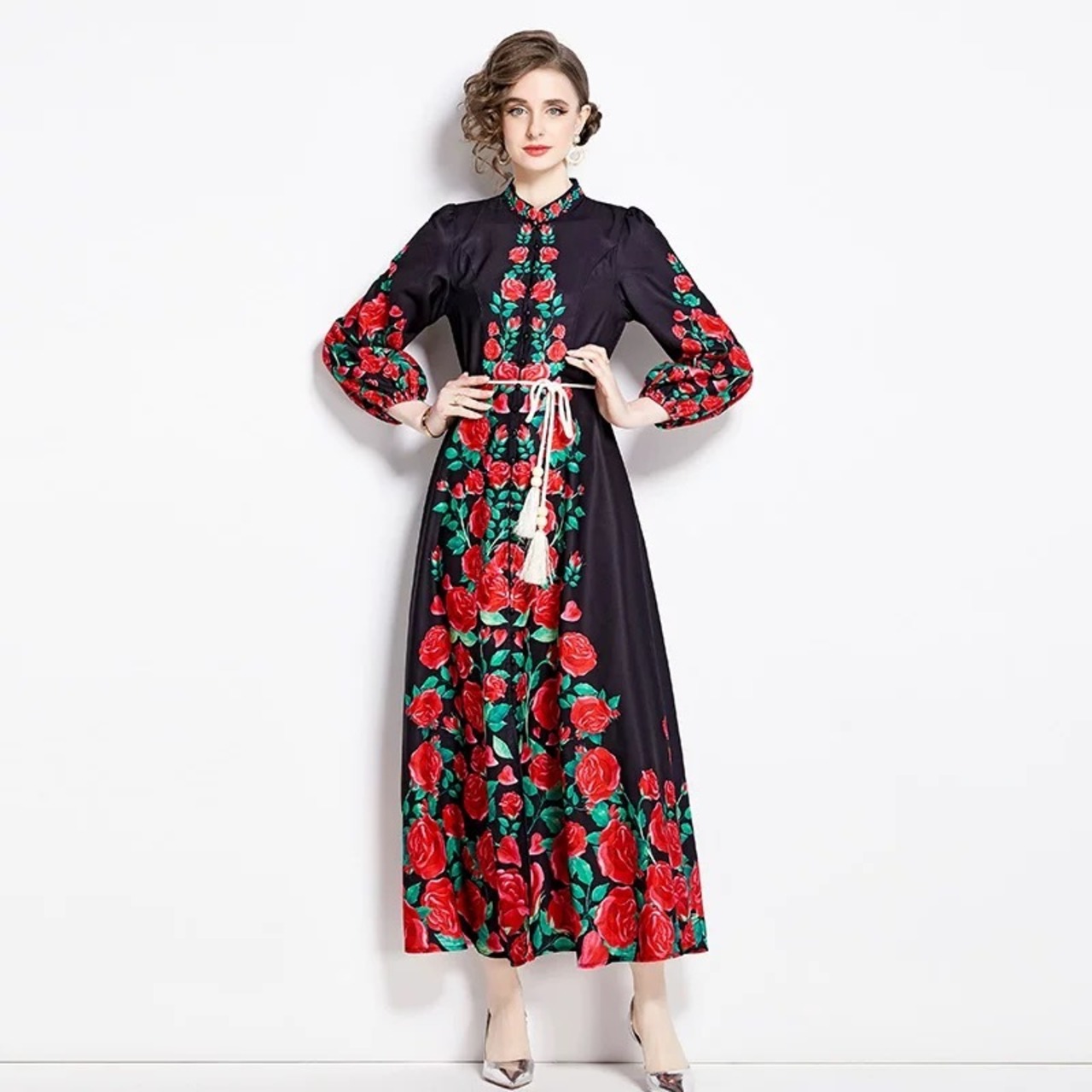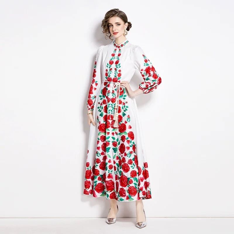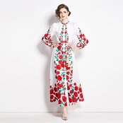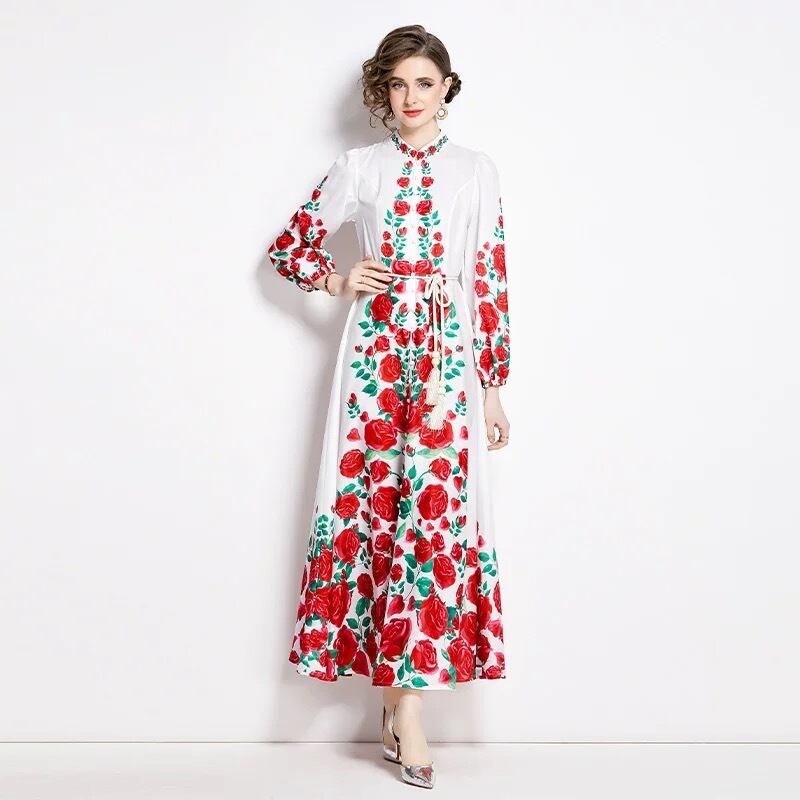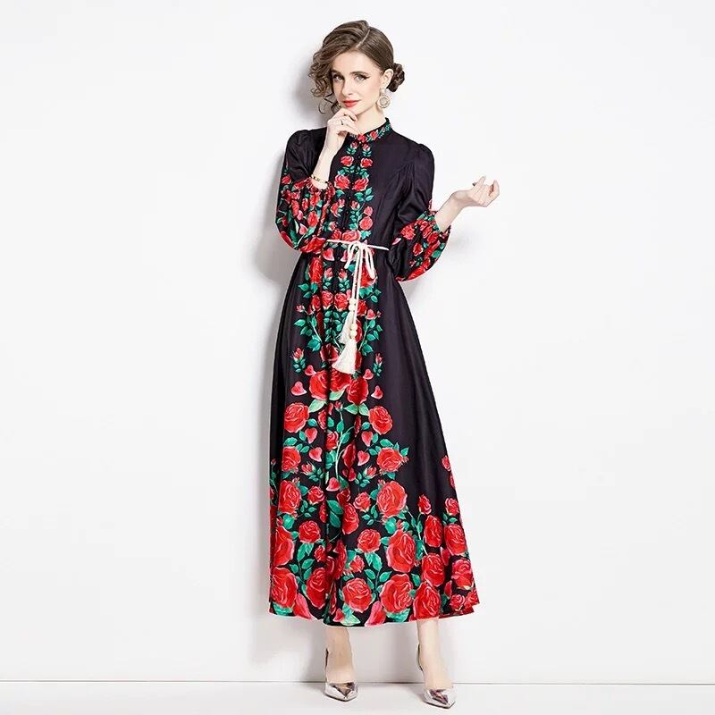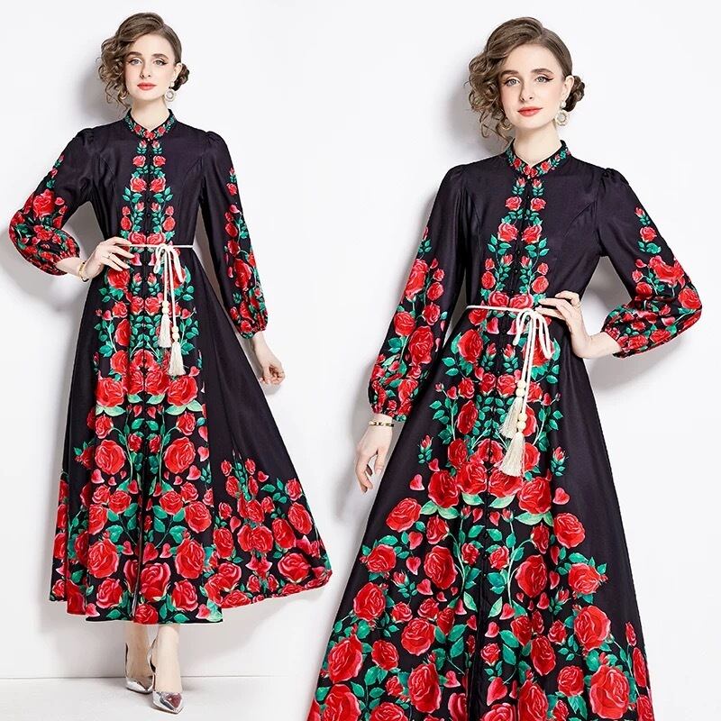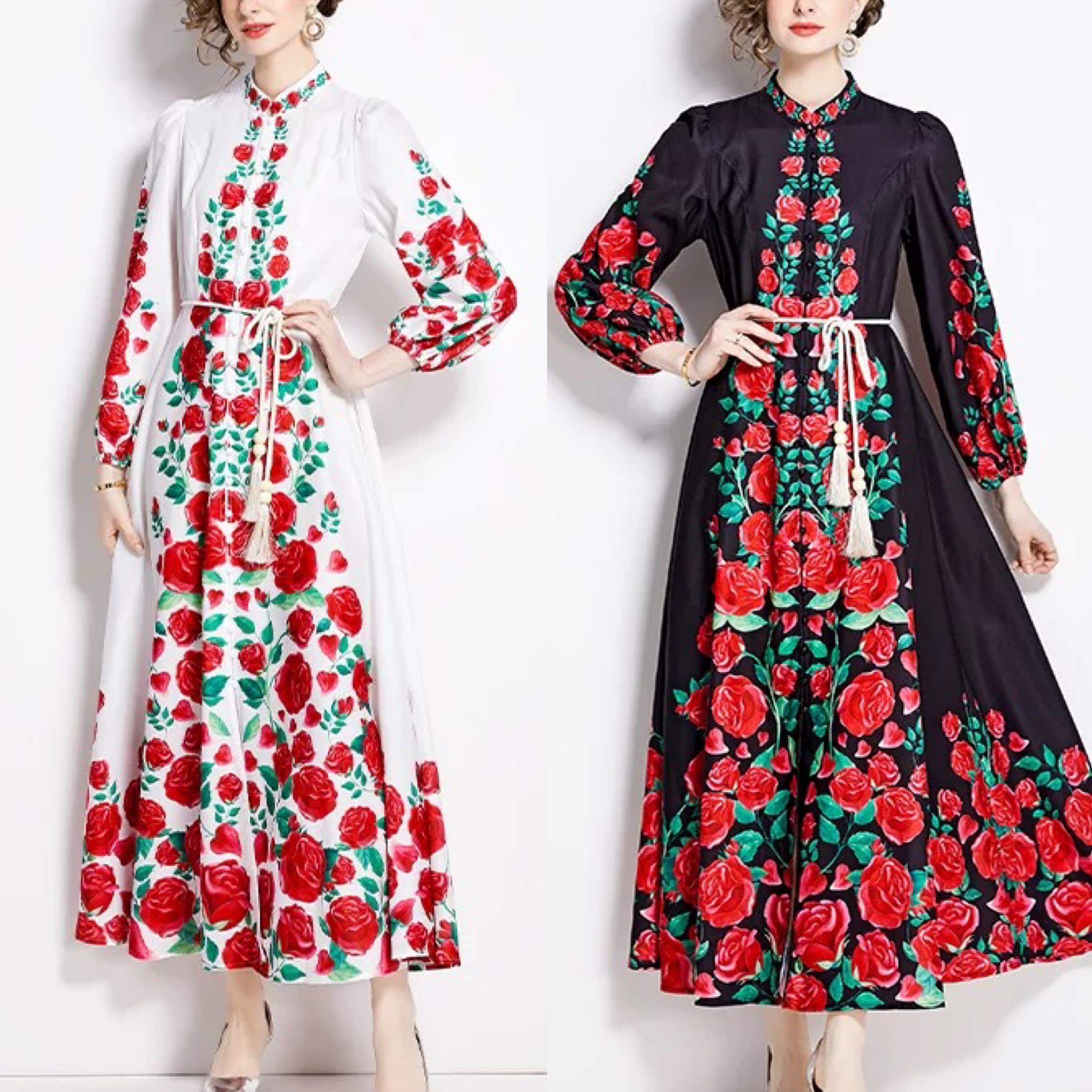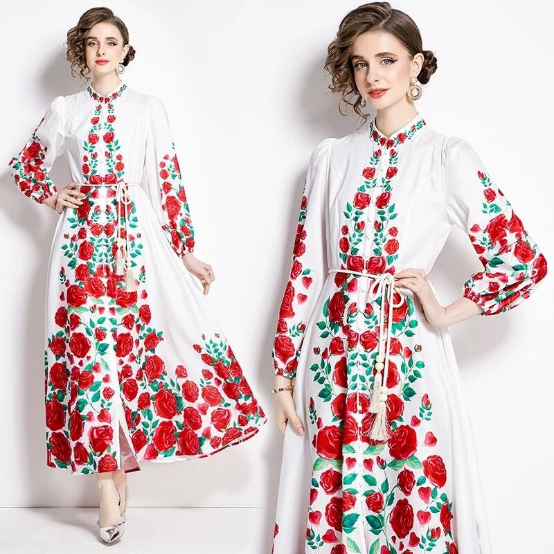 赤 黒 花柄 フラワー 白 ワンピース ゆったり