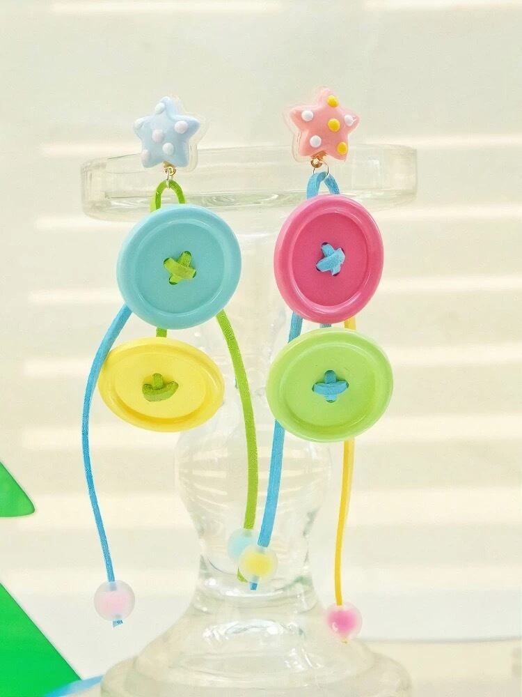 ボタン カラフル 原宿 ゆらゆら ピアス