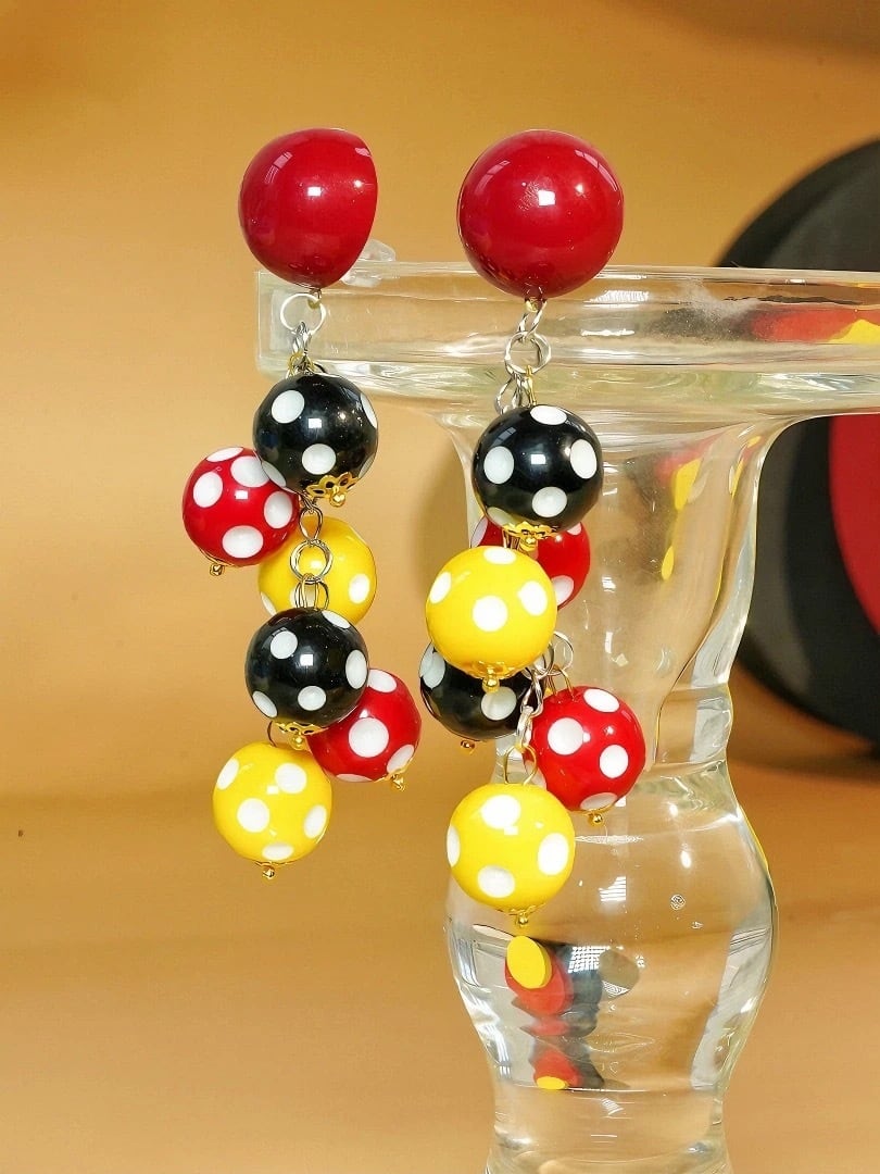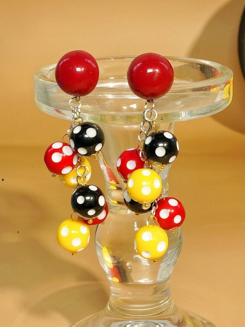 ゆらゆら 黄色 水玉 ドット ピアス 黒