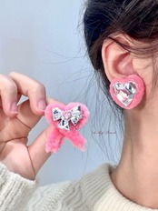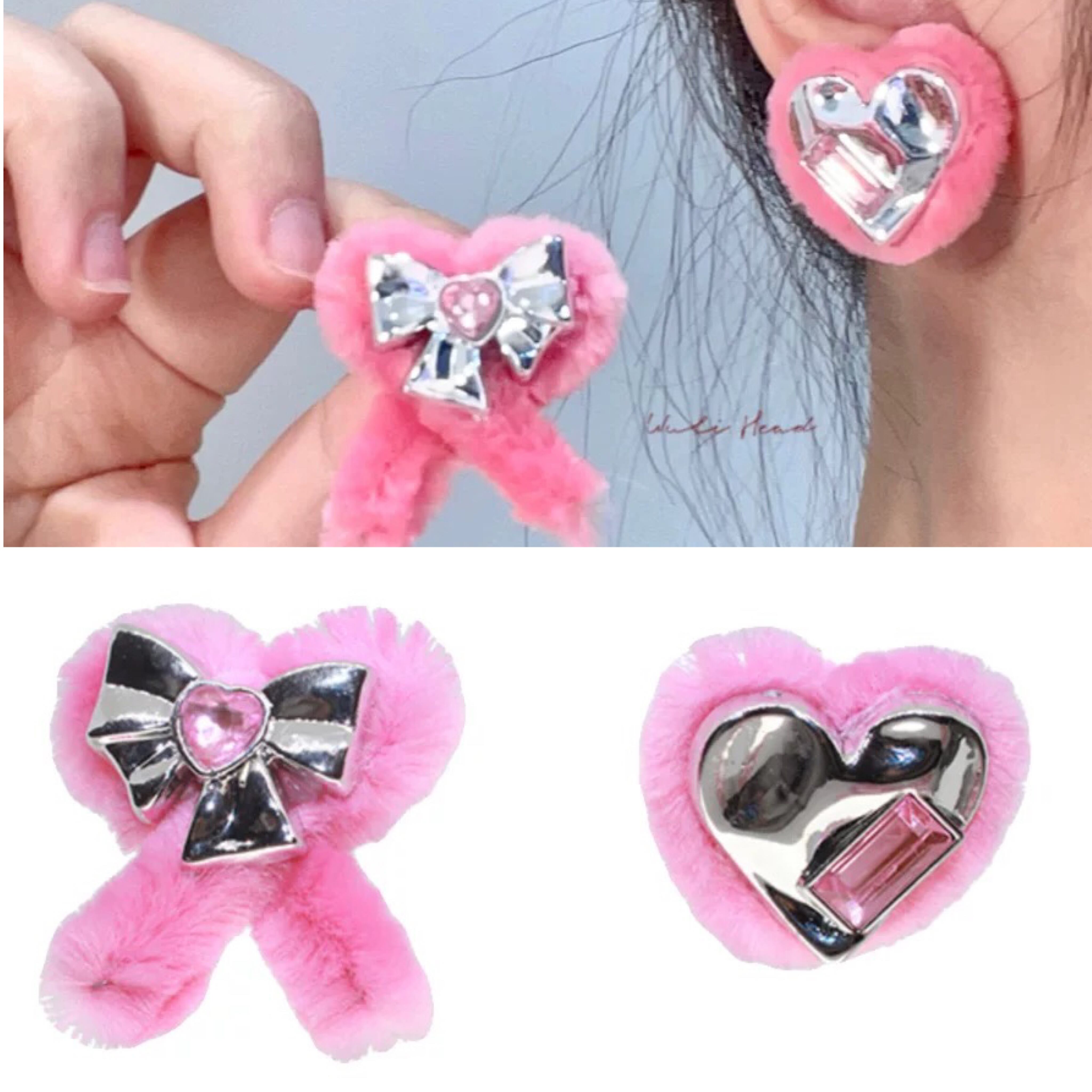 【イヤリングあり】ハート ピンク ピアス リボン