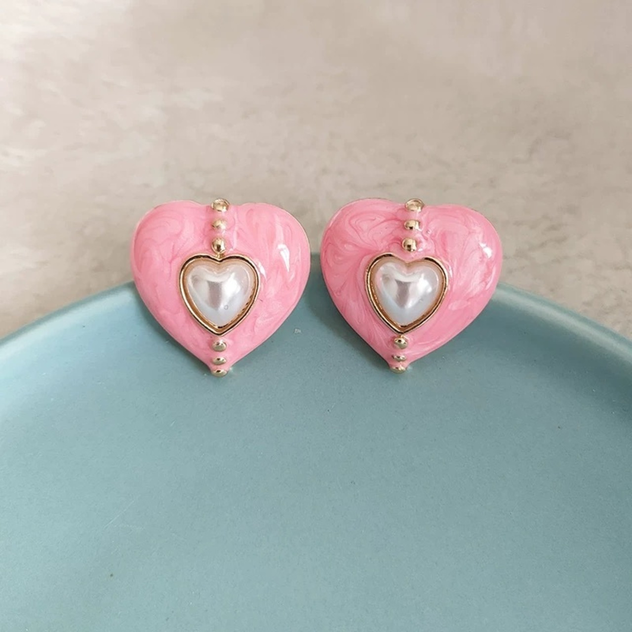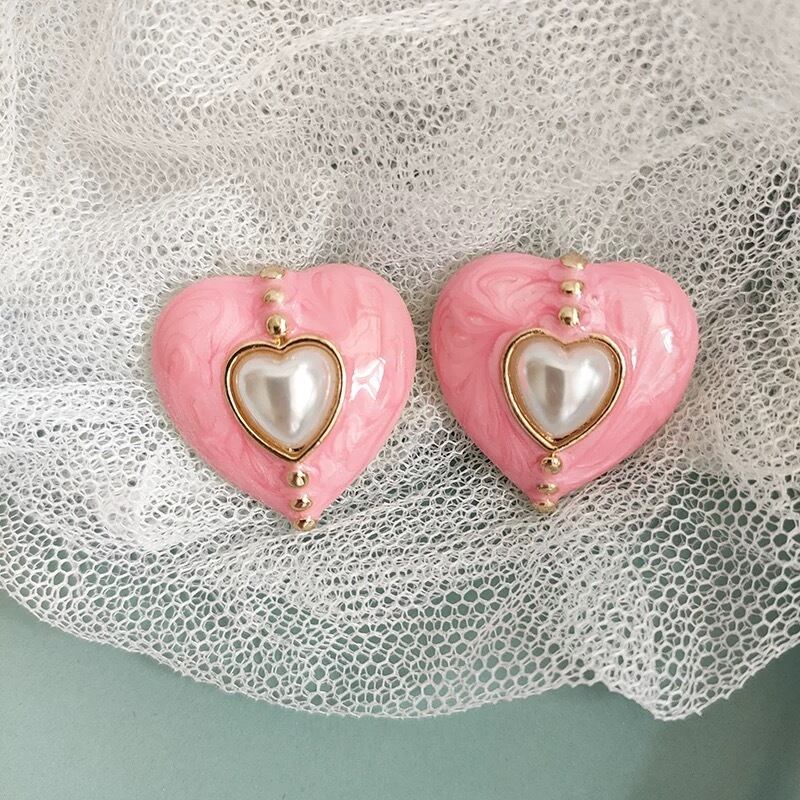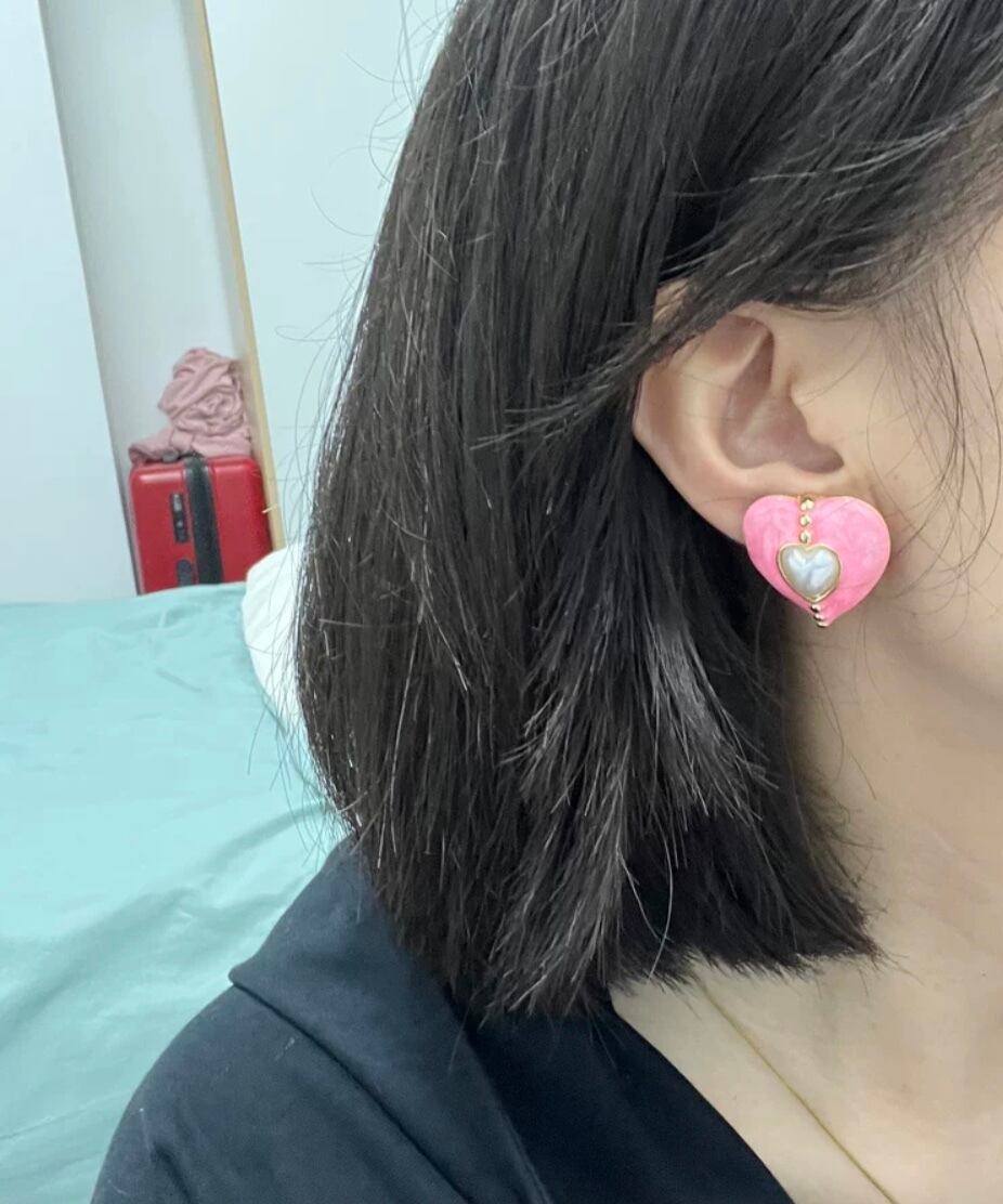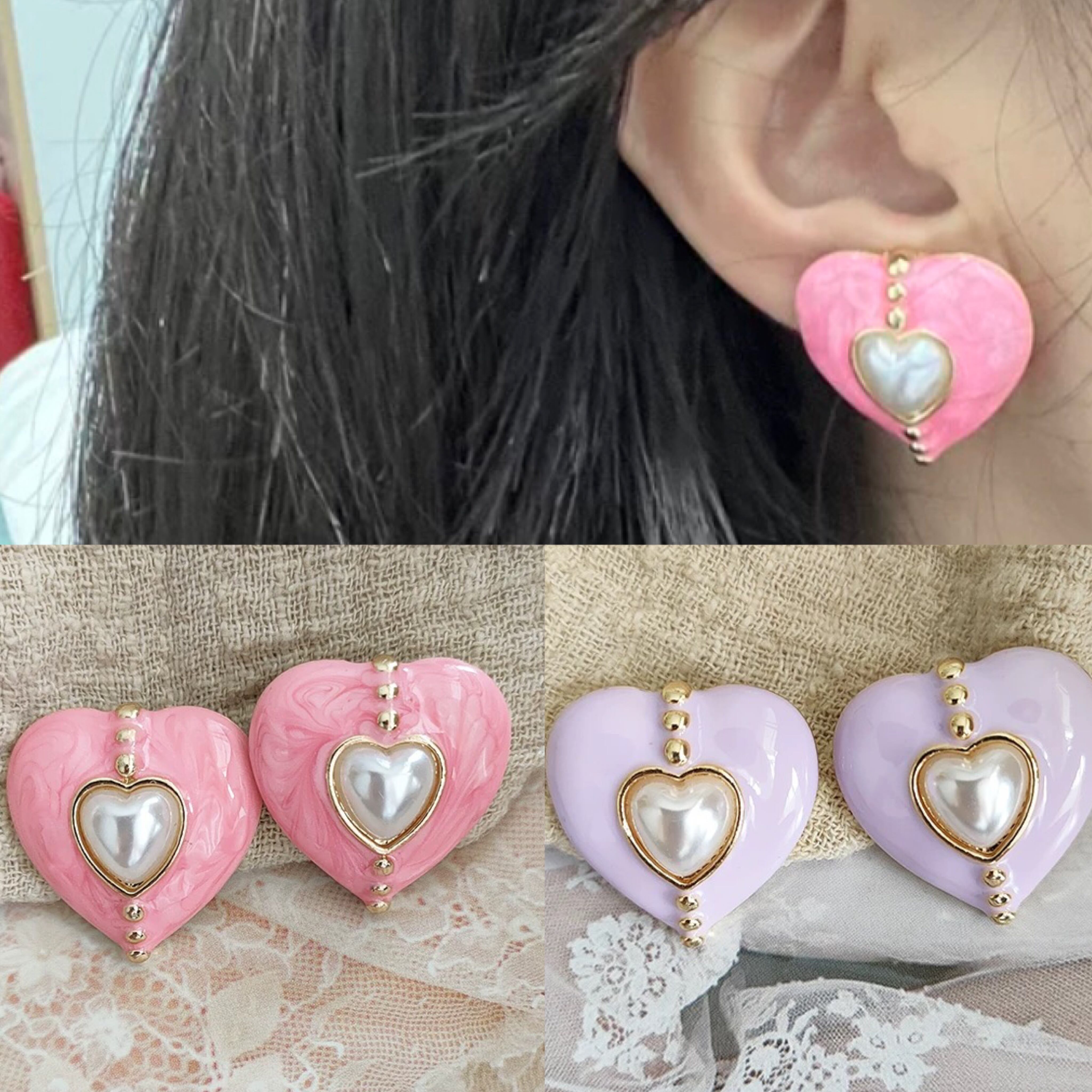 ピンク 紫 ハート クラシック ピアス パール