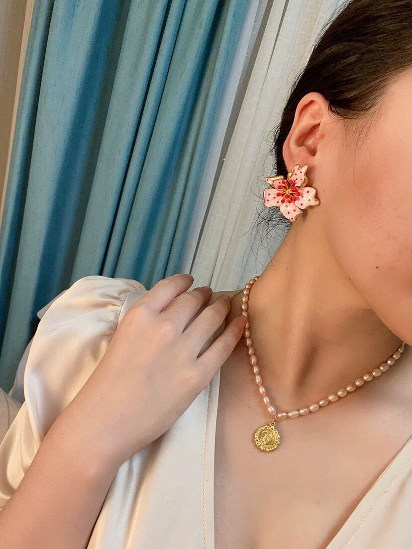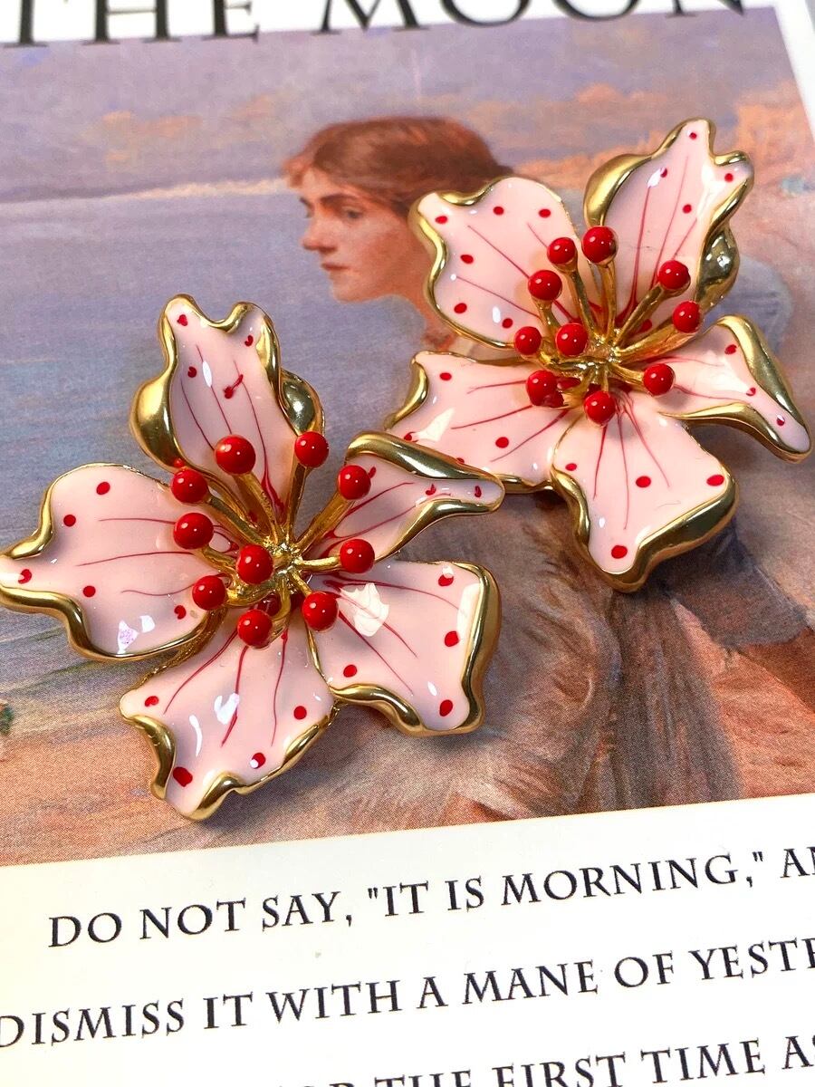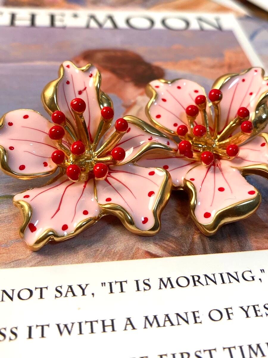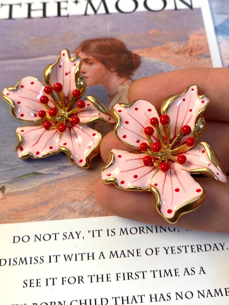 ピンク 水玉 フラワー 花柄 花 ピアス クラシック