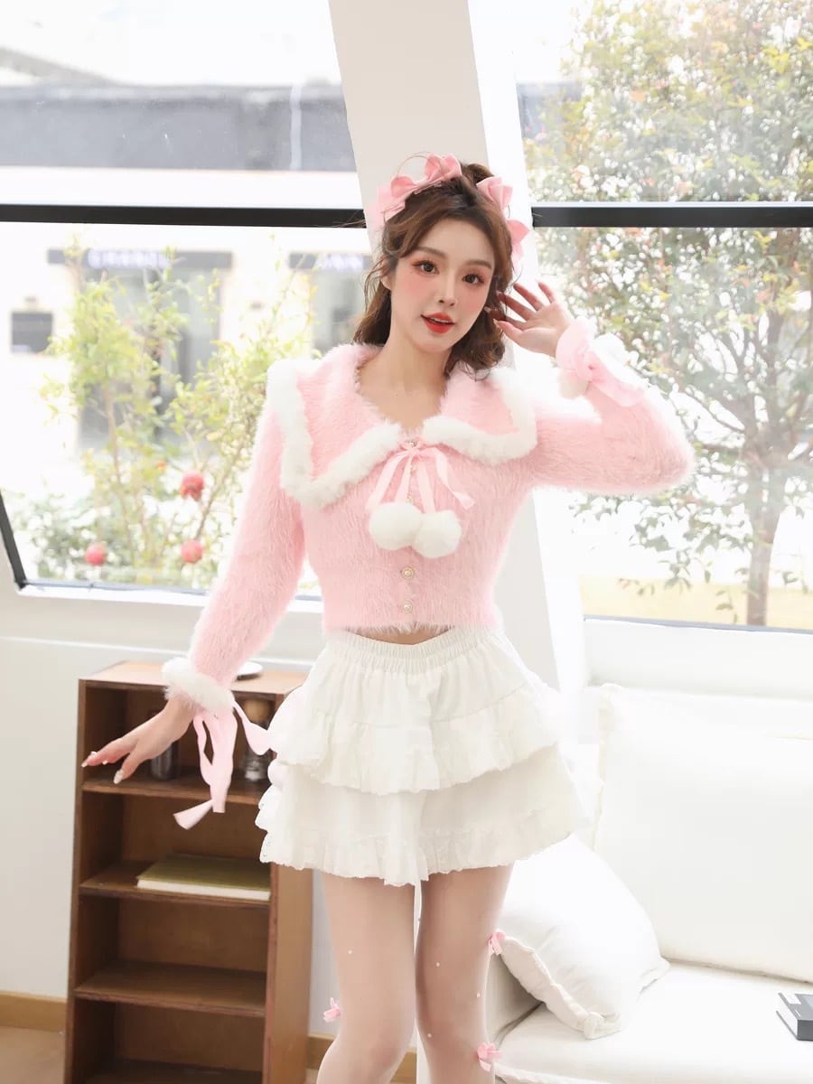 ピンク カーディガン セーター 襟 可愛い ガーリー