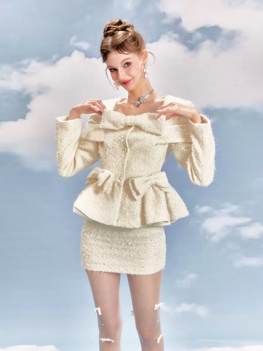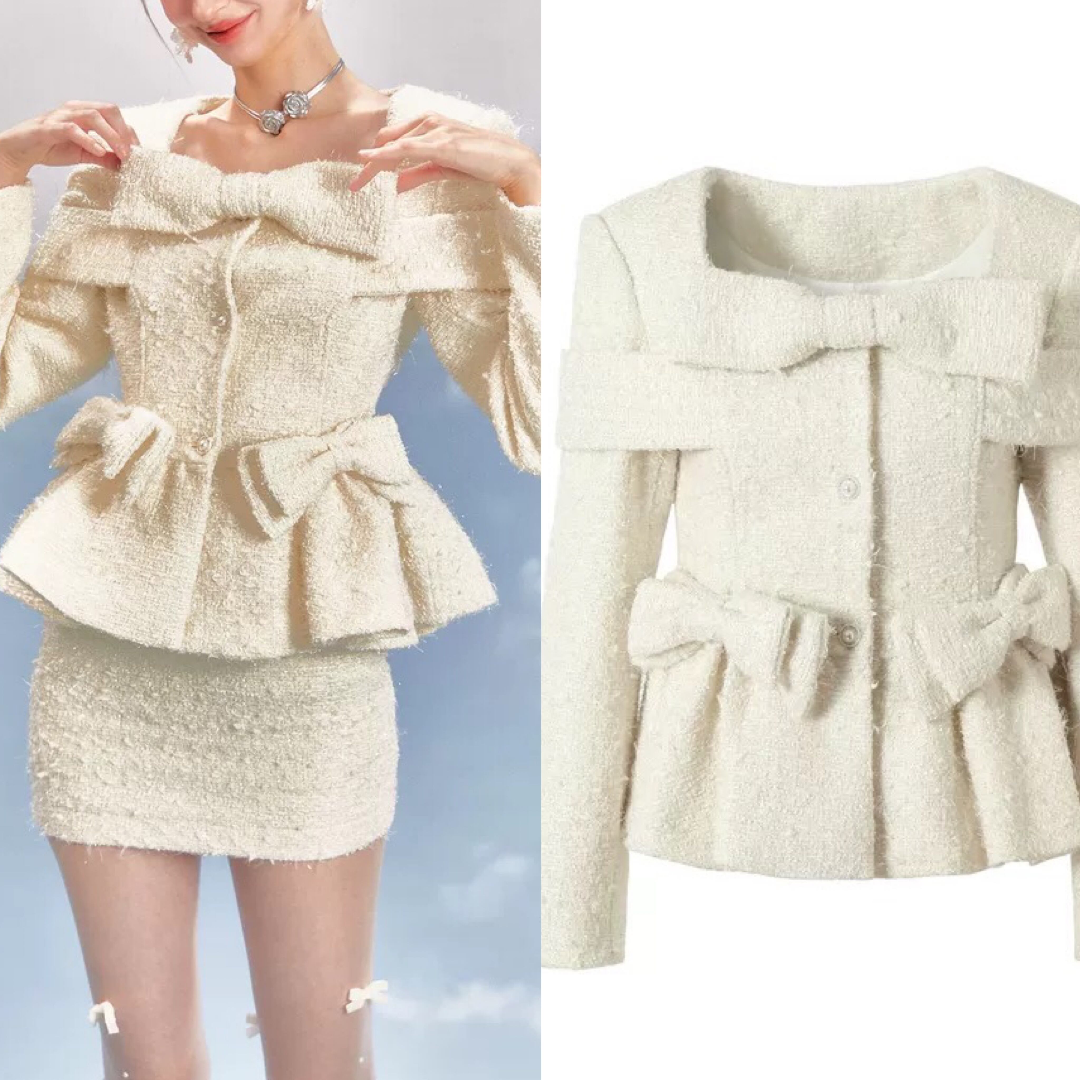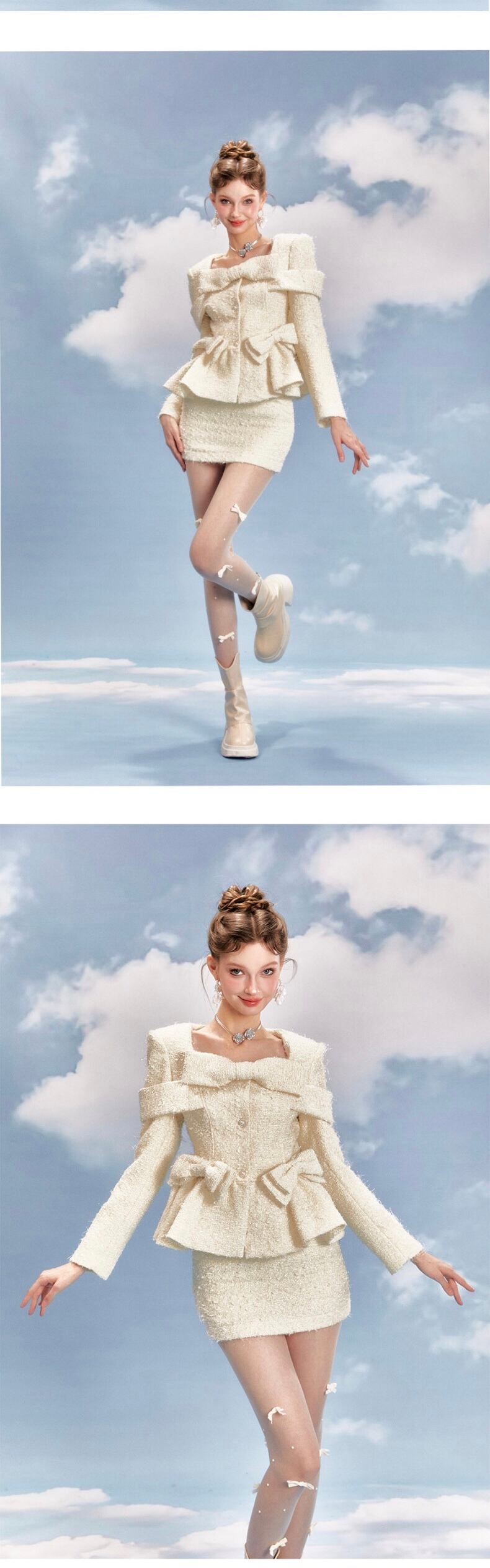 【ジャケット】ガーリー スーツ 白 リボン 可愛い ツーピース