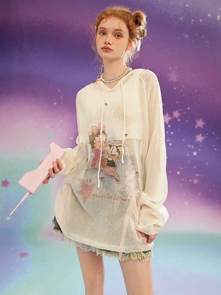 パーカー ニット カジュアル 可愛い 白 トップス ブラウス