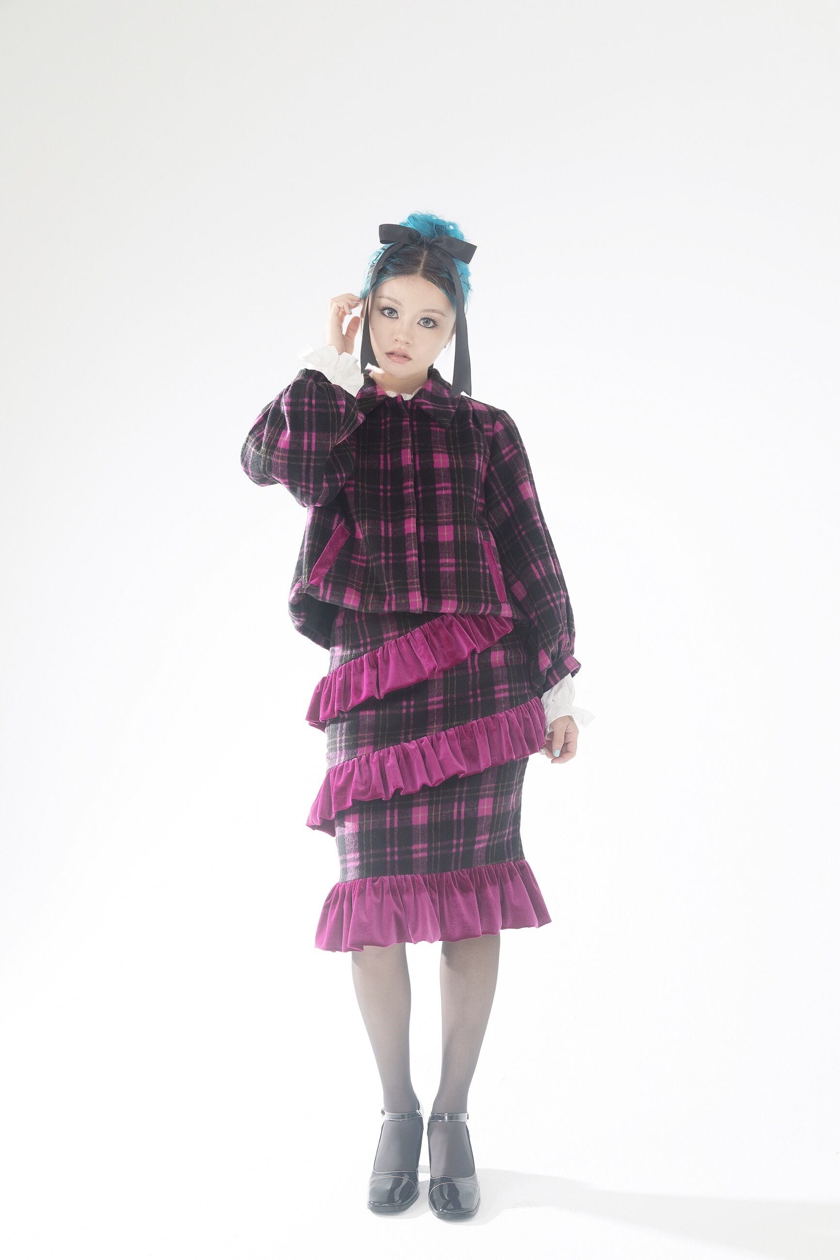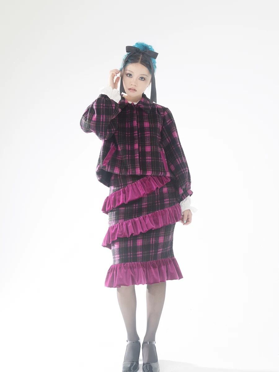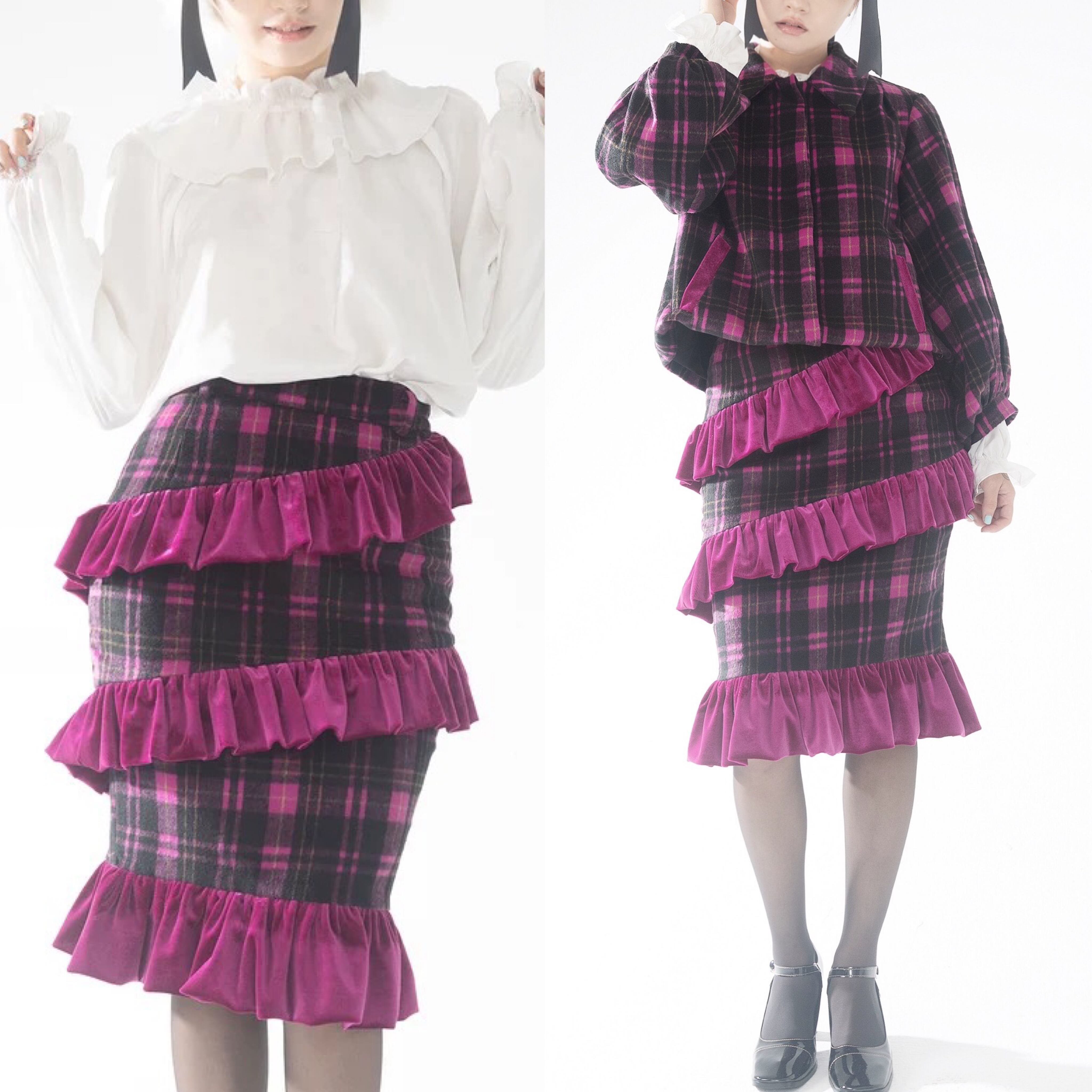 【スカート】ピンク 紫 チェック ボトムス リボン フリル