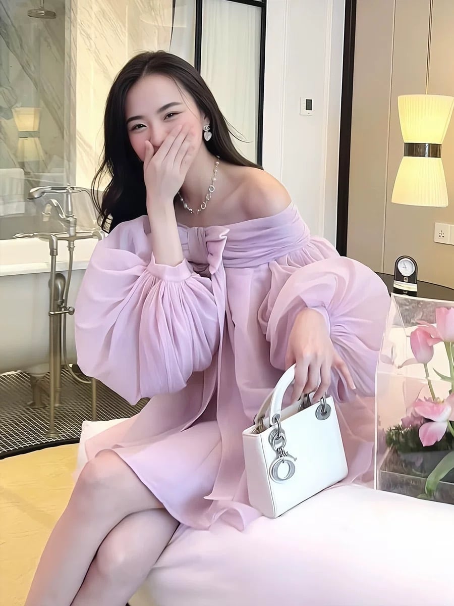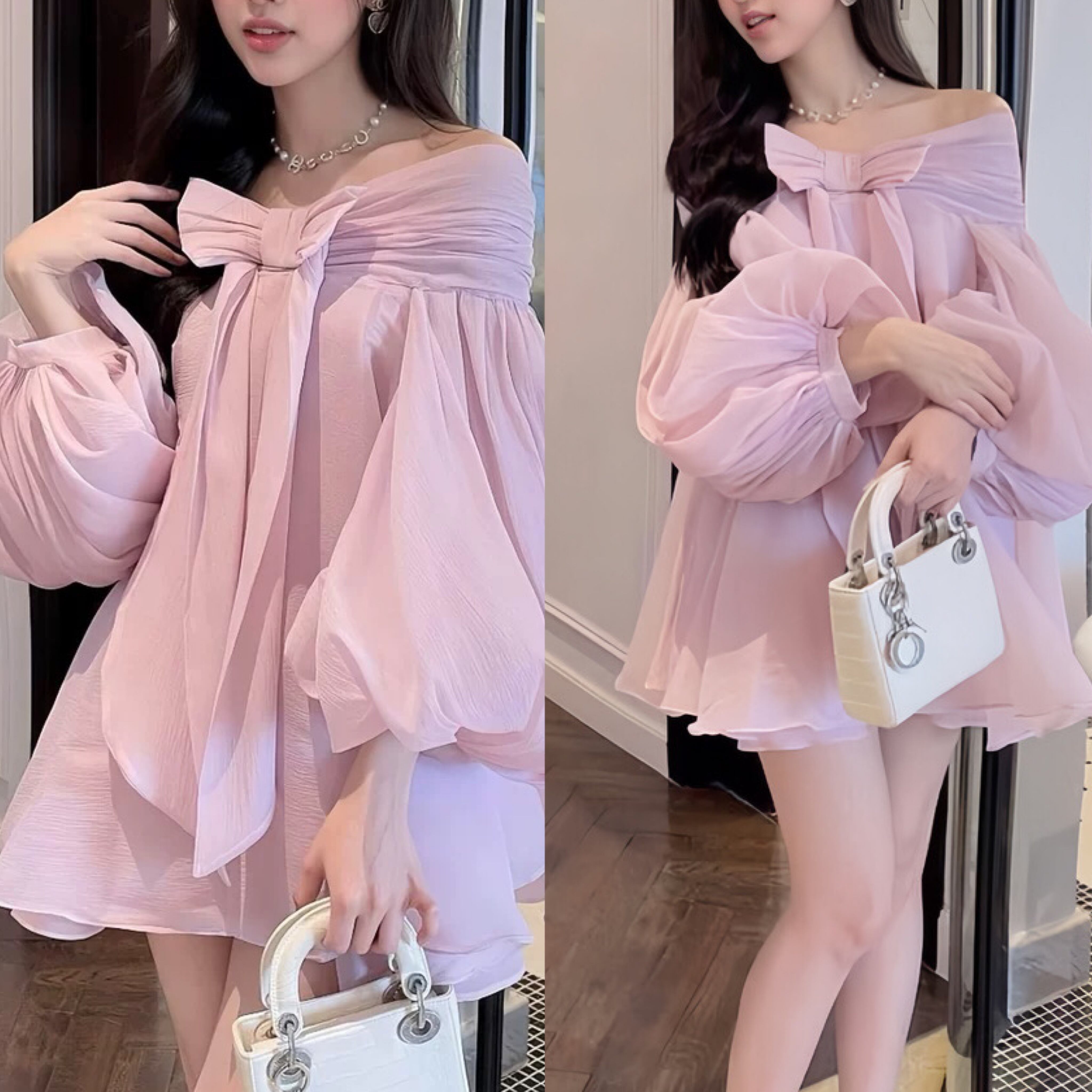 ワンピース オフショルダー ピンク リボン エレガント ブラウス トップス