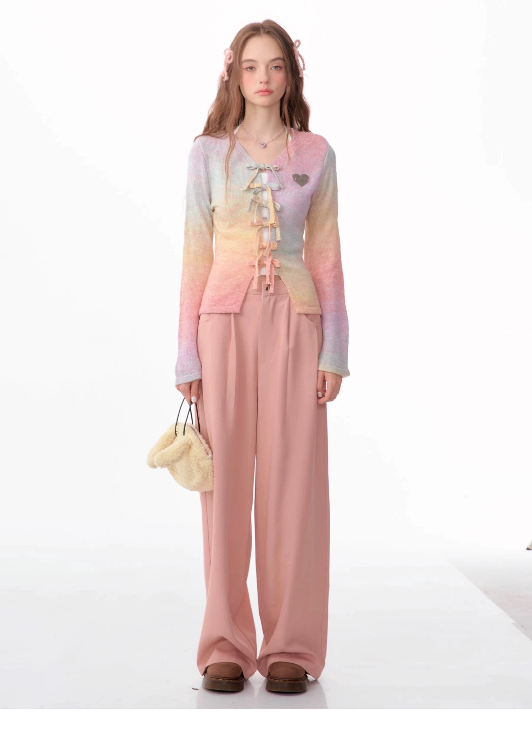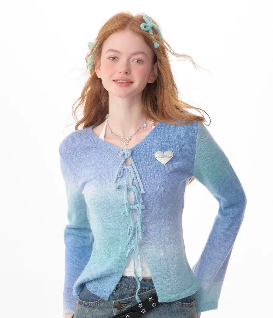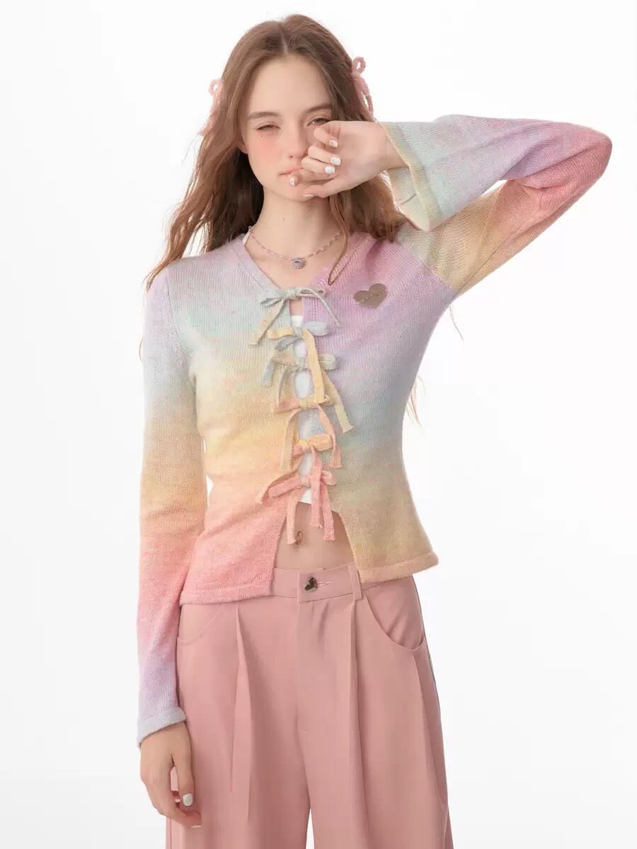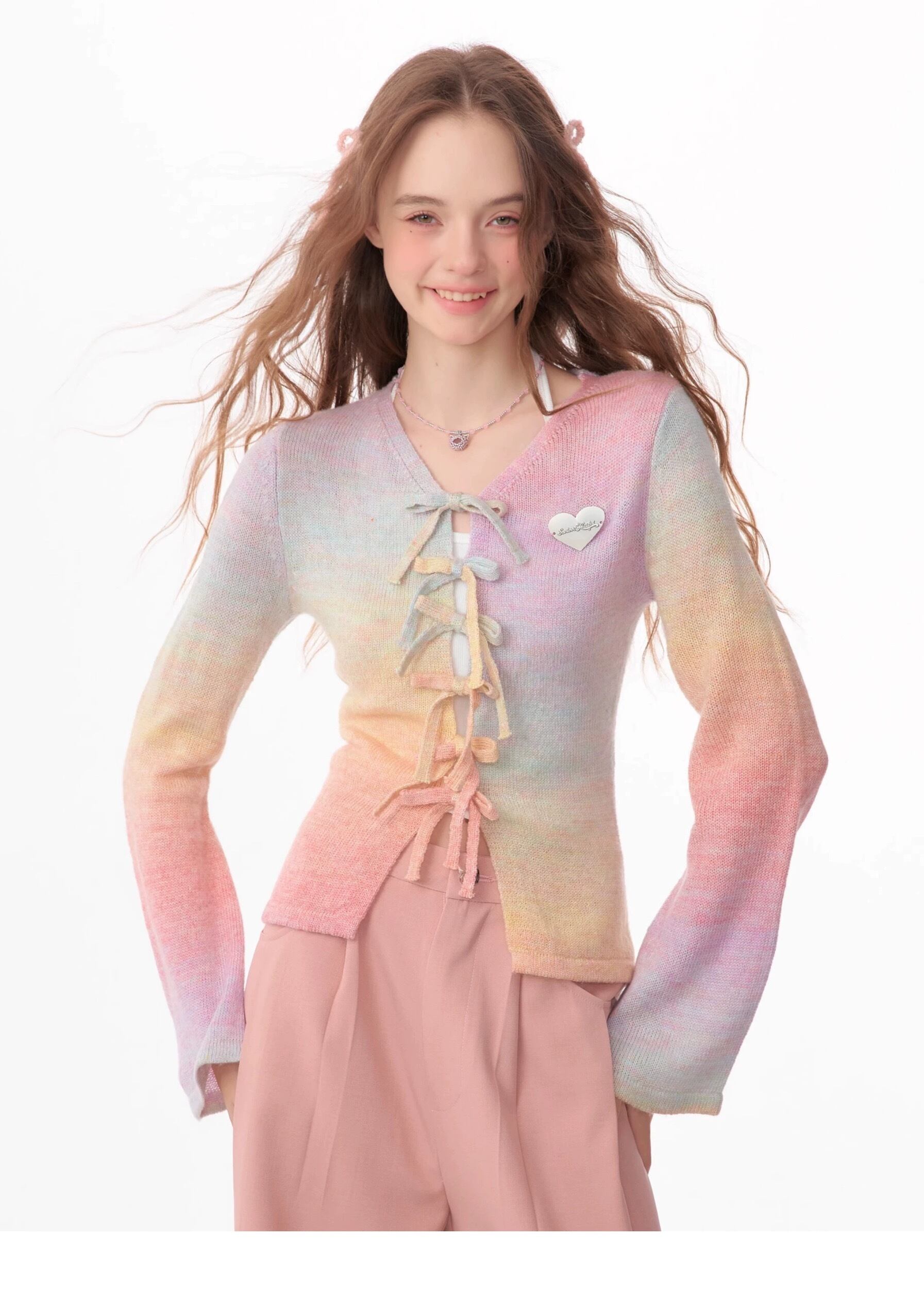 ハート 水色 ピンク レインボー カラフル グラデーション リボン カーディガン