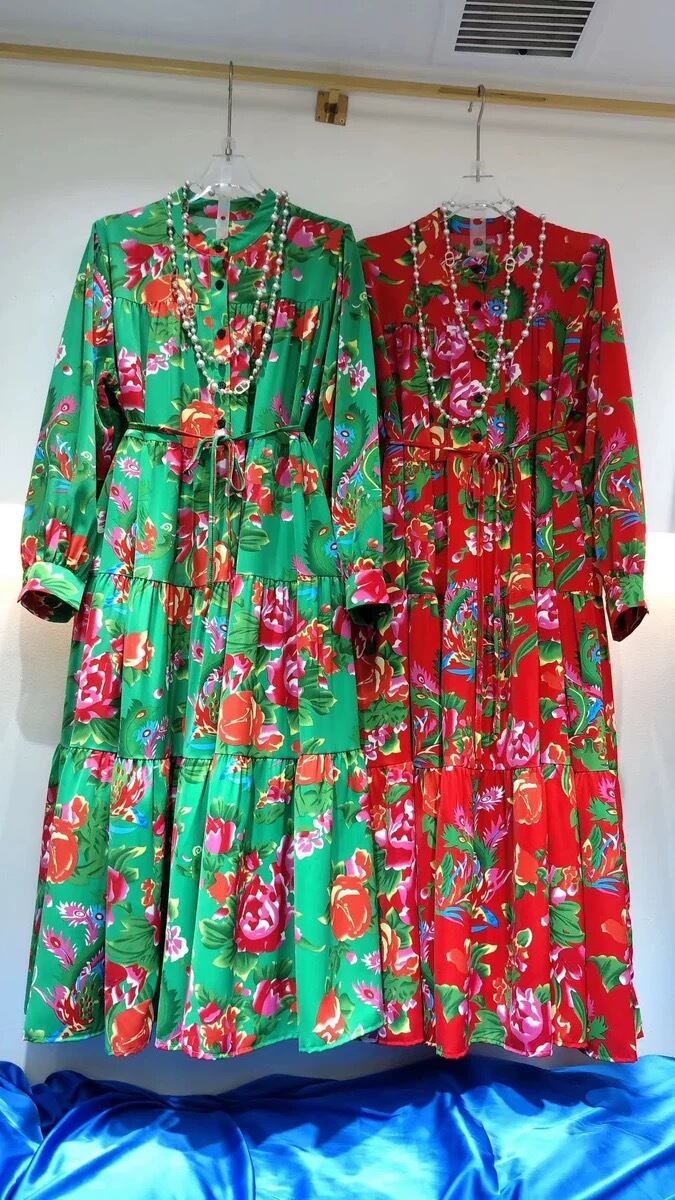ワンピース カラフル 花柄 赤 あお 緑 花柄 フラワー ゆったり