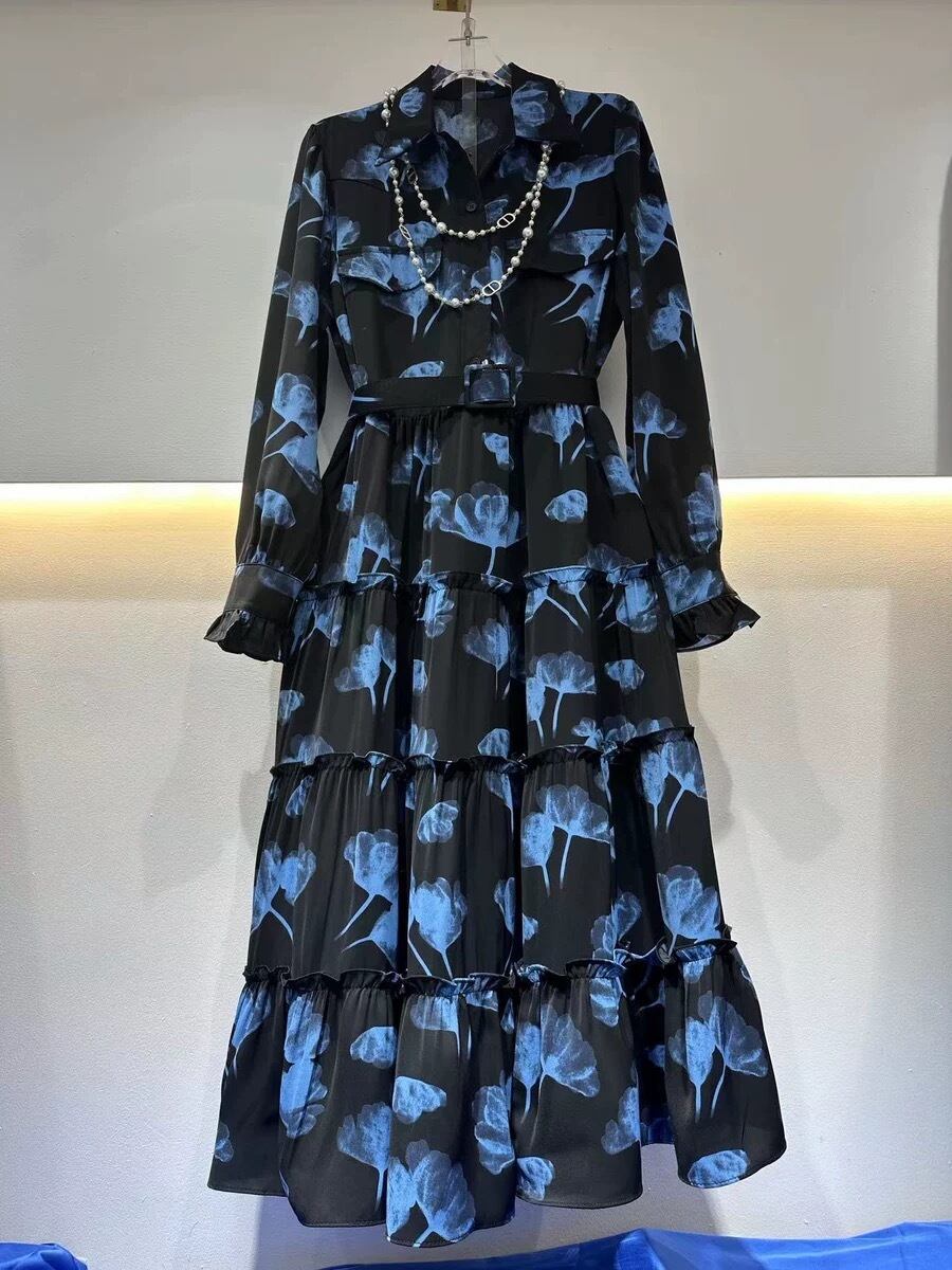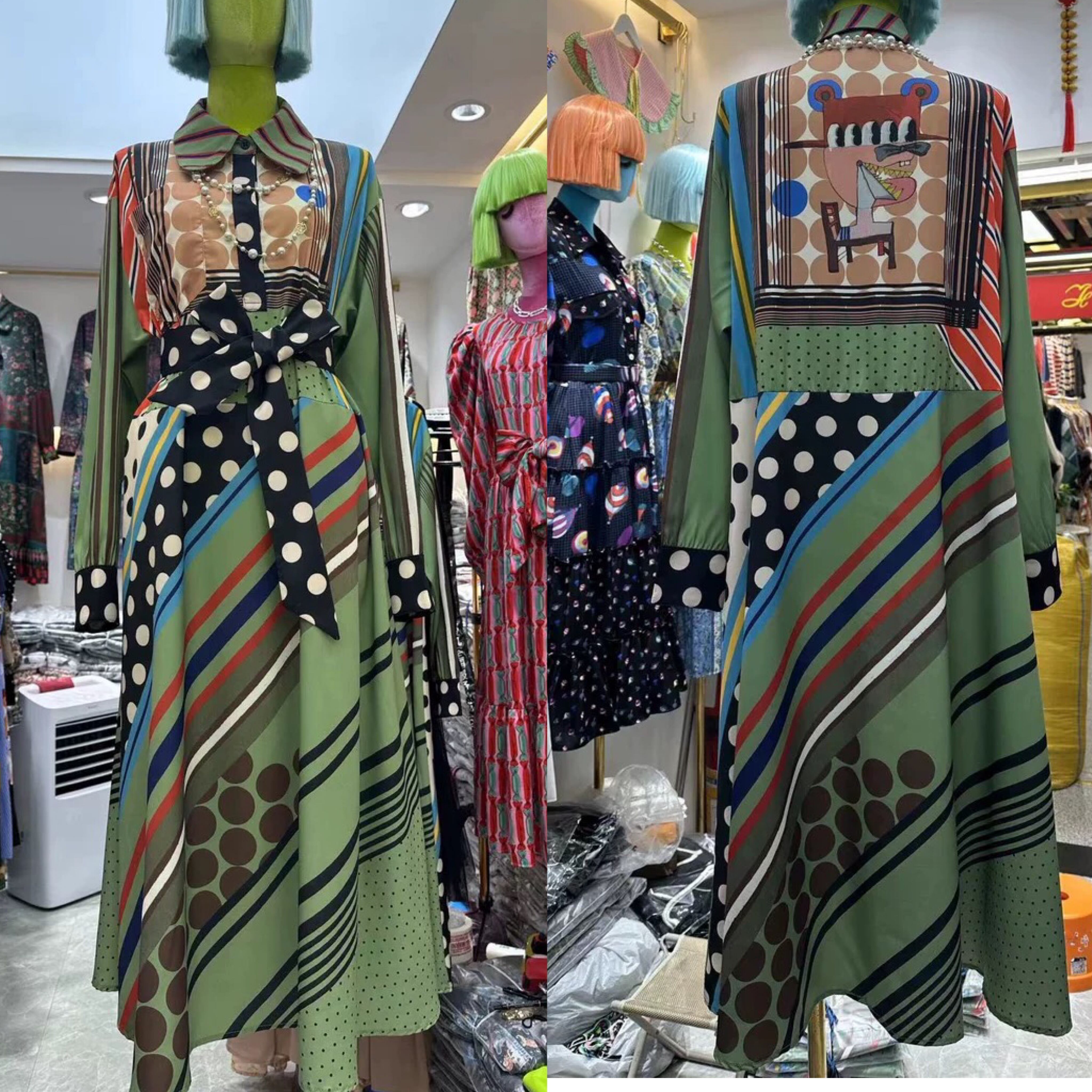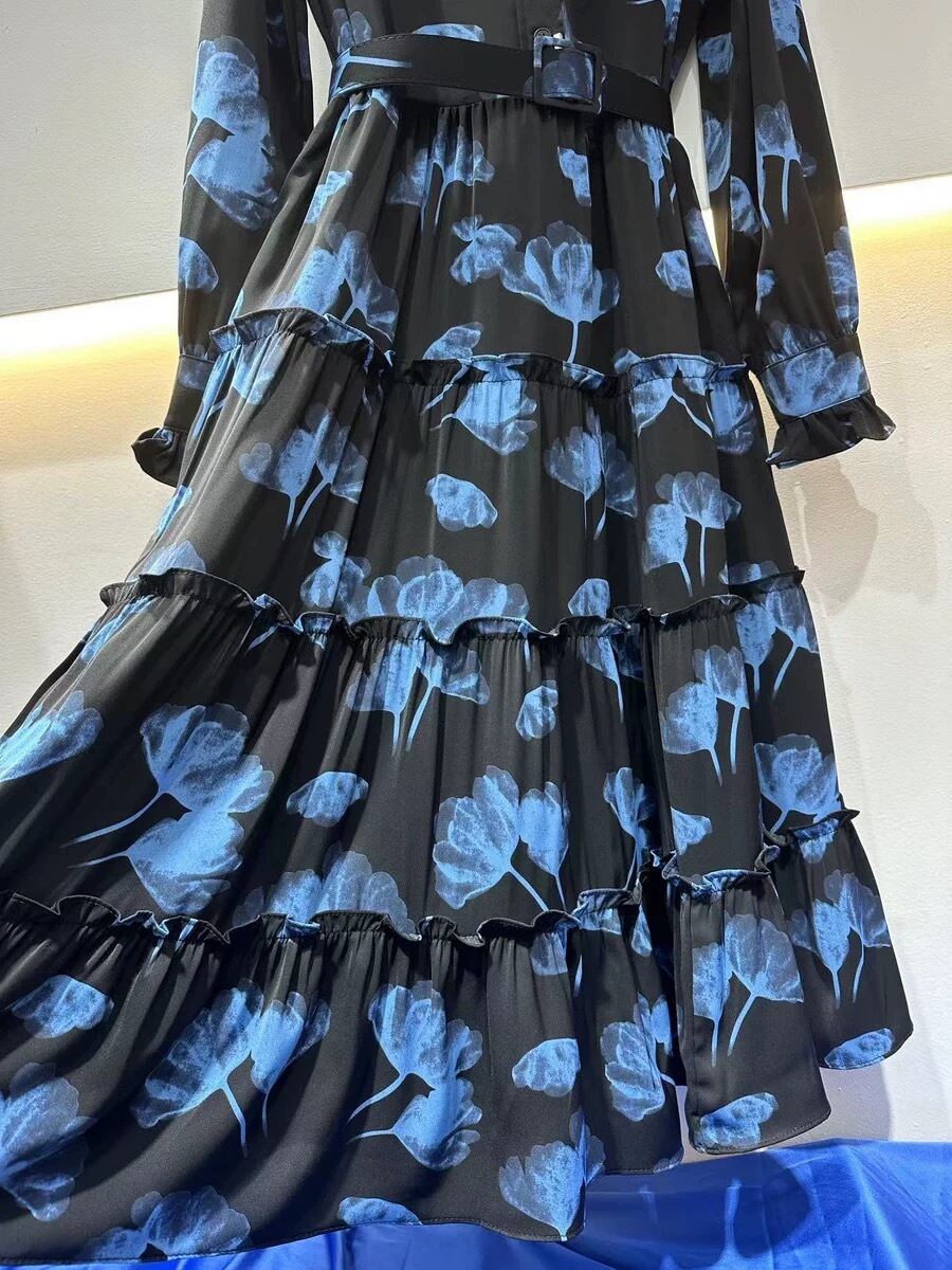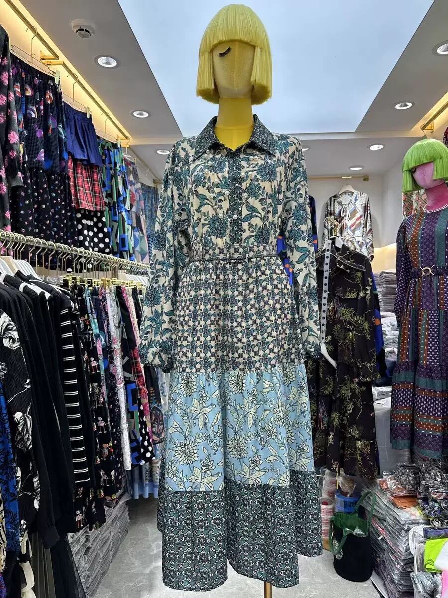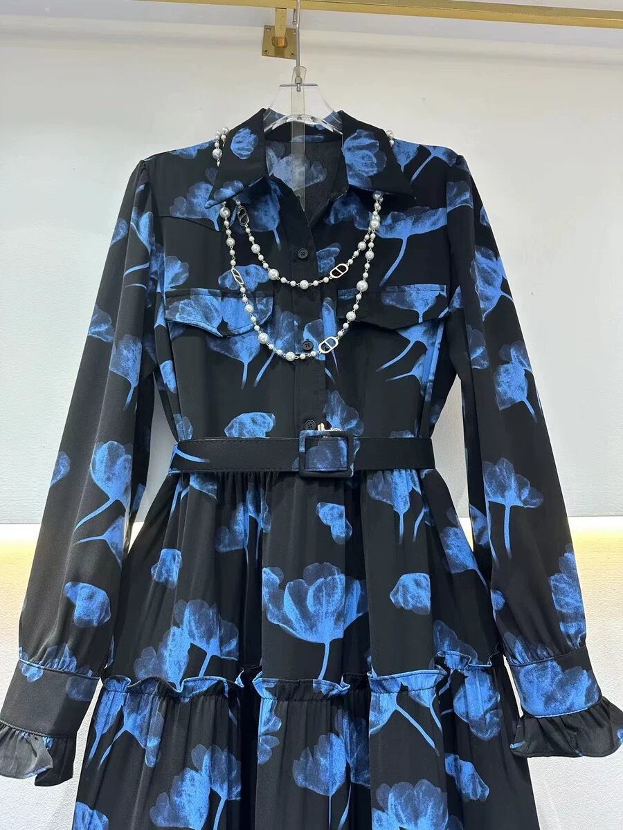 ワンピース エレガント ブラウス 青 チェック ボーダー
