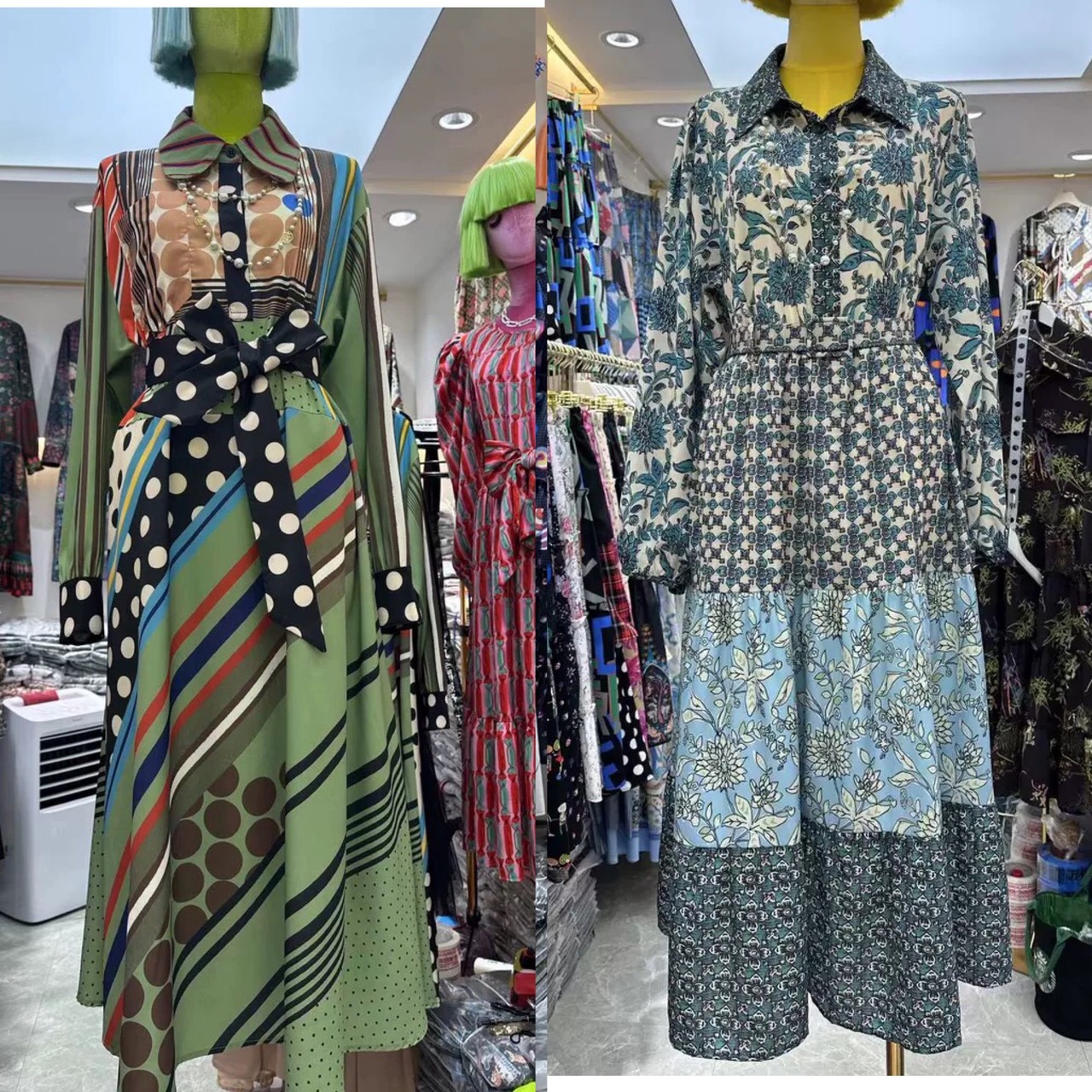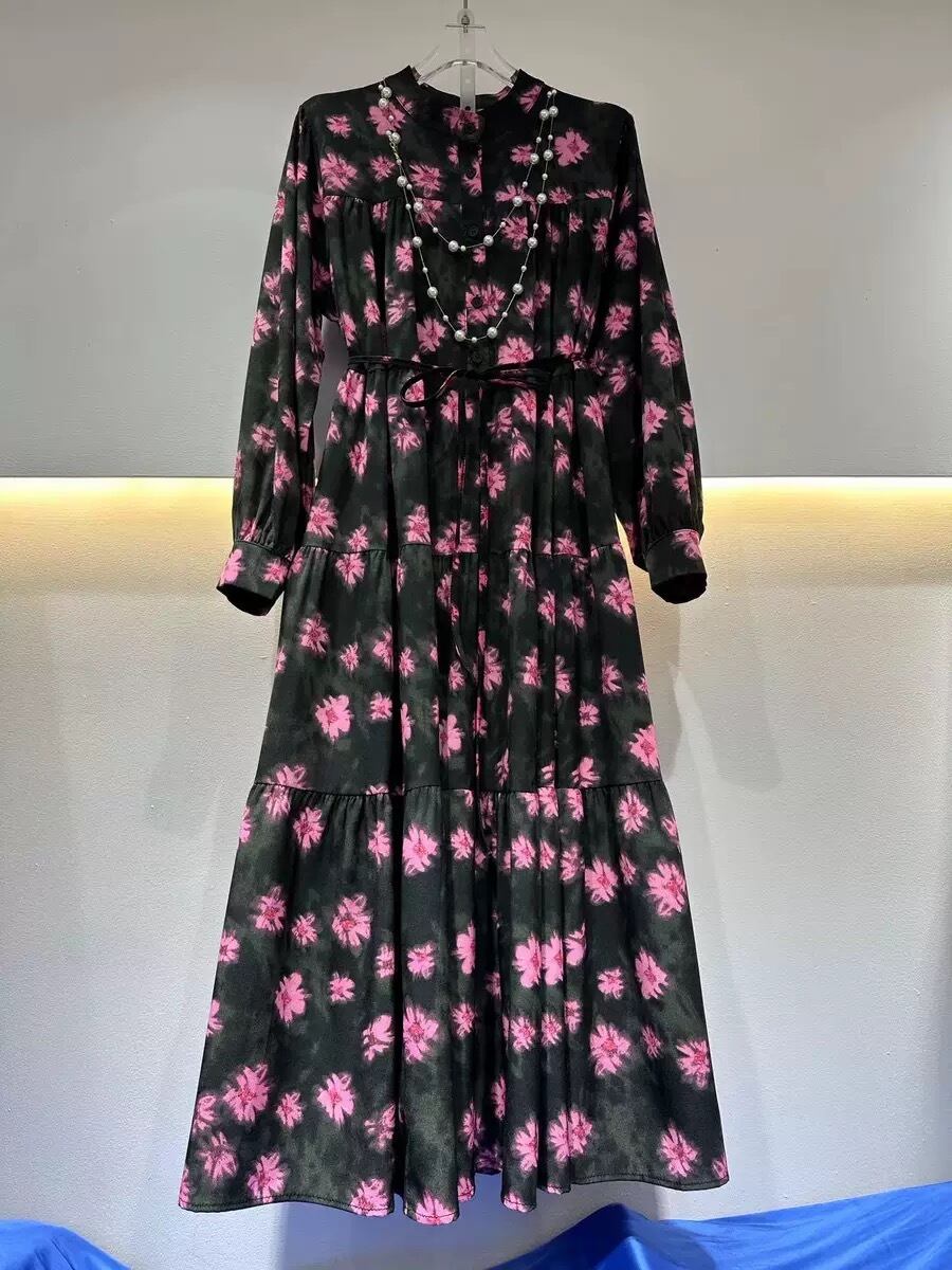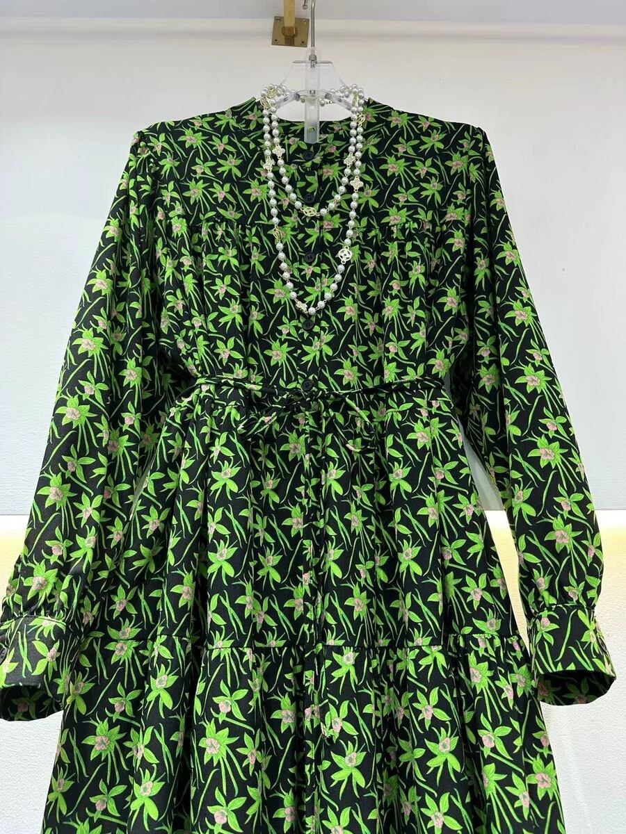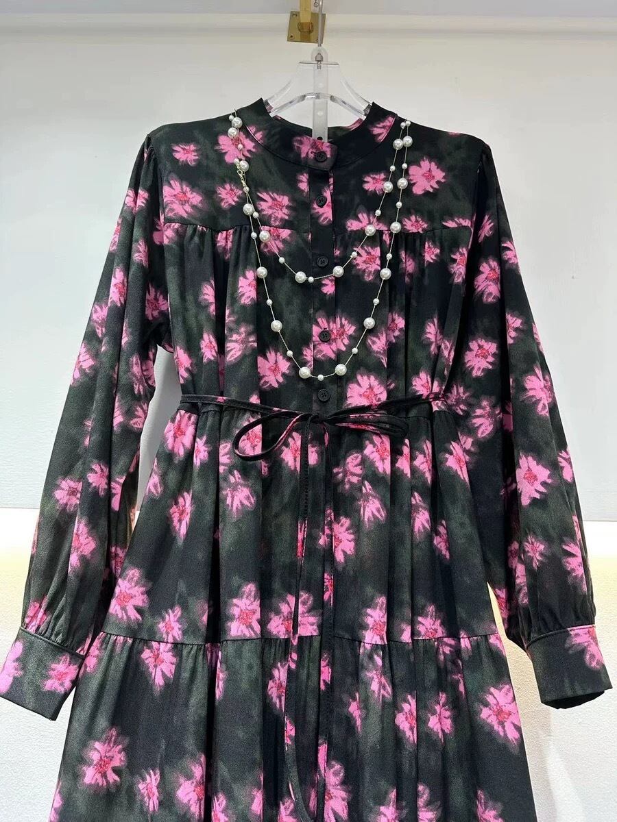 ピンク 花柄 フラワー 緑 ワンピース ゆったり カジュアル ブラウス