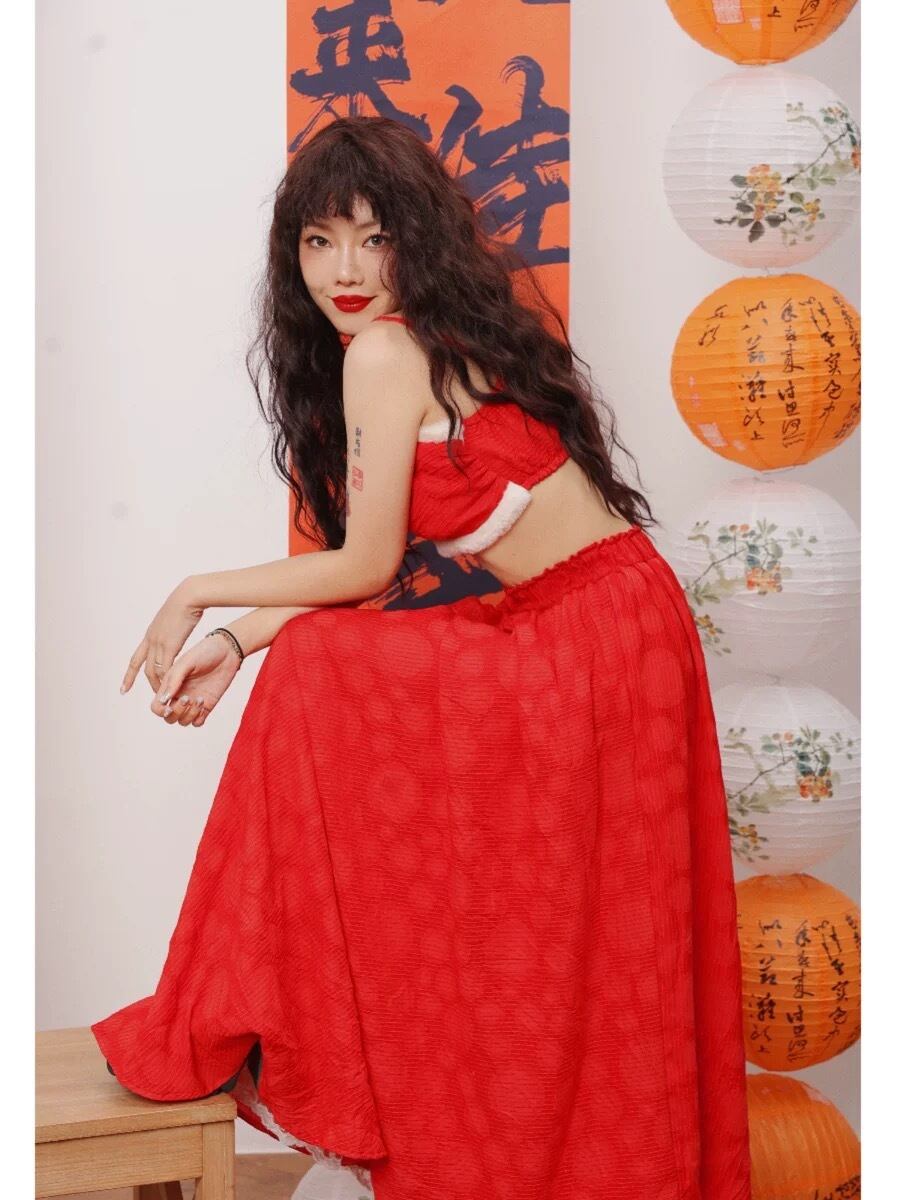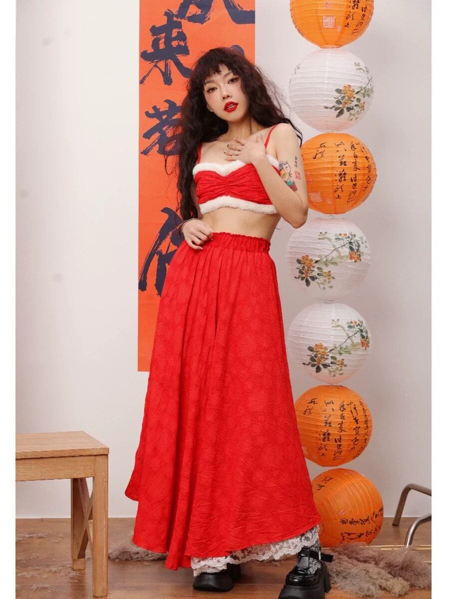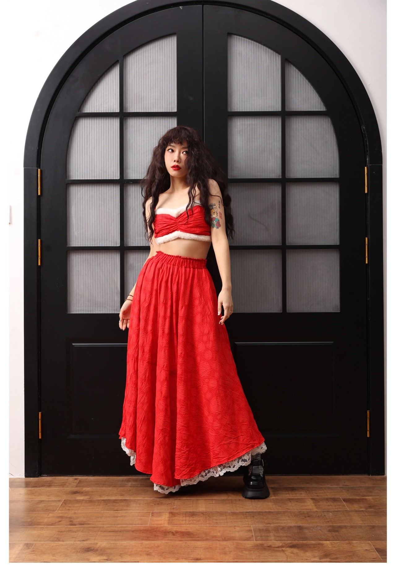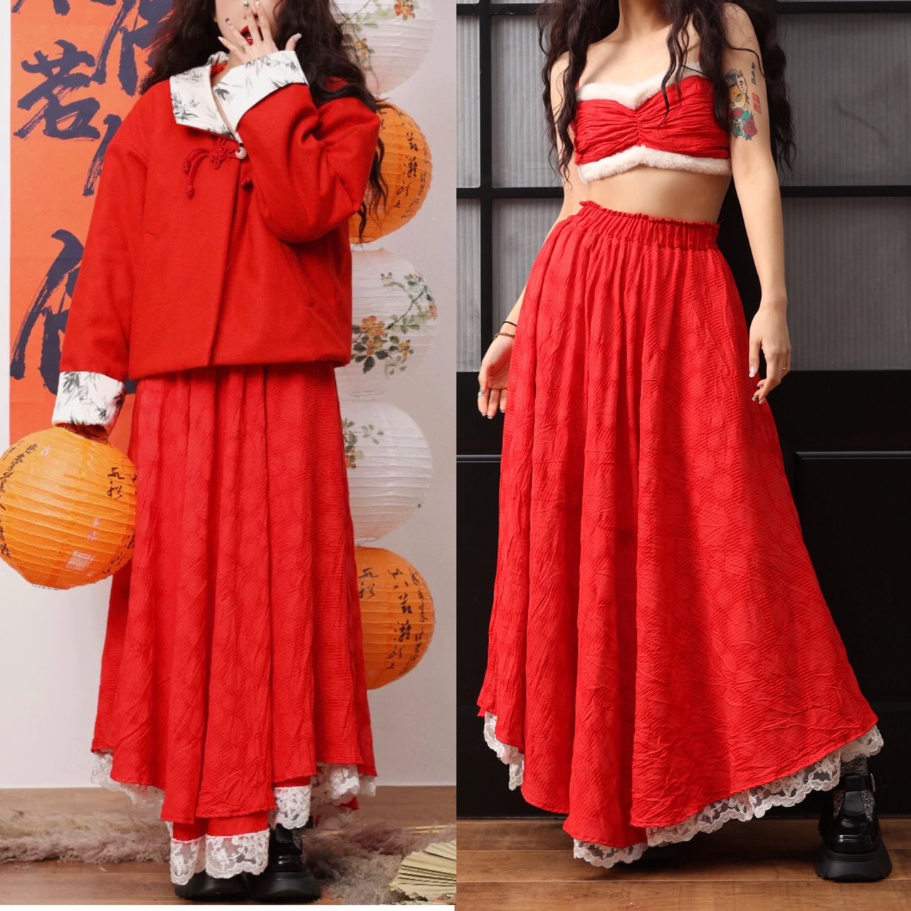 赤 スカート マキシ ボトムス フレア ロング ゆったり