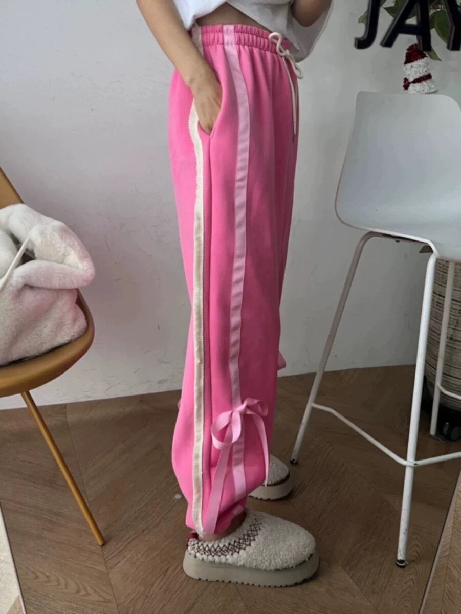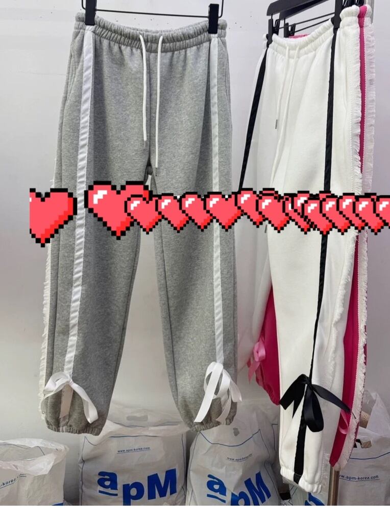 ピンク グレー リボン スウェット 白 パンツ カジュアル