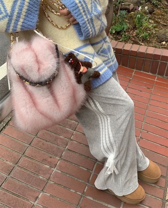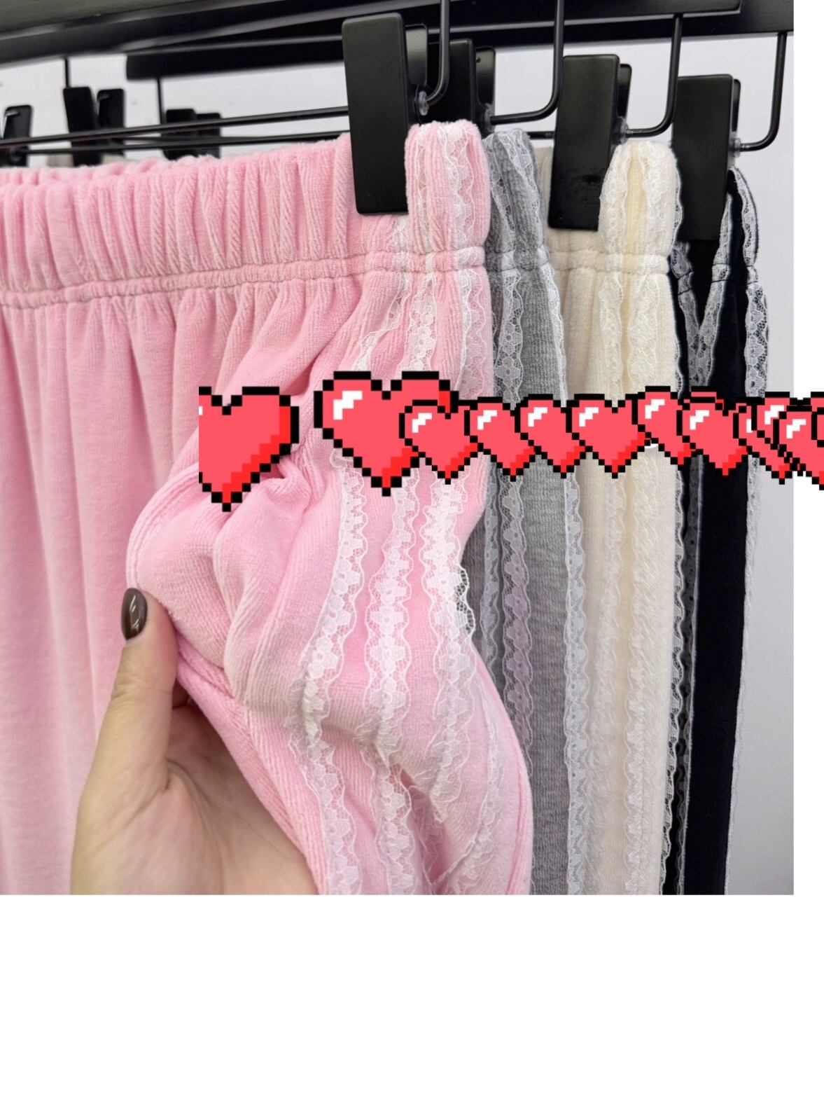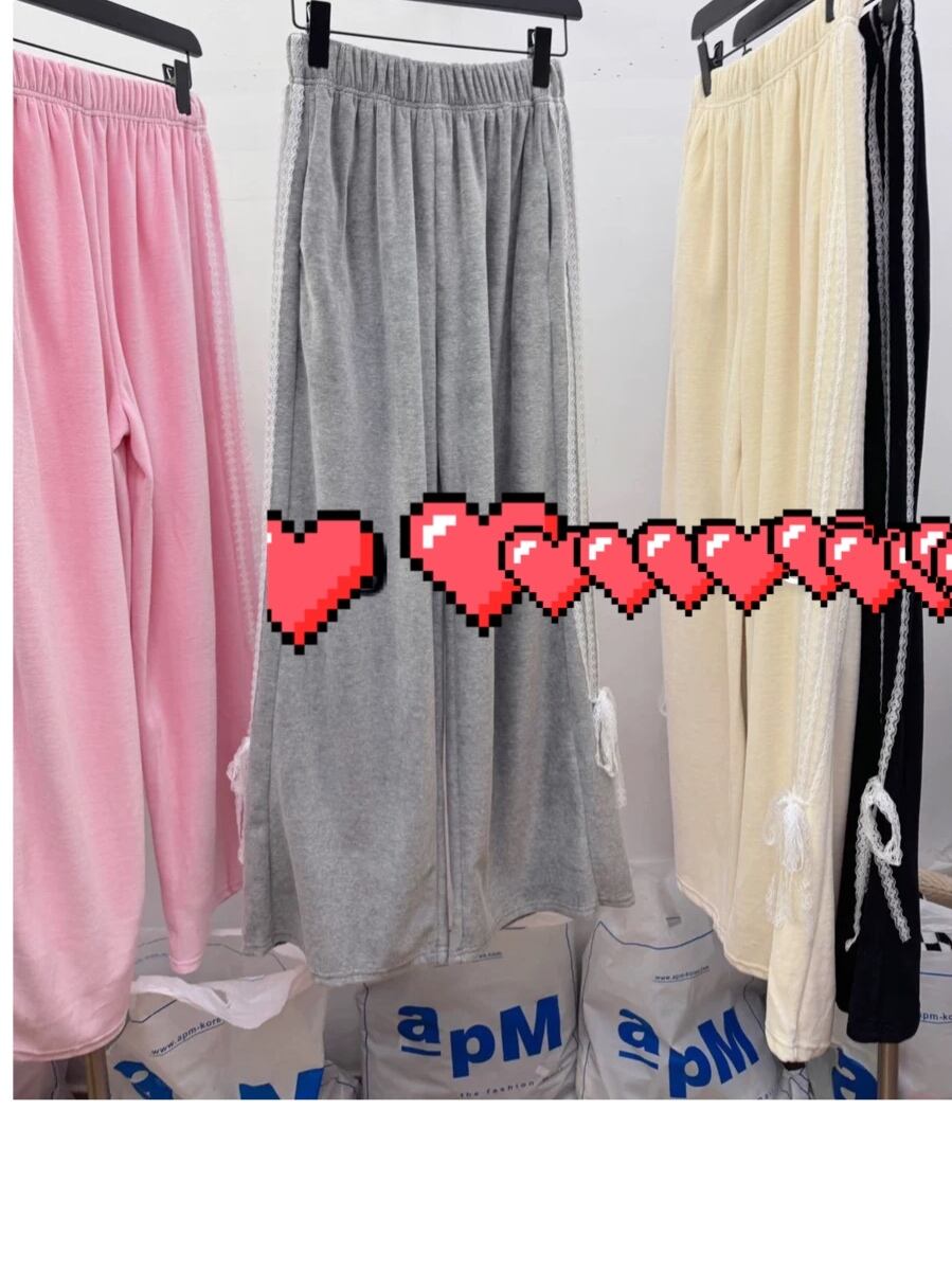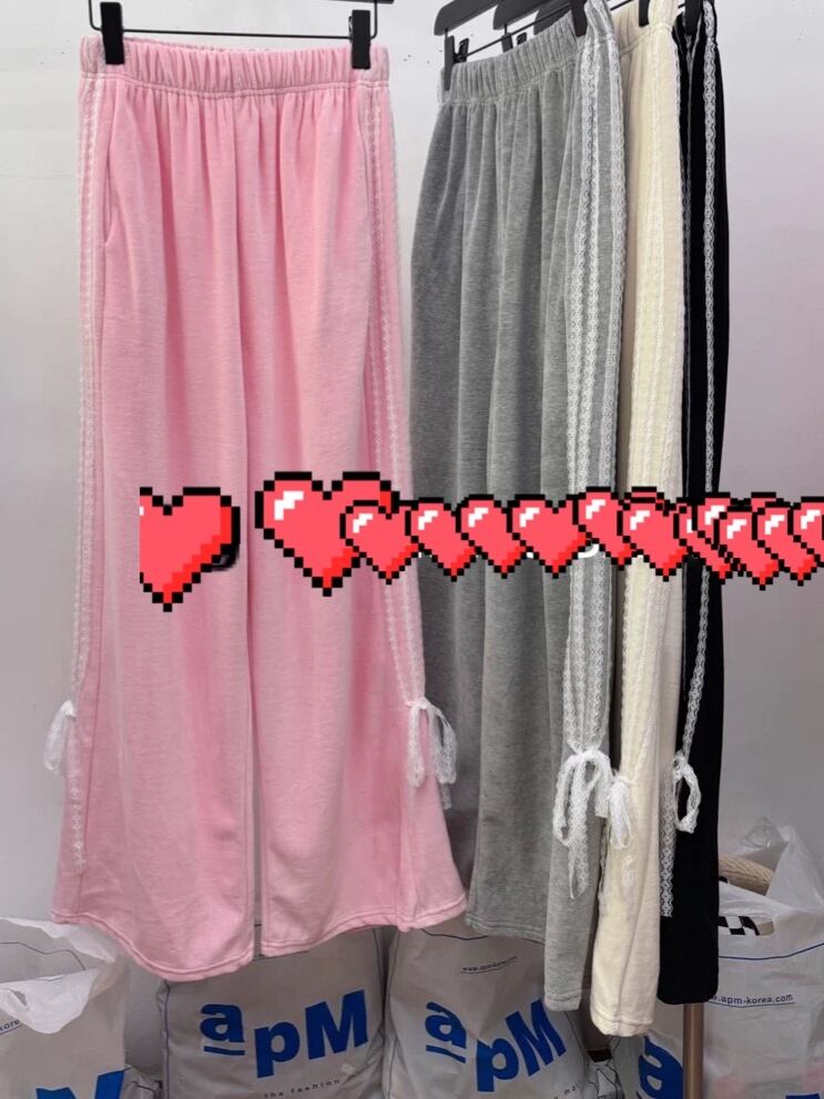 スウェット リボン パンツ カジュアル 黒 グレー 白 ボトムス スウェット