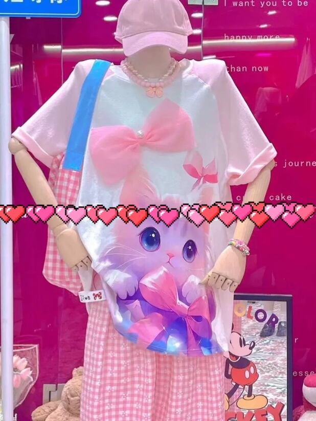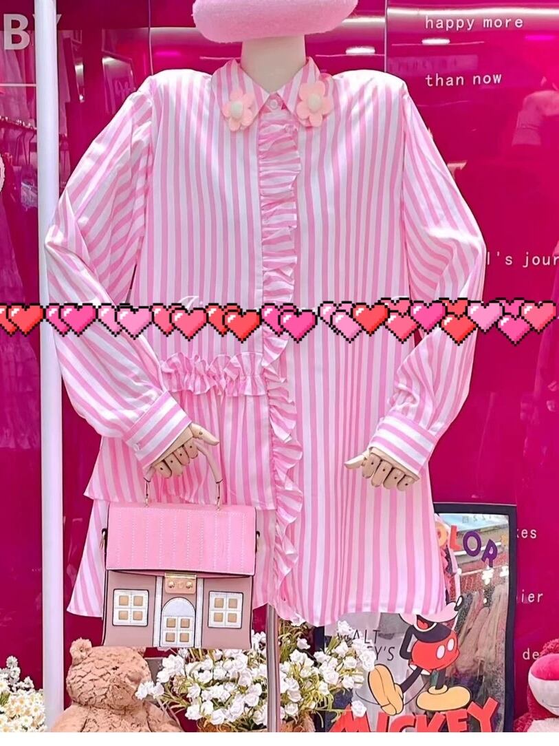 ブラウス ボーダー ストライプ ピンク ガーリー ワンピース シャツ ハート デカ襟