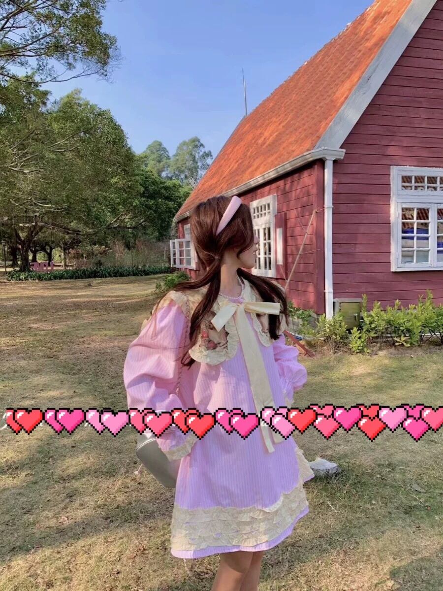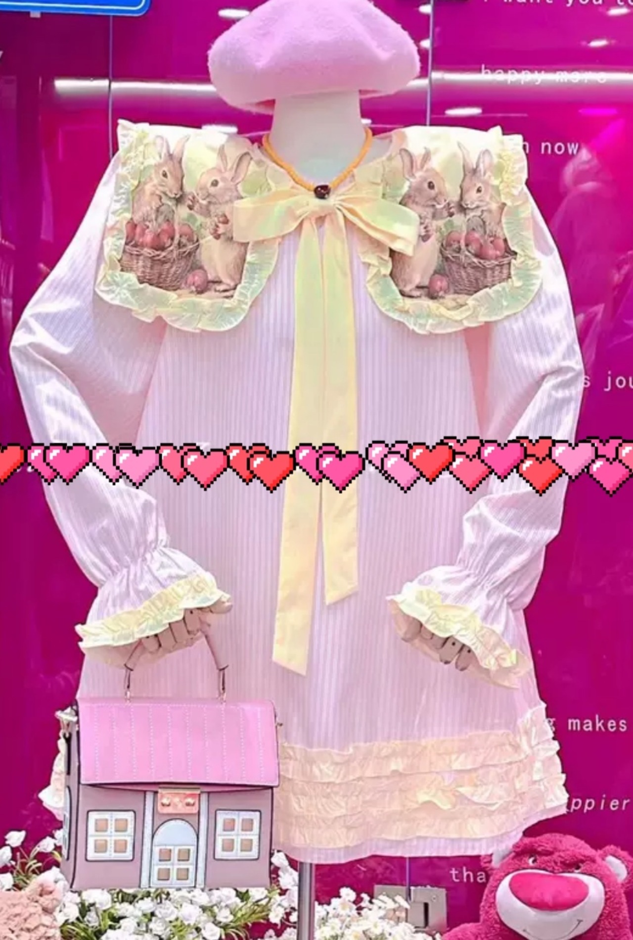 黄色 ピンク リボン デカ襟 くま ワンピース チェック ストライプ 黄色 リボン ブラウス