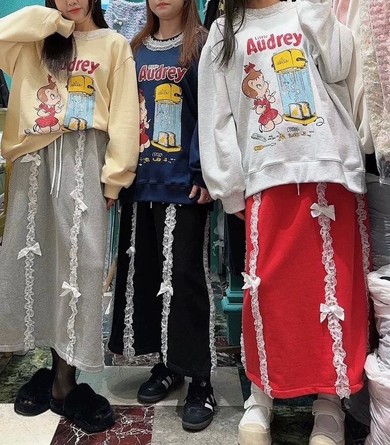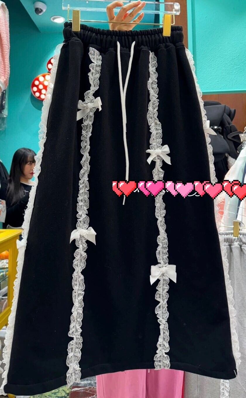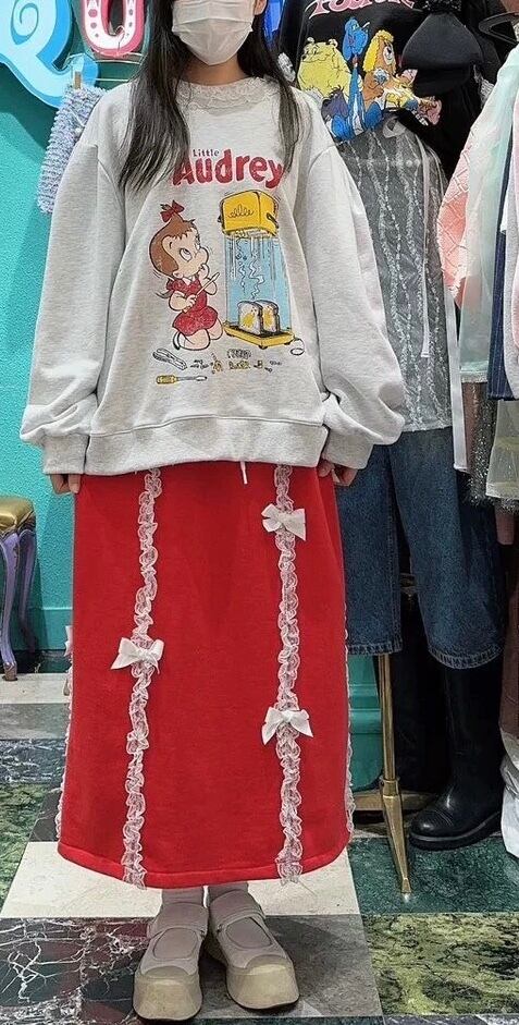 スウェット 黒 グレー 赤 スカート カジュアル パンツ ボトムス リボン