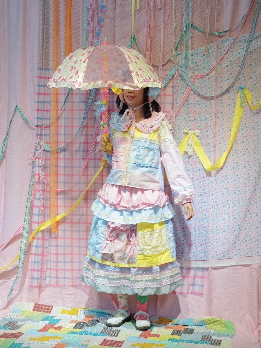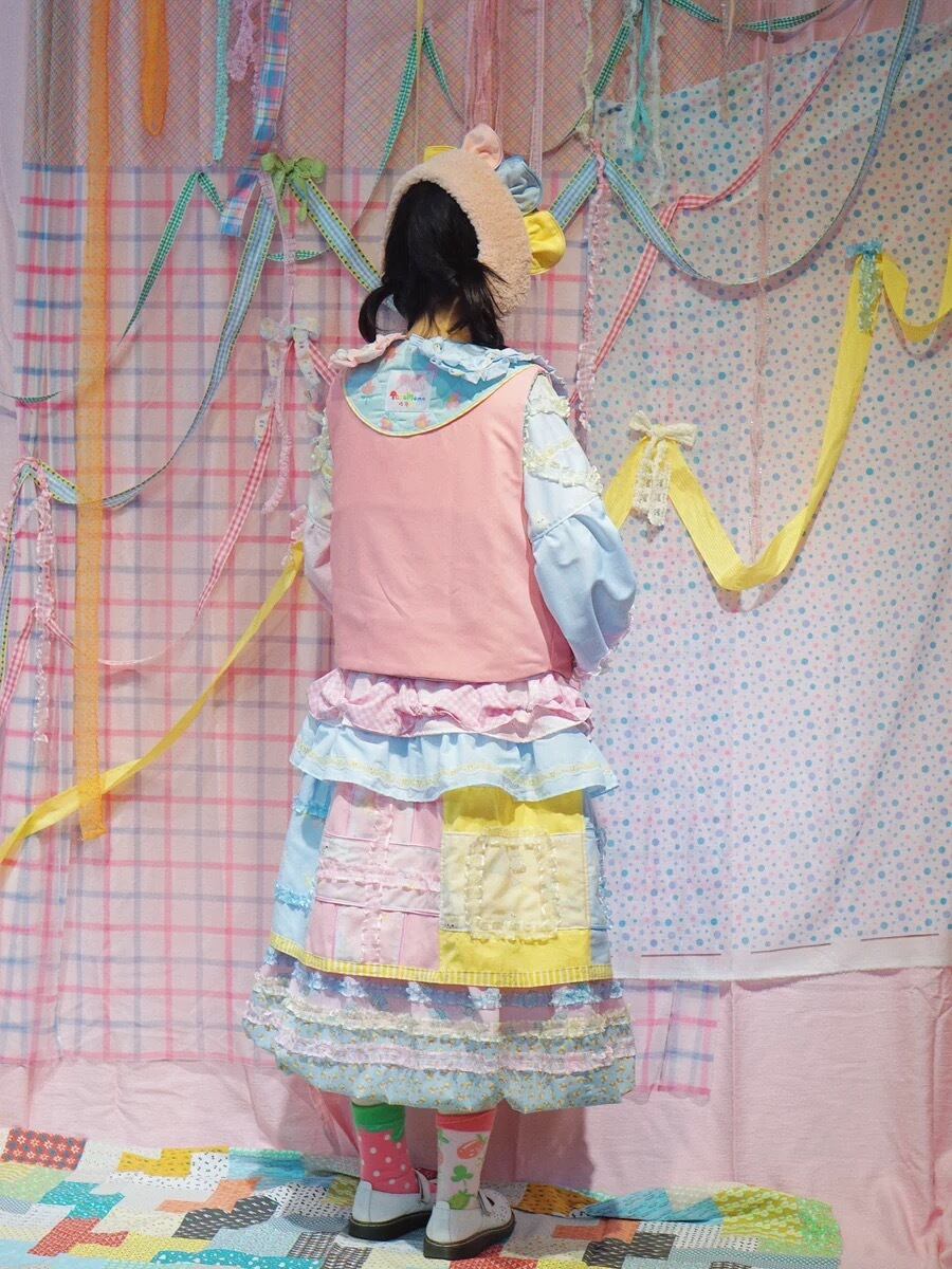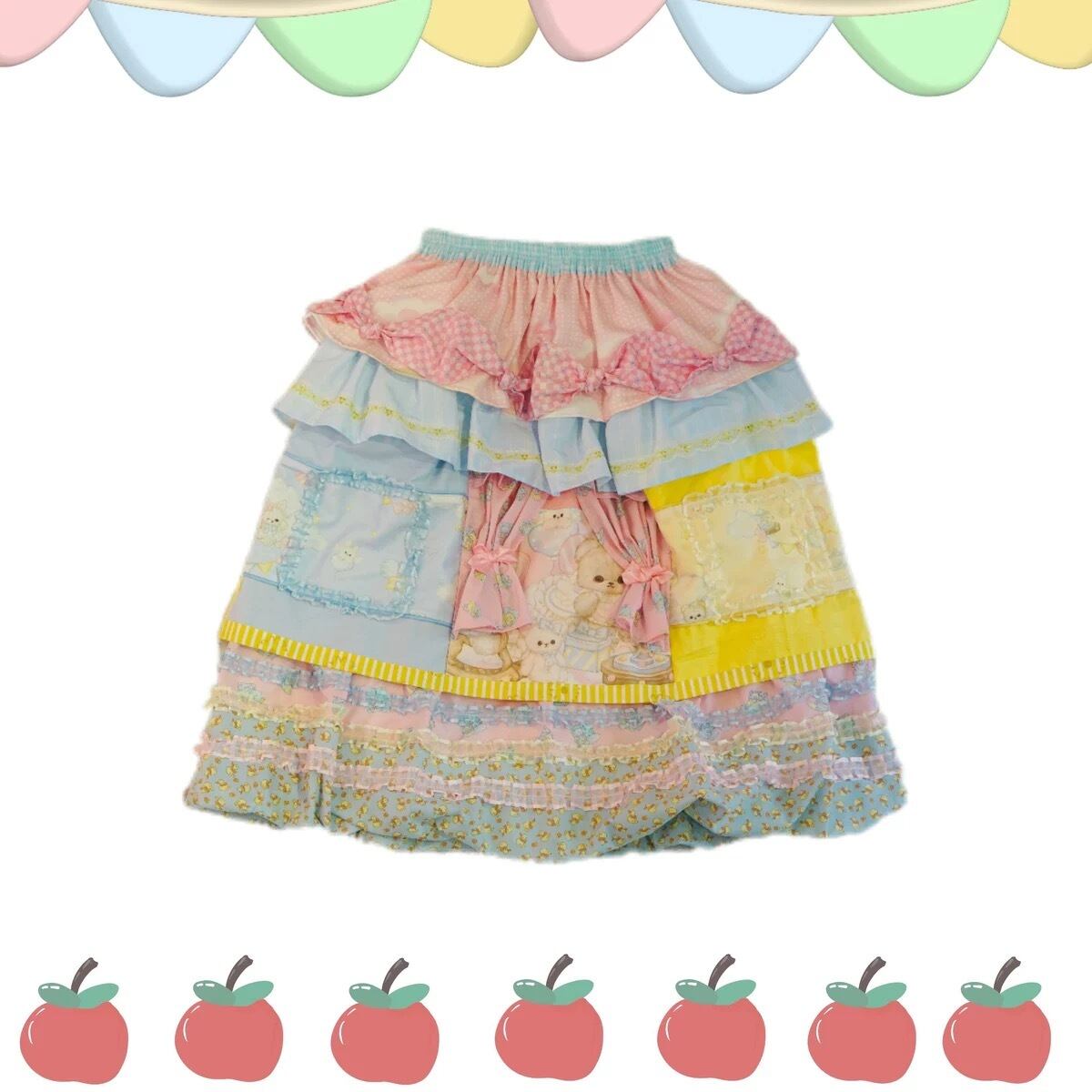 スカート パッチワーク 水色 黄色 ピンク ガーリー 可愛い ボトムス