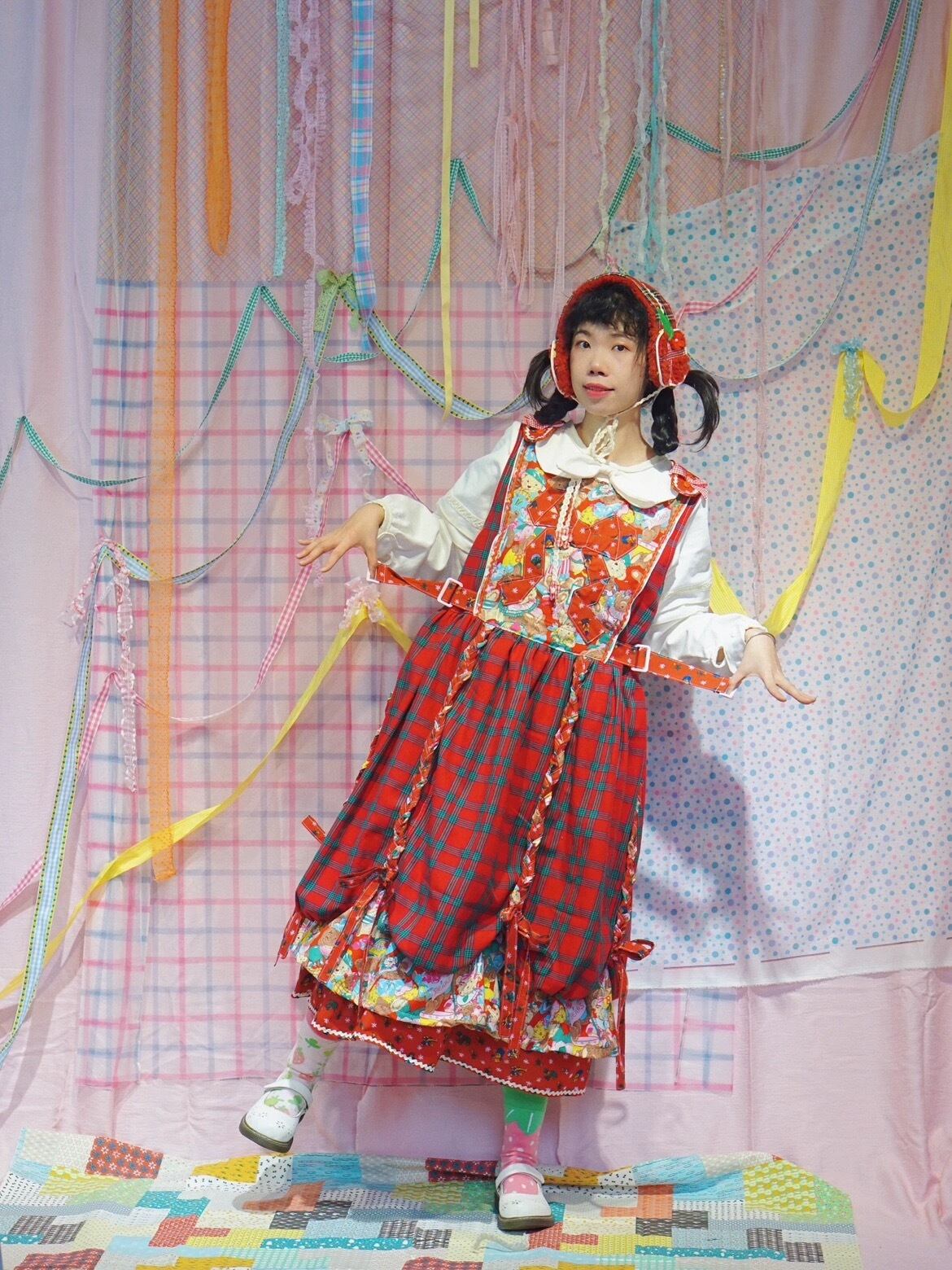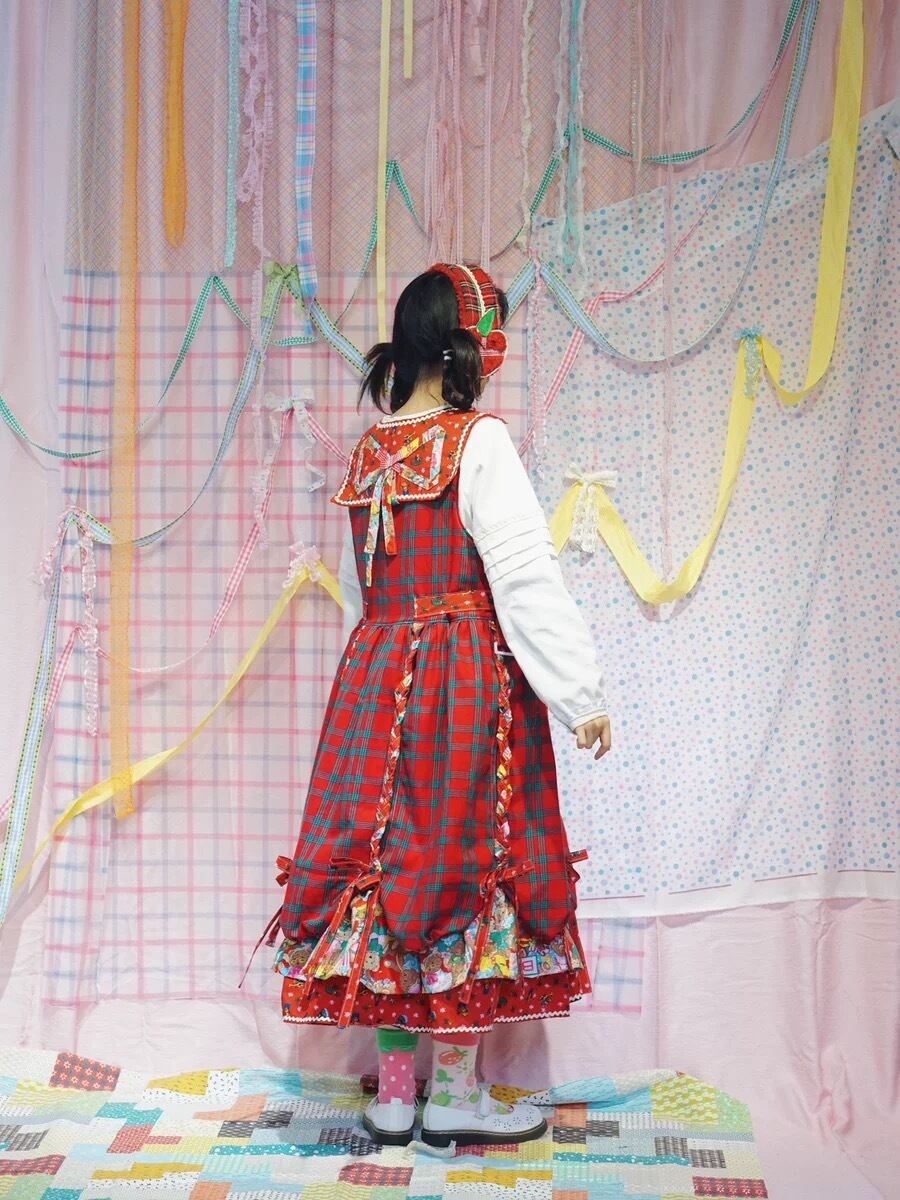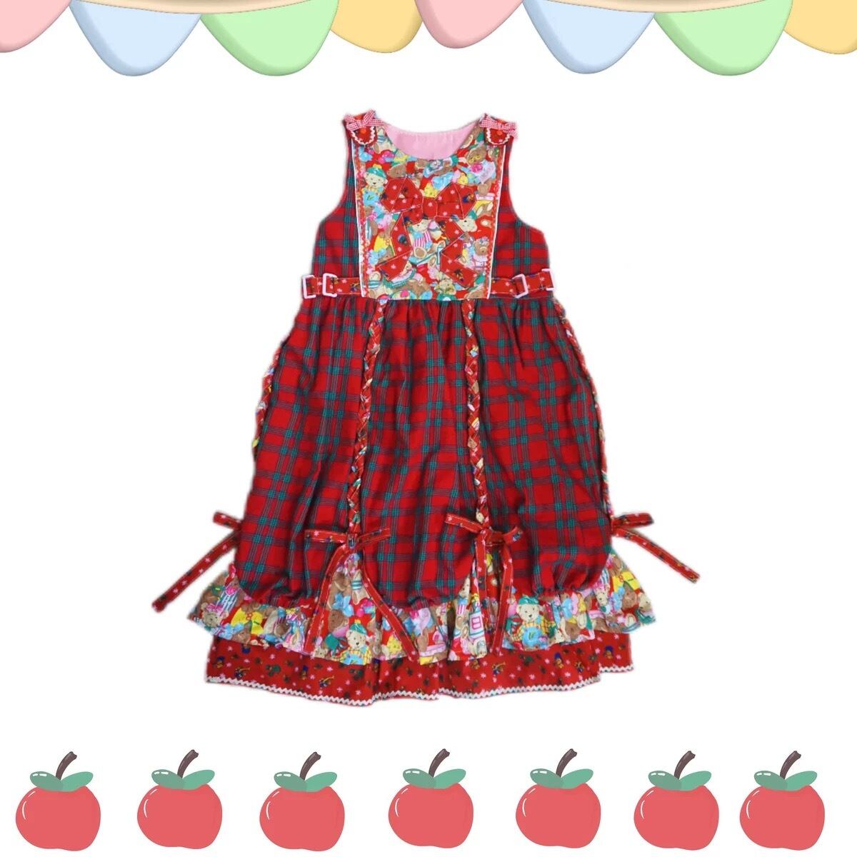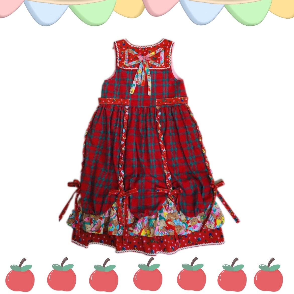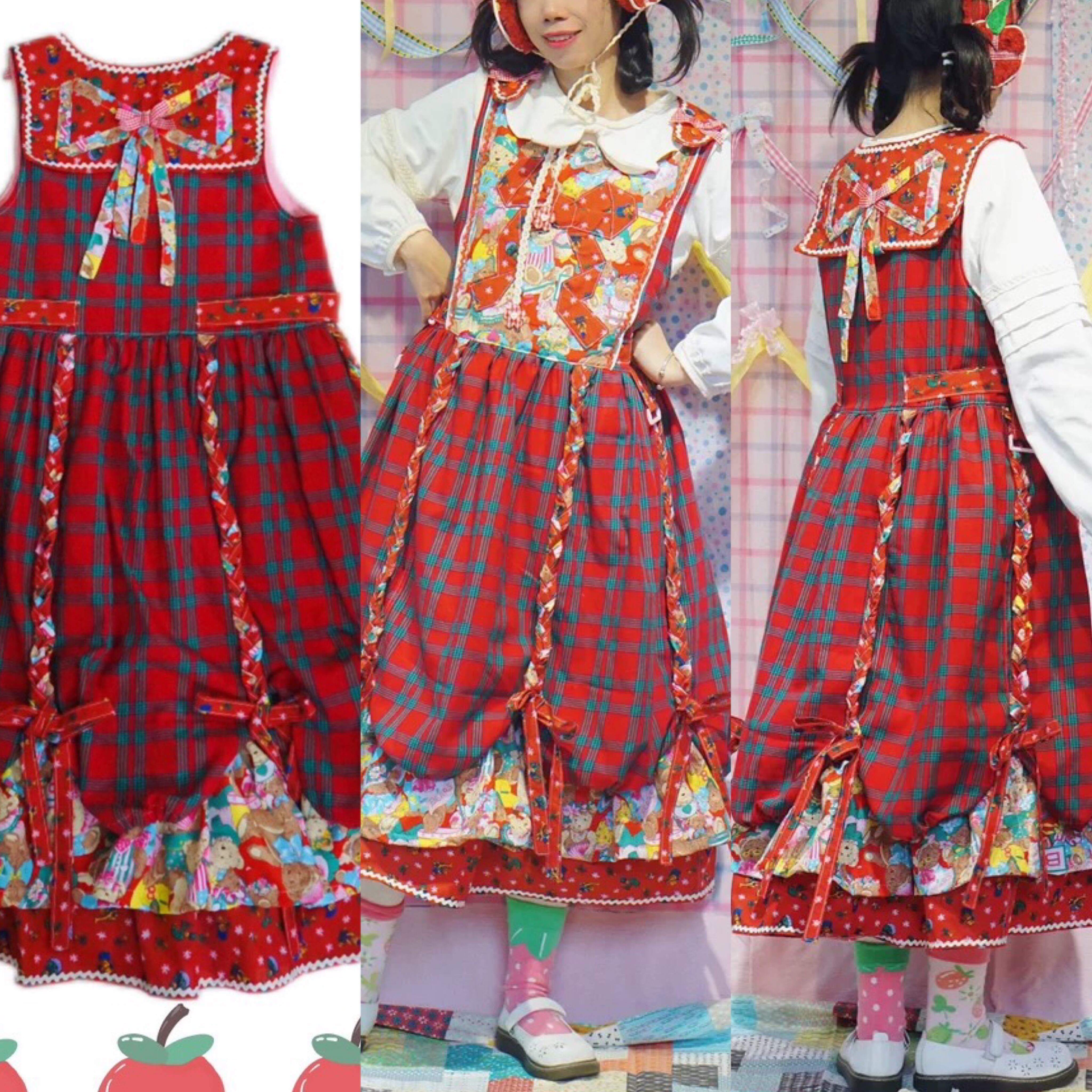 赤 チェック ワンピース スカート ガーリー リボン 可愛い ゆったり