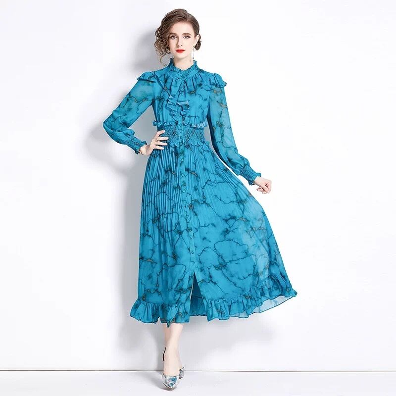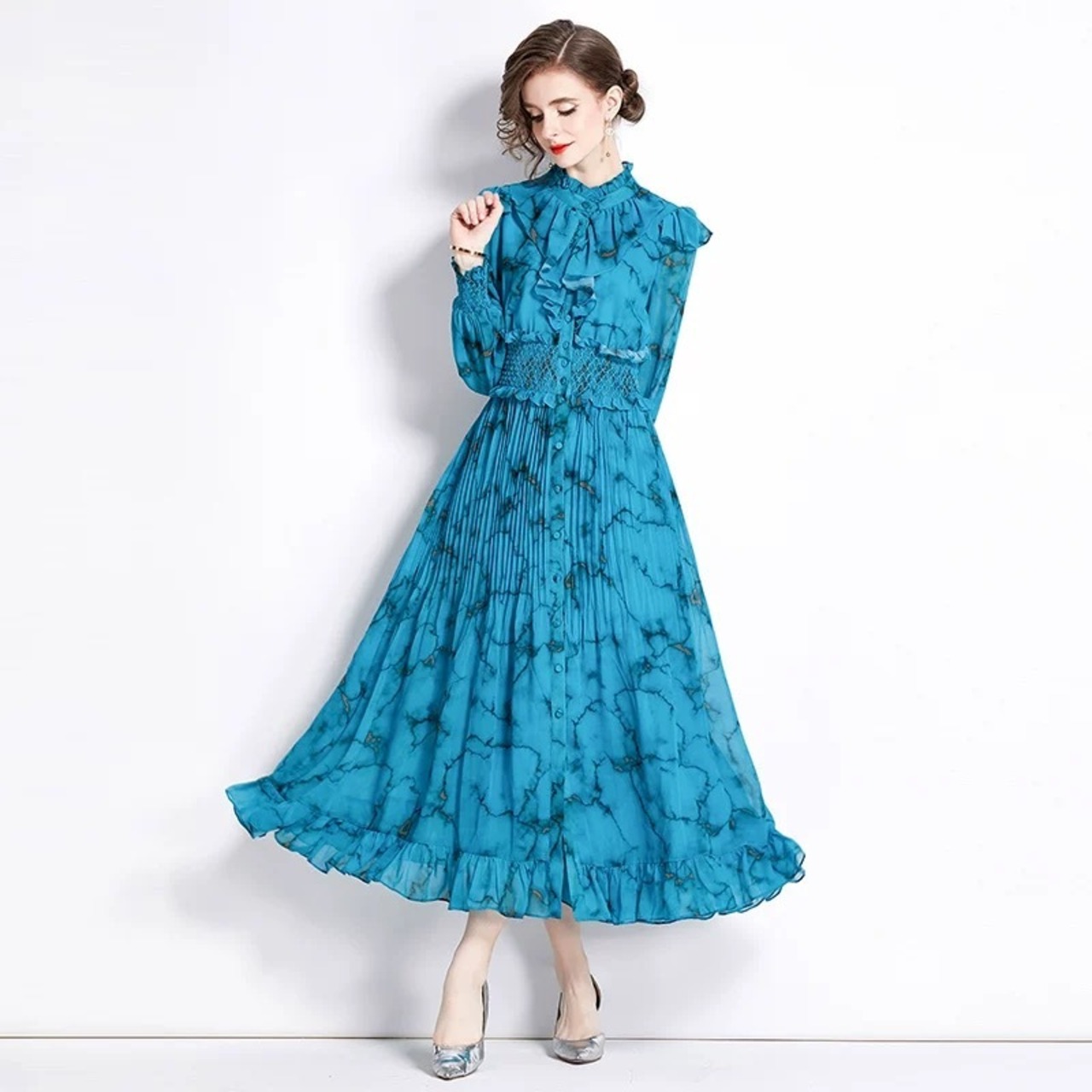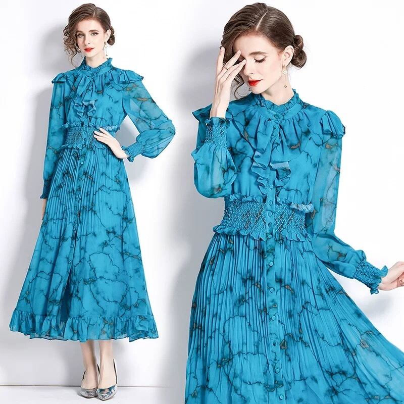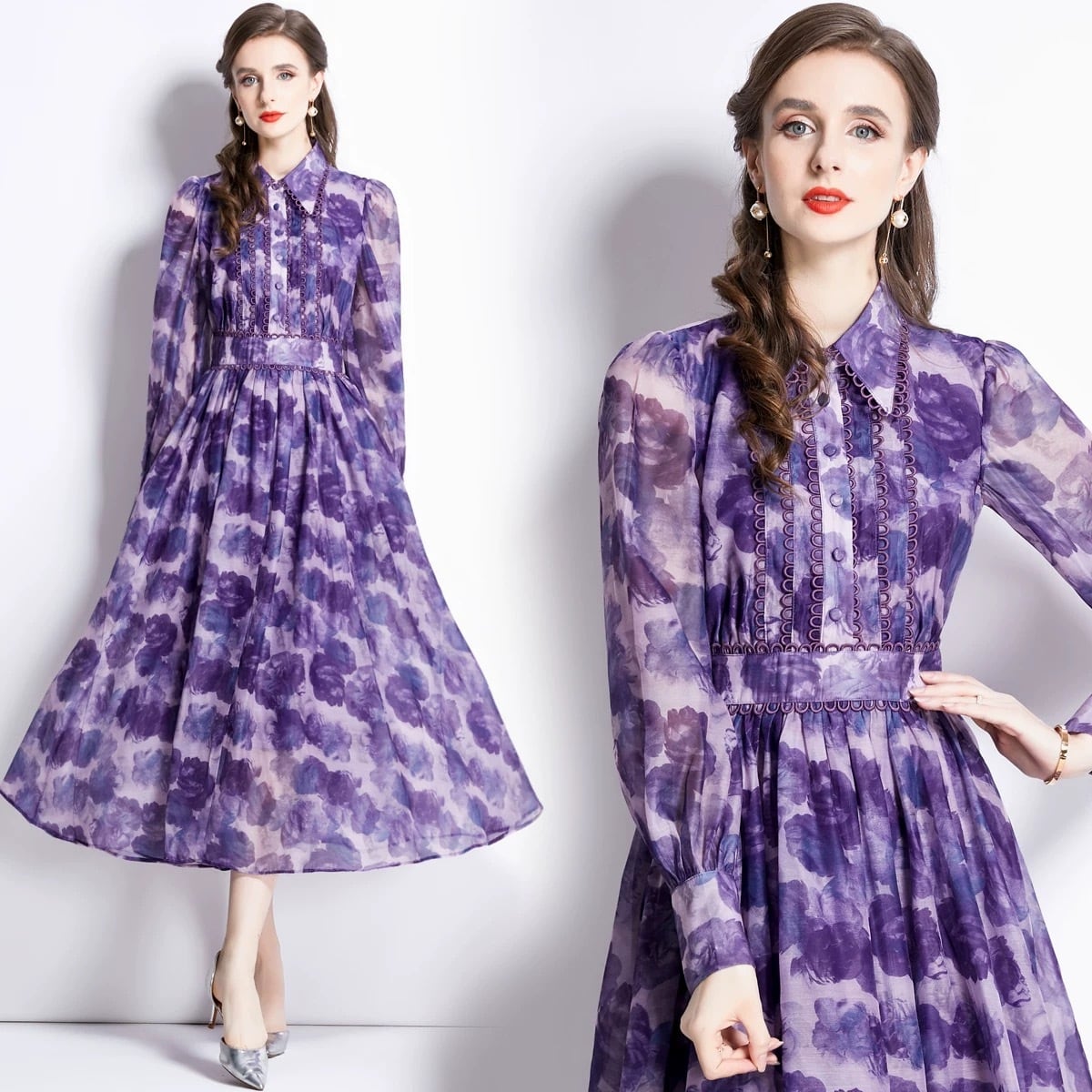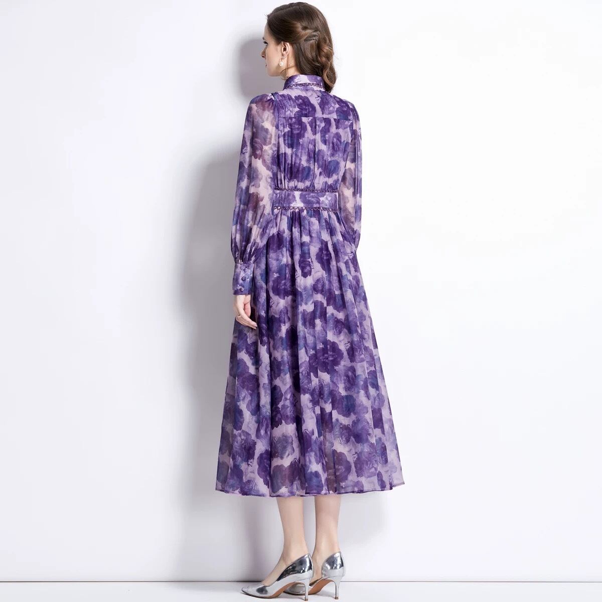 【2XLまで】紫 水色 ブラウス フラワー 花柄 リボン ワンピース エレガント