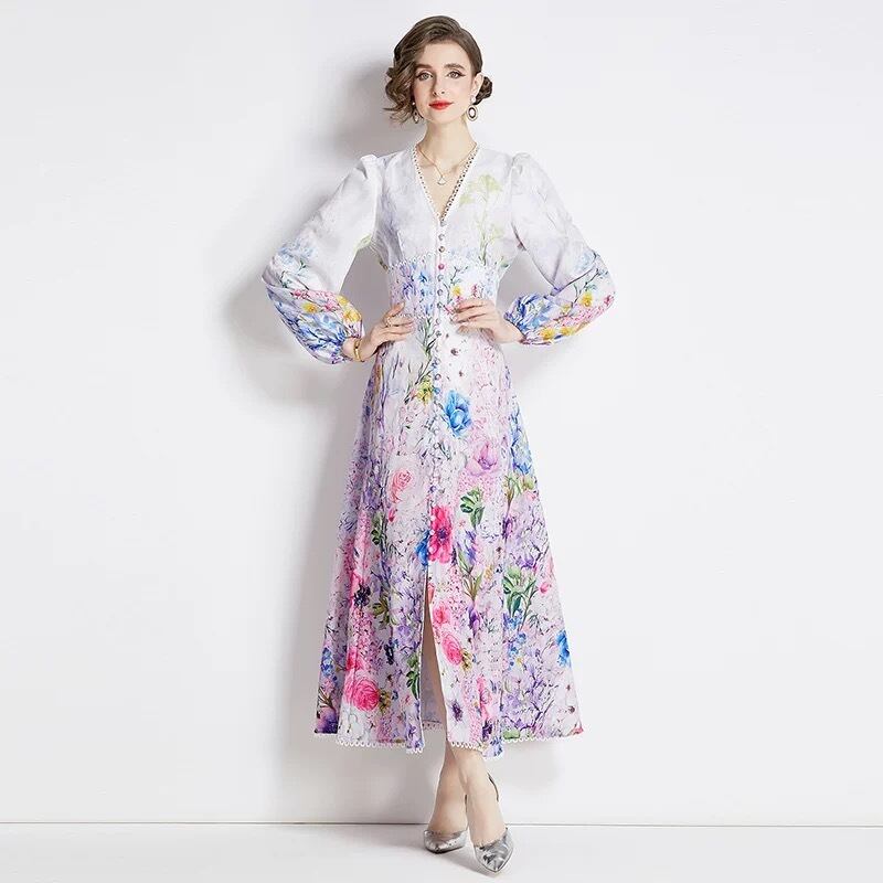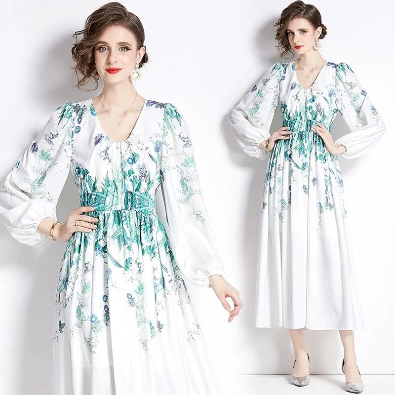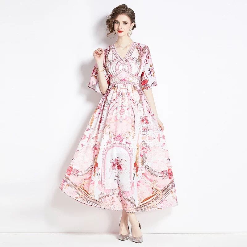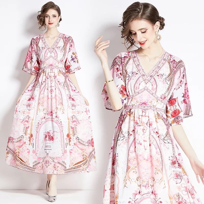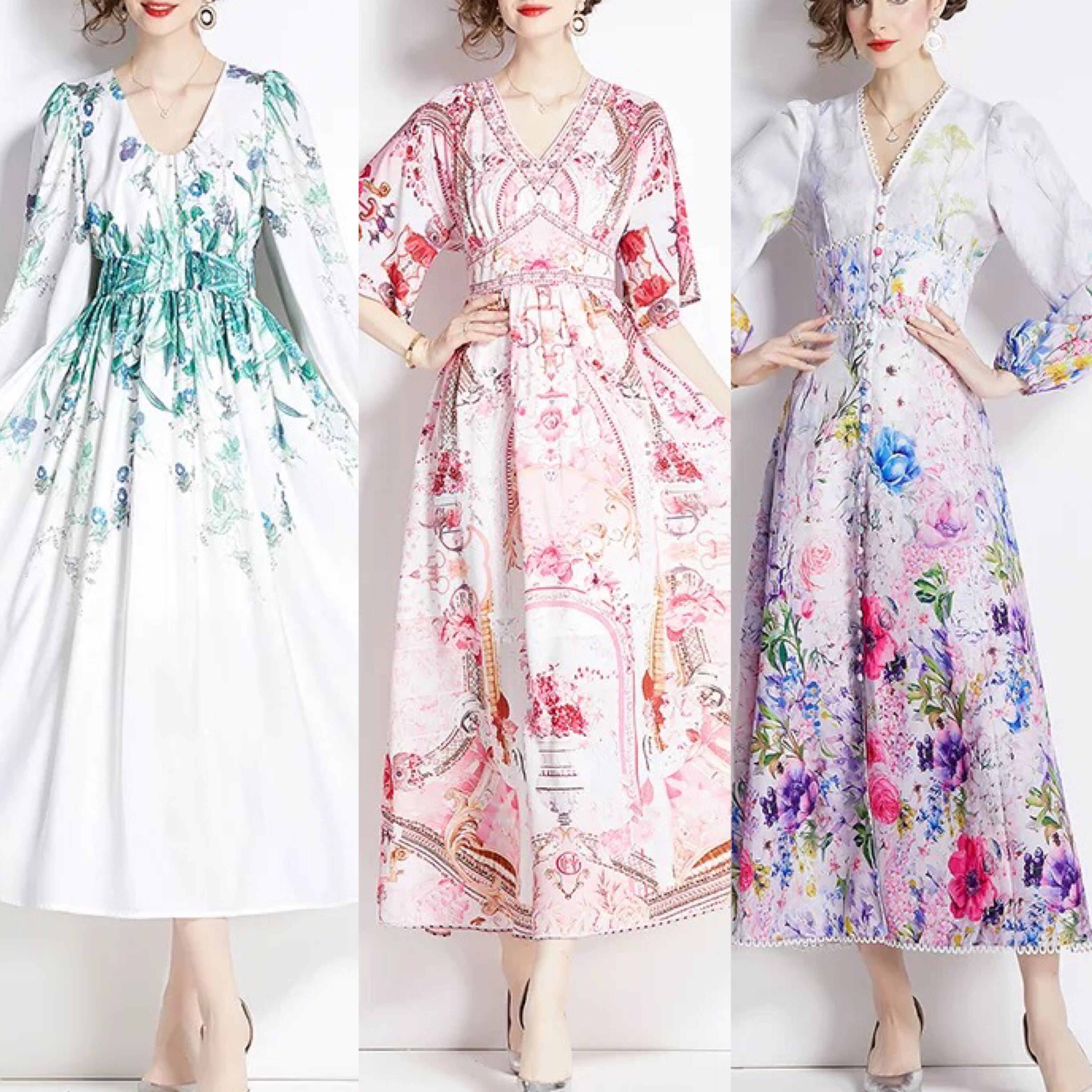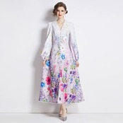 紫 緑 花柄 フラワー ワンピース 緑 ピンク