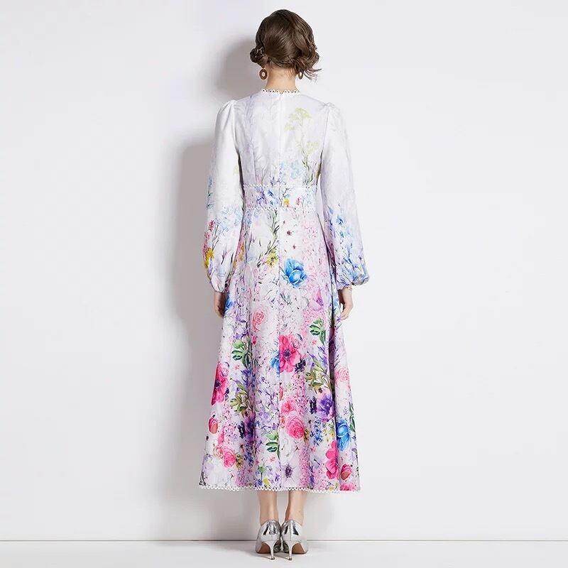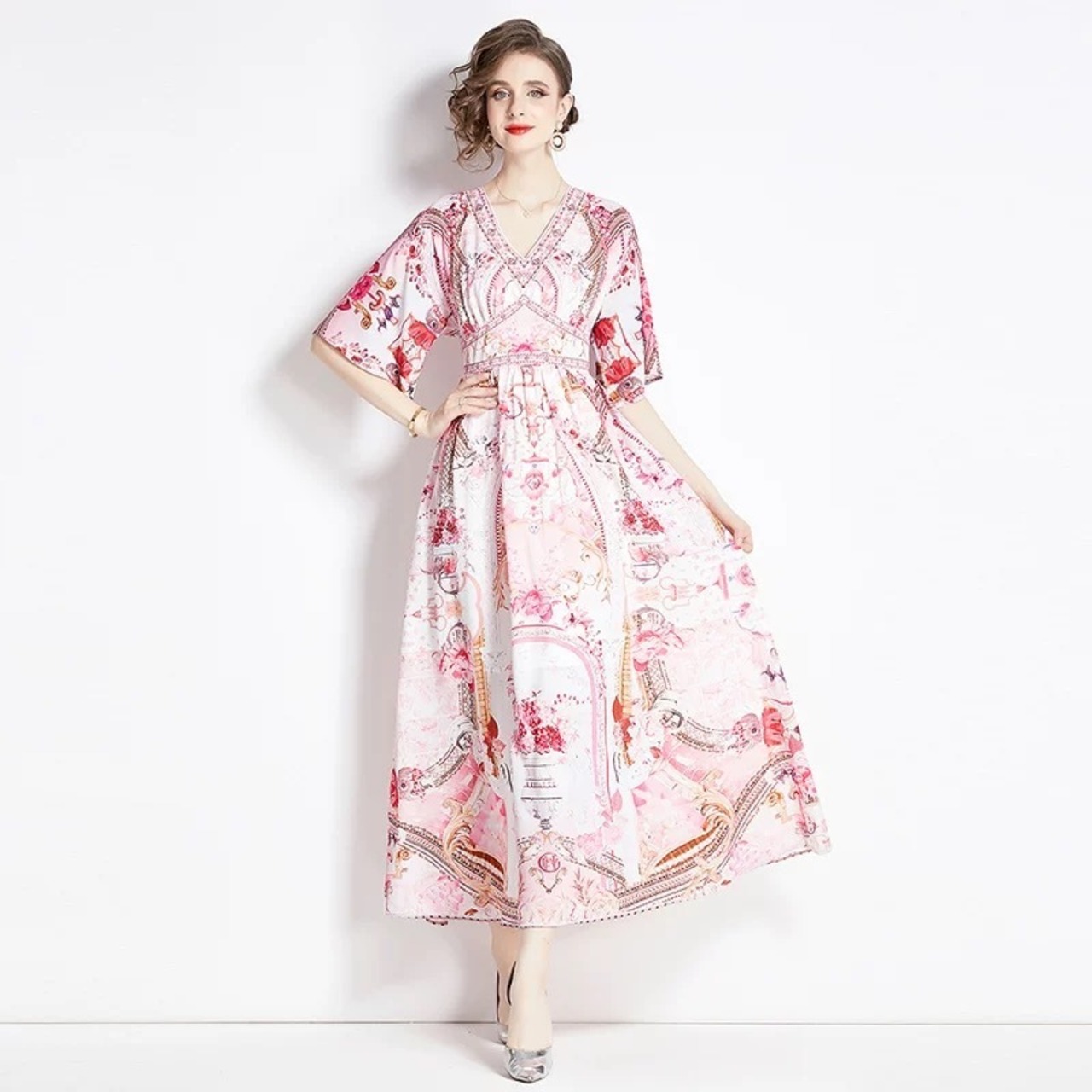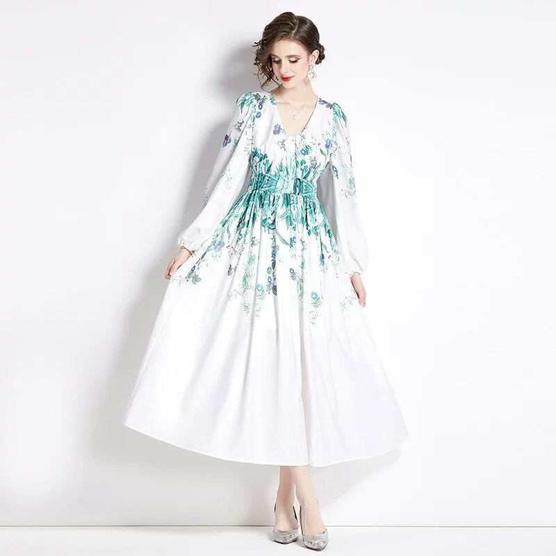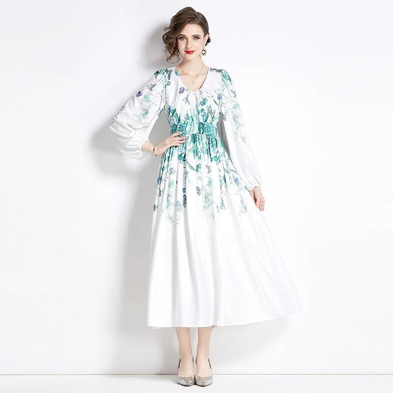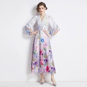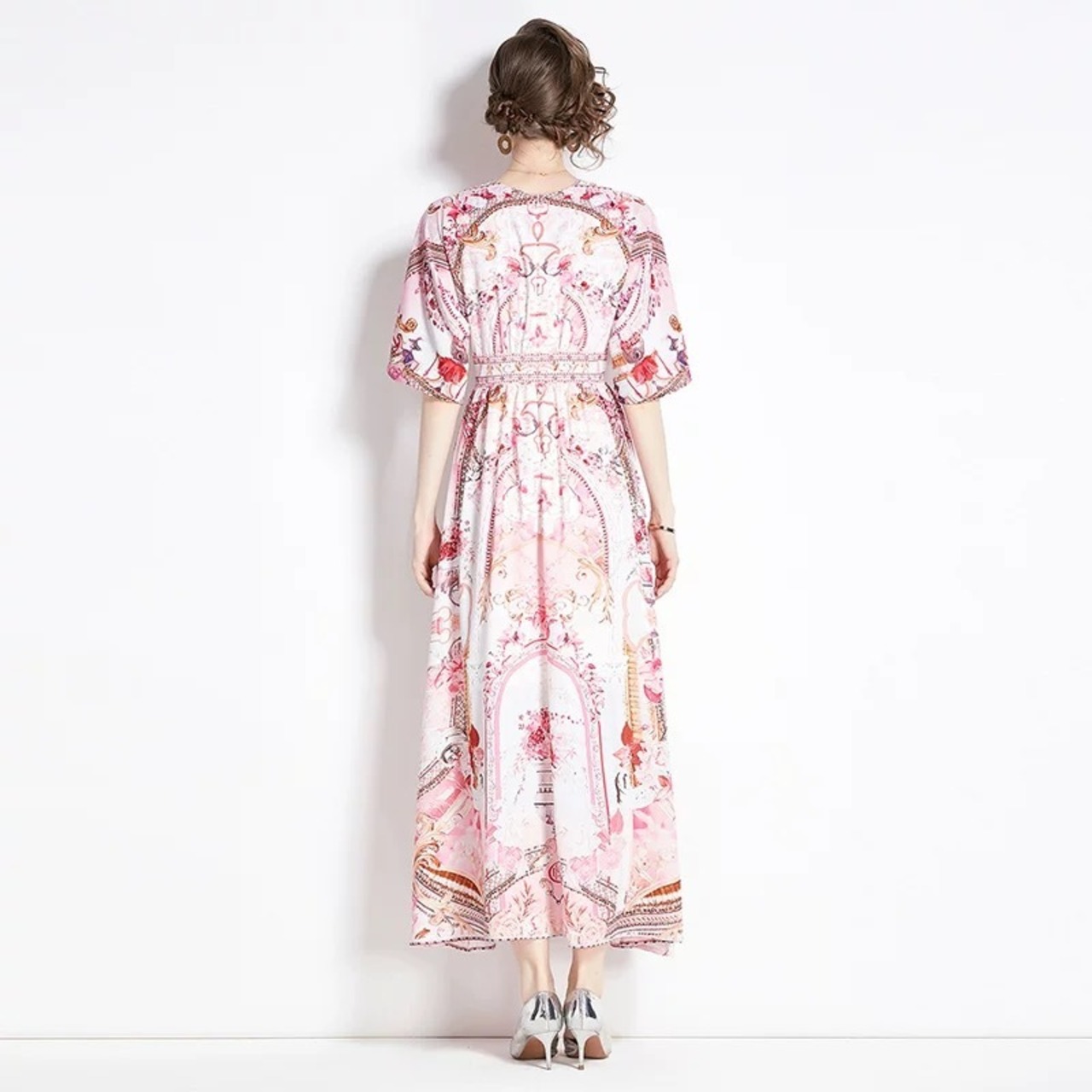 紫 緑 花柄 フラワー ワンピース 緑 ピンク