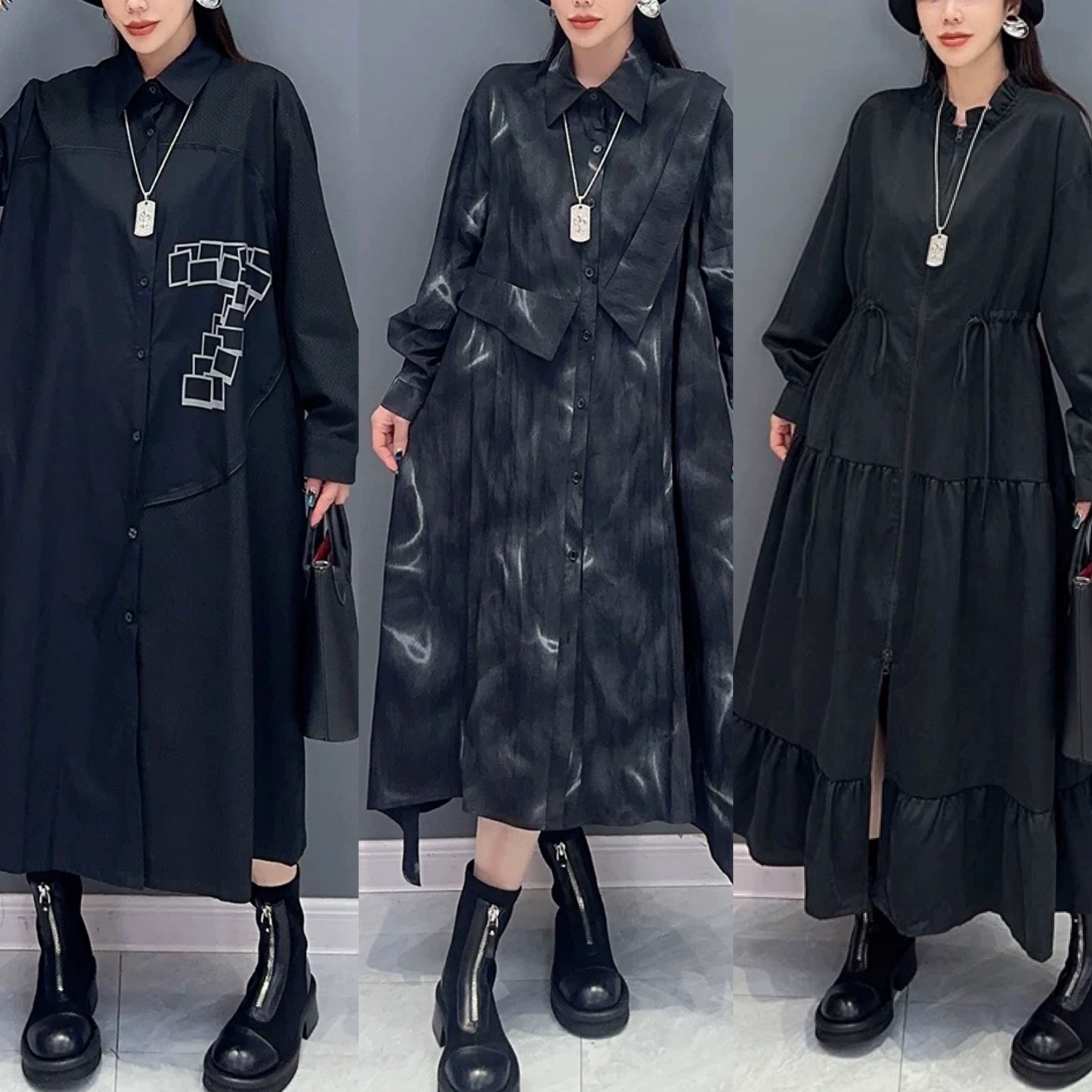 黒 ワンピース ブラウス シャツ カジュアル モード ストリート ジャケット アウター