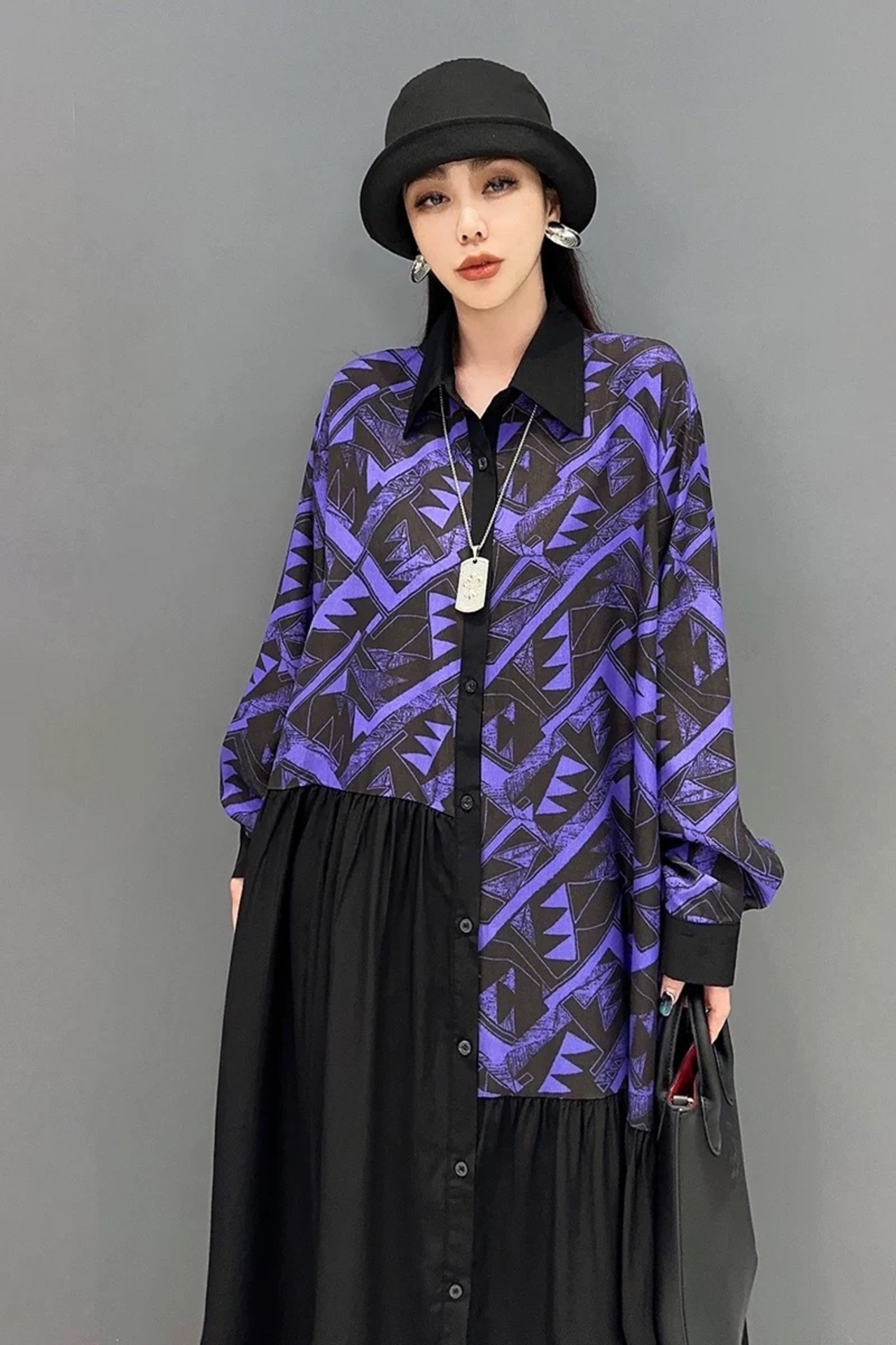 ワンピース ブラウス 白 黒 紫 ゆったり カジュアル