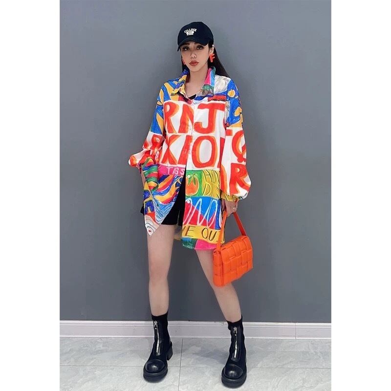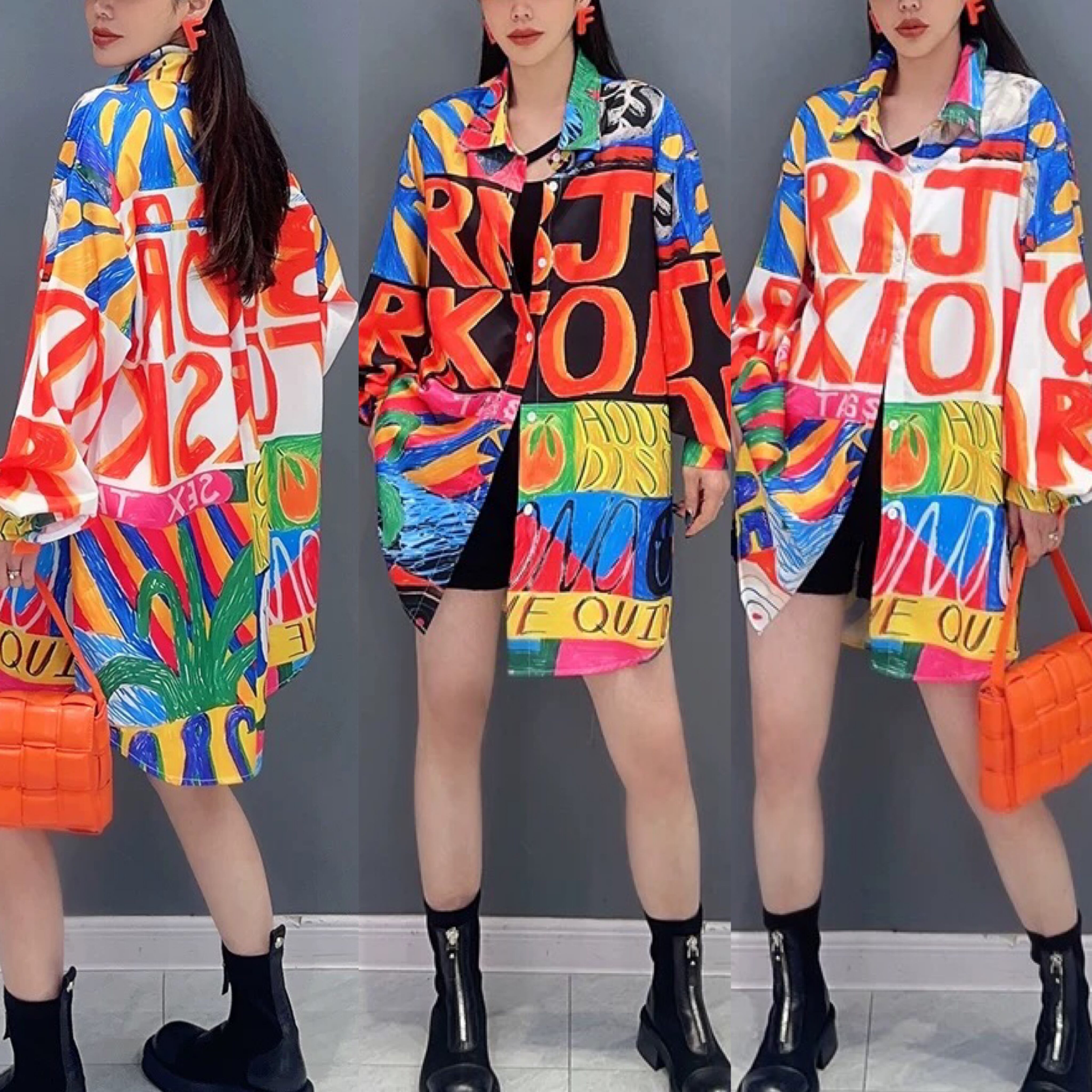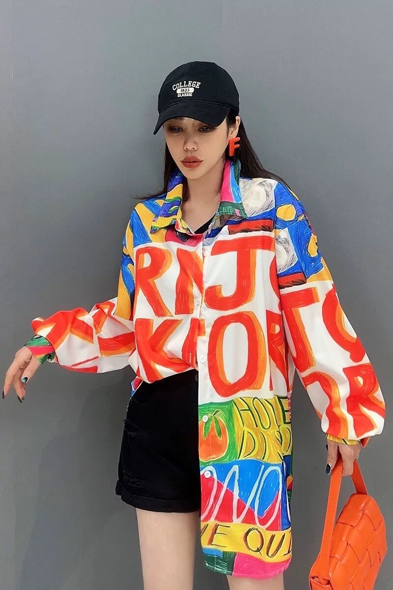 ブラウス ワンピース カラフル オレンジ 黒 白 シャツ ゆったり
