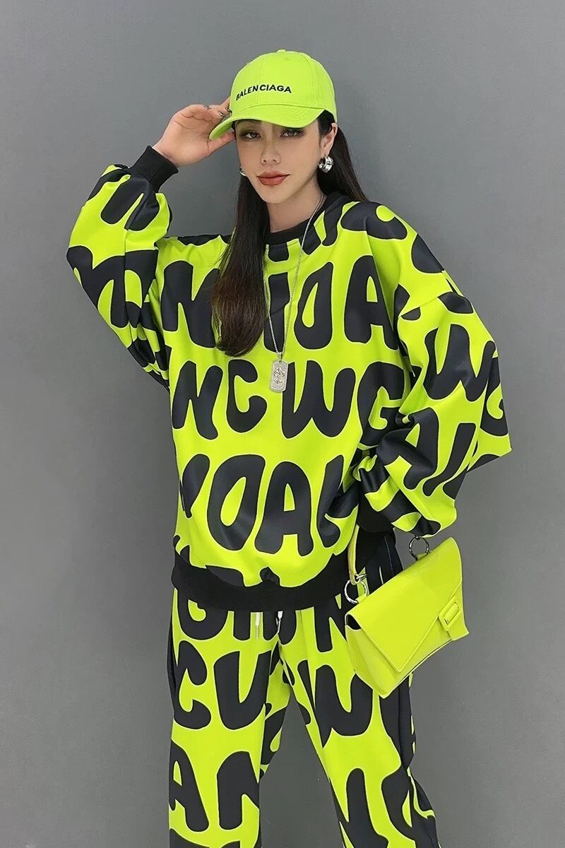 【セットアップ】カジュアル 黄色 緑 スウェット パーカー