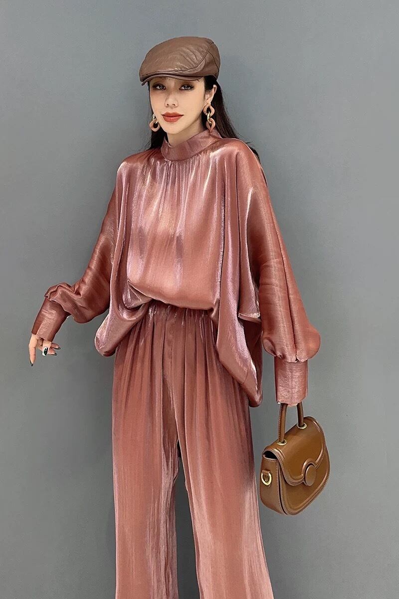 【セットアップ】茶色 ピンク パンツ ボトムス カジュアル ワンピース スウェット