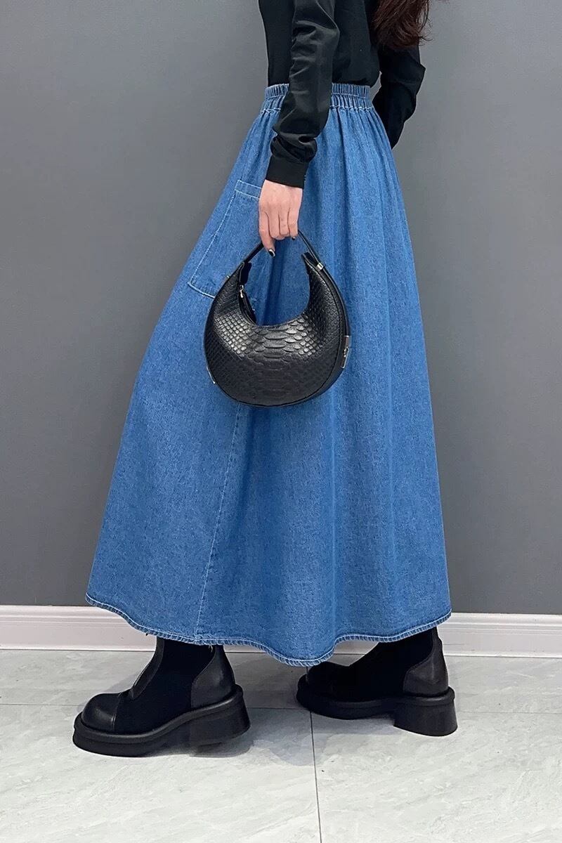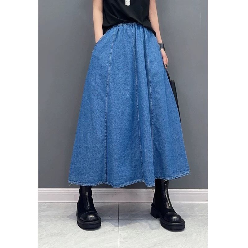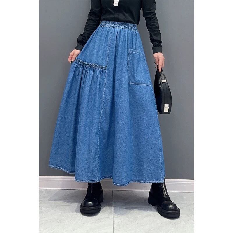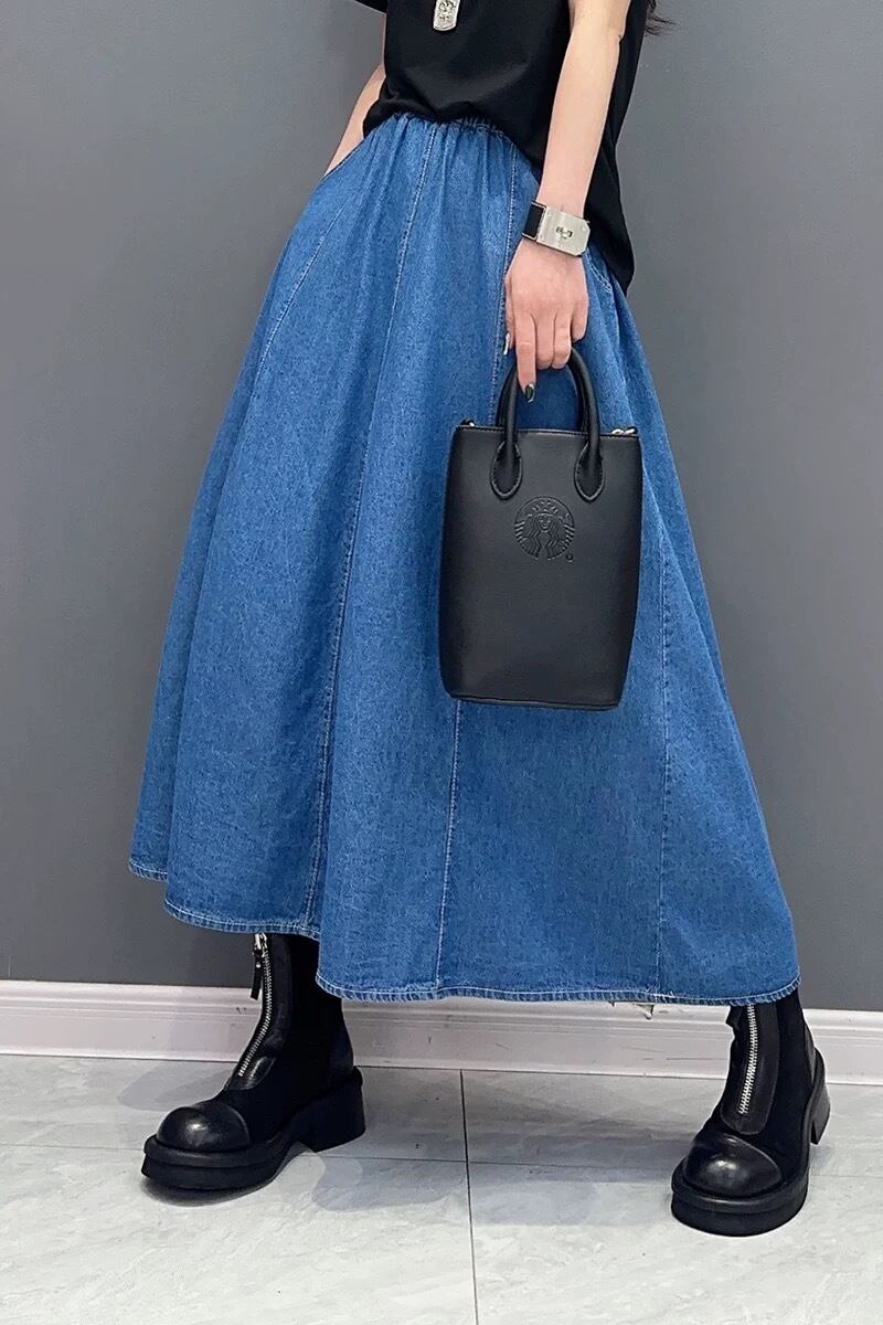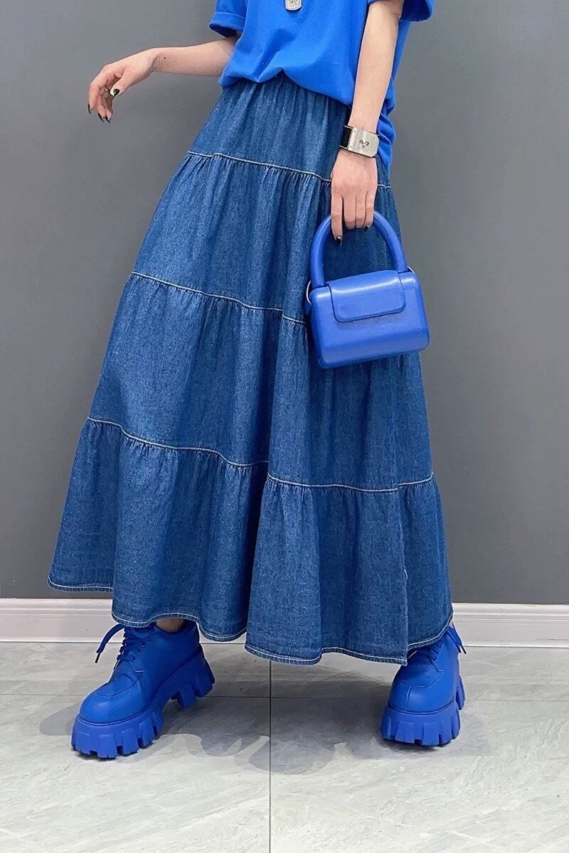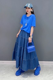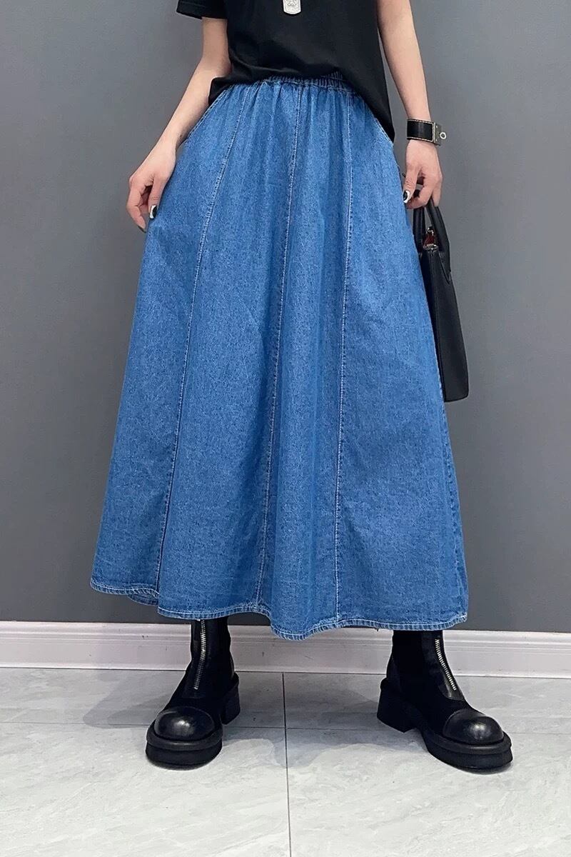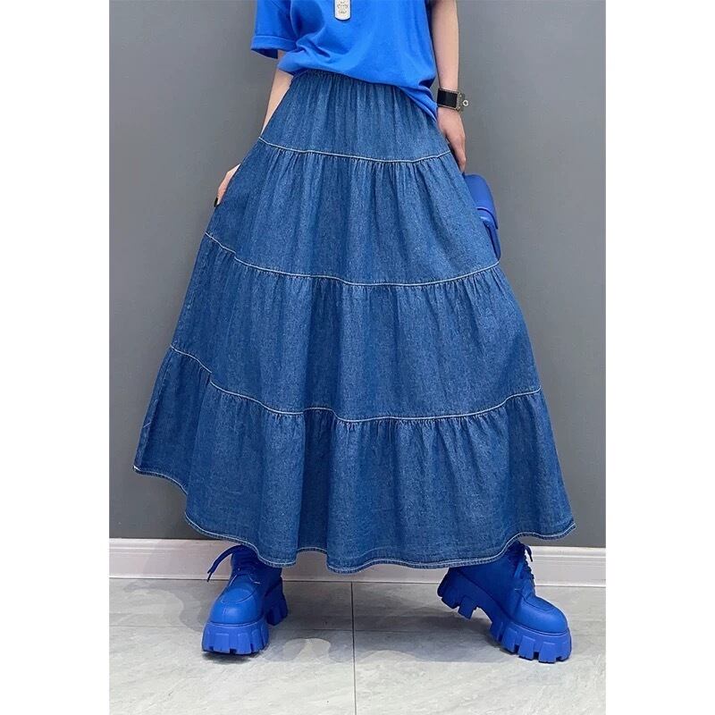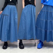 ボトムス 水色 デニム マキシ スカート カジュアル スウェット ロング
