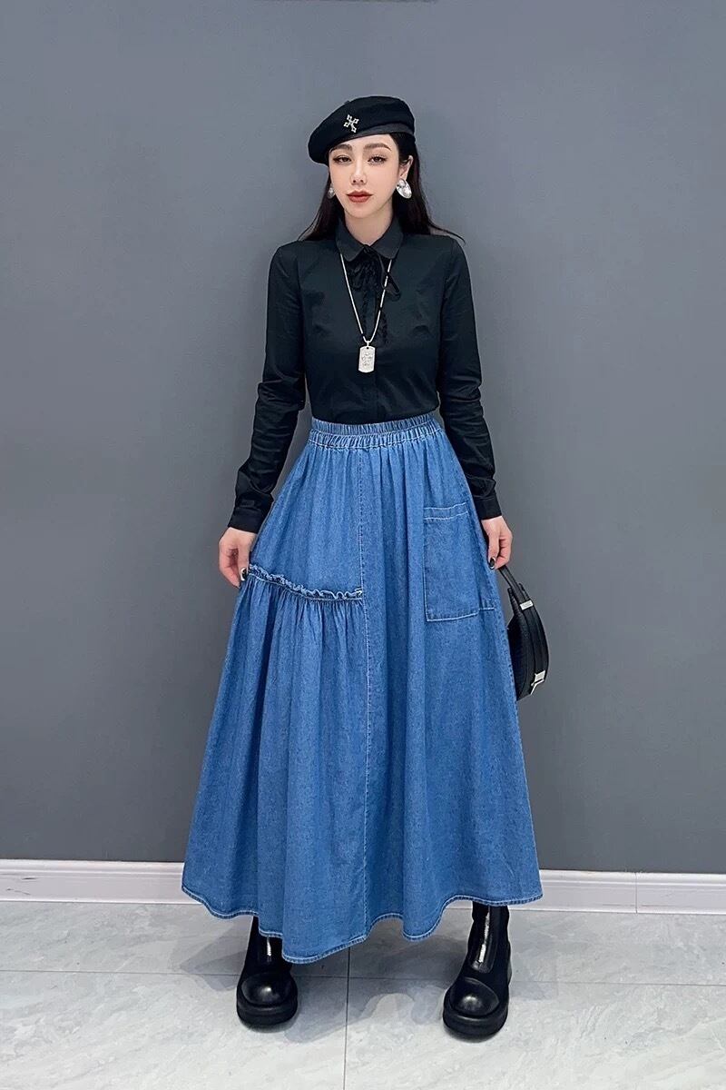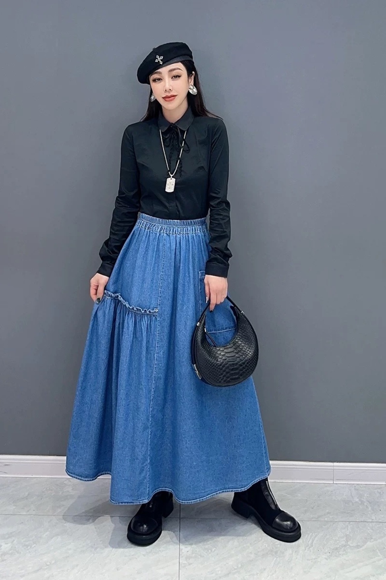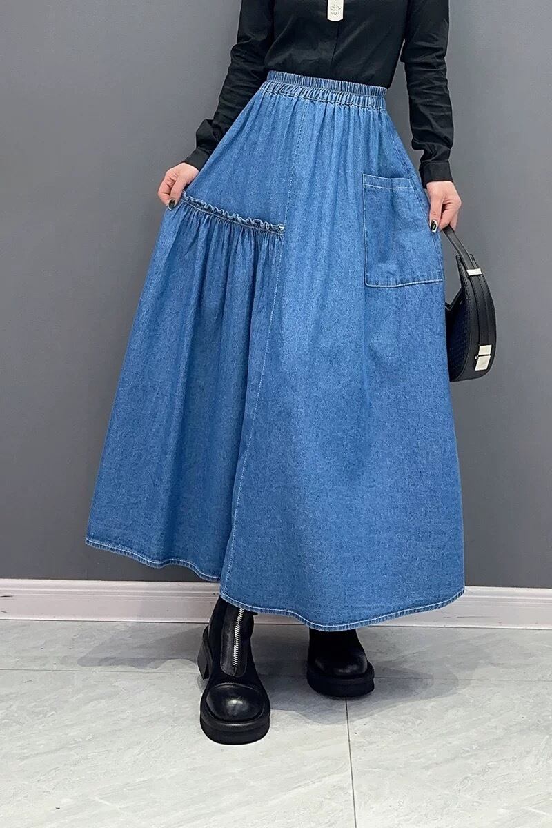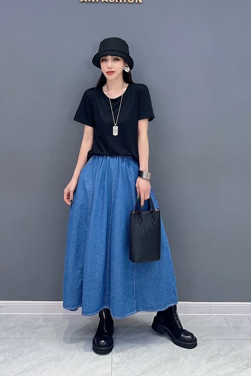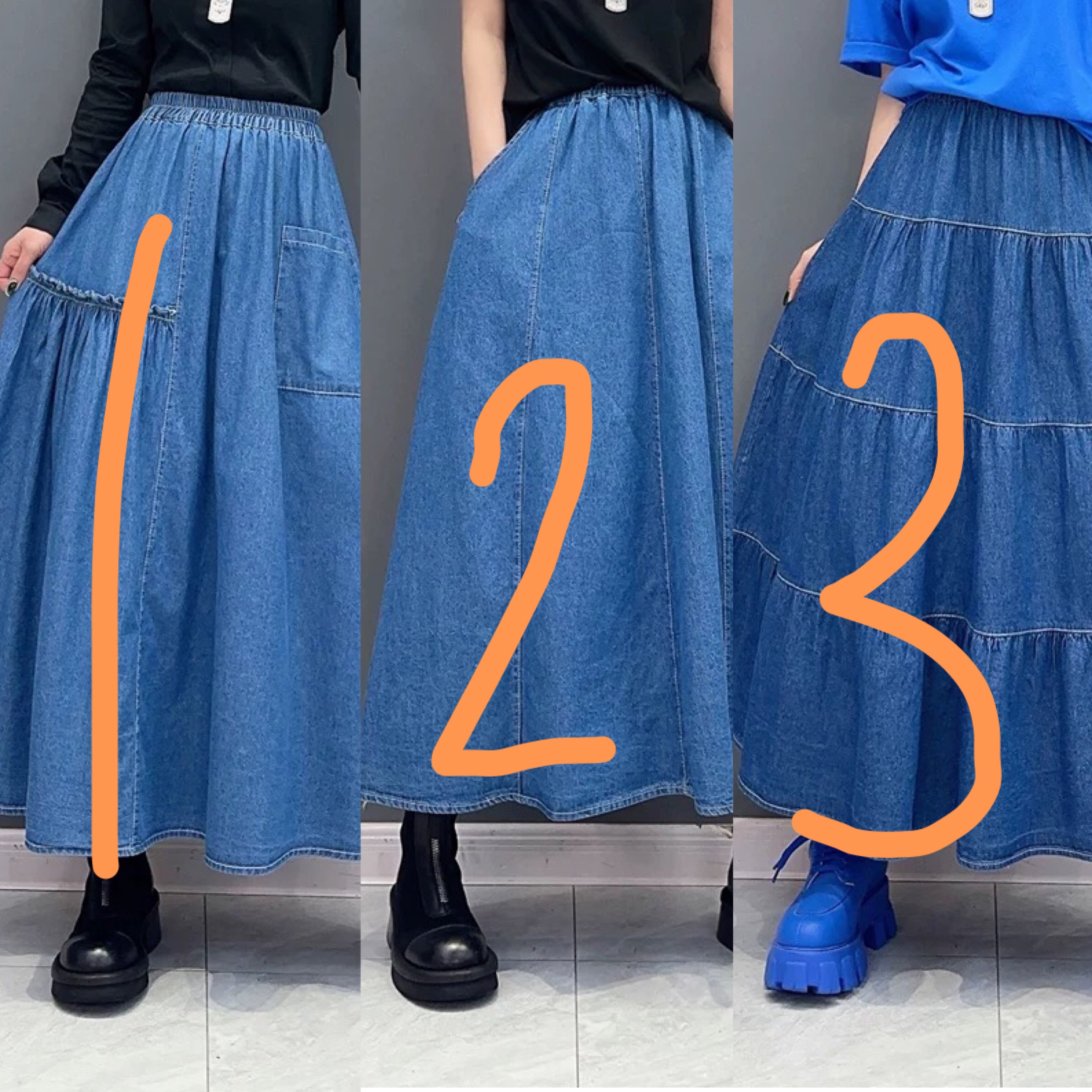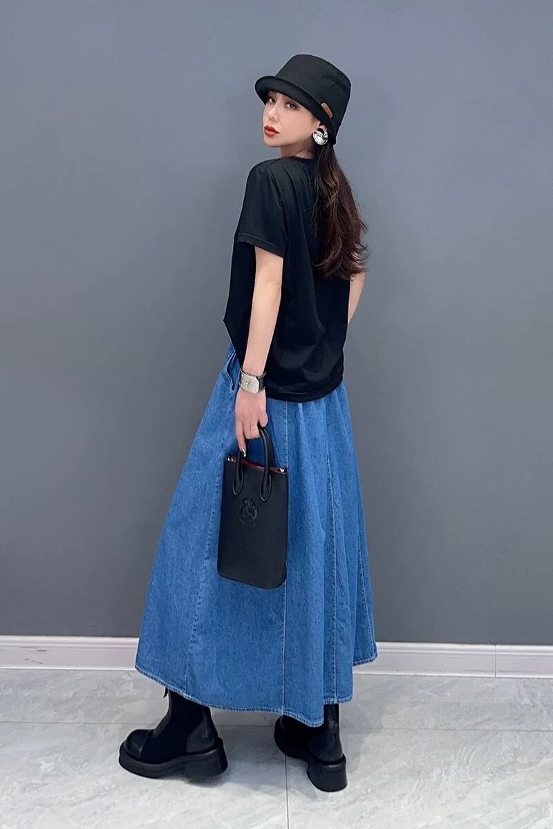 ボトムス 水色 デニム マキシ スカート カジュアル スウェット ロング
