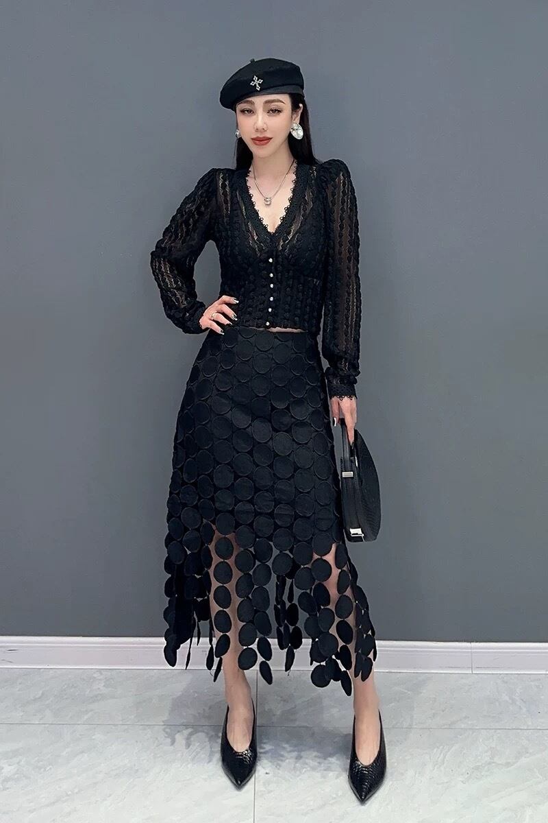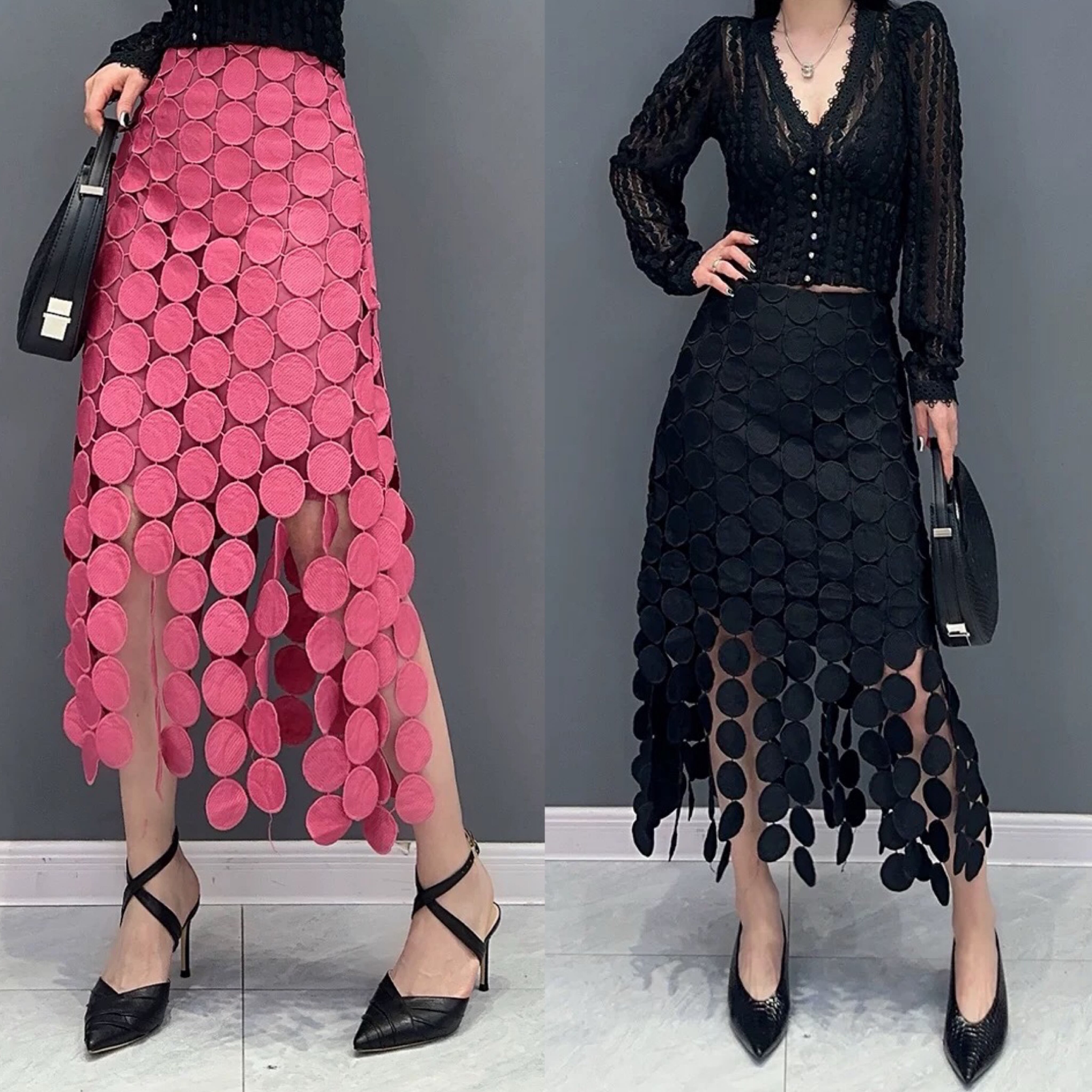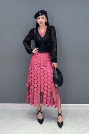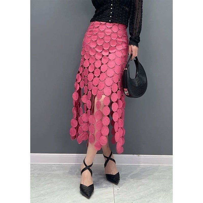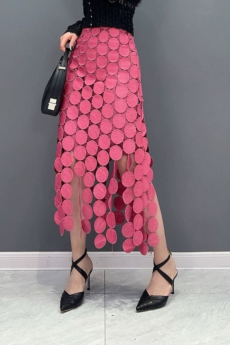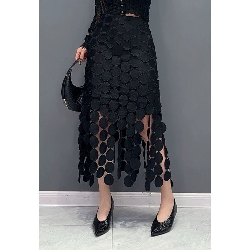 ピンク 水玉 ドット スカート ボトムス 黒 エレガント フリンジ