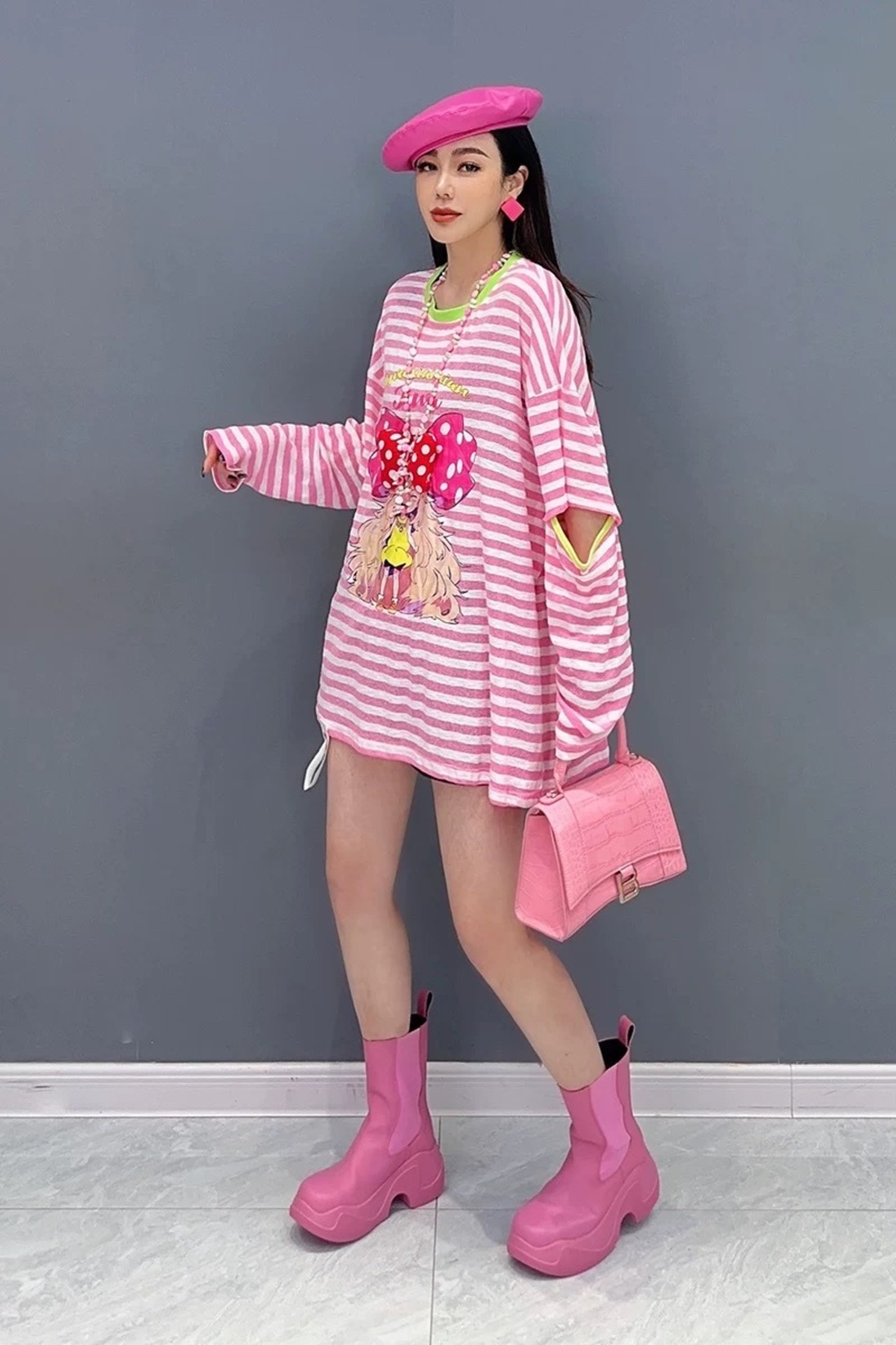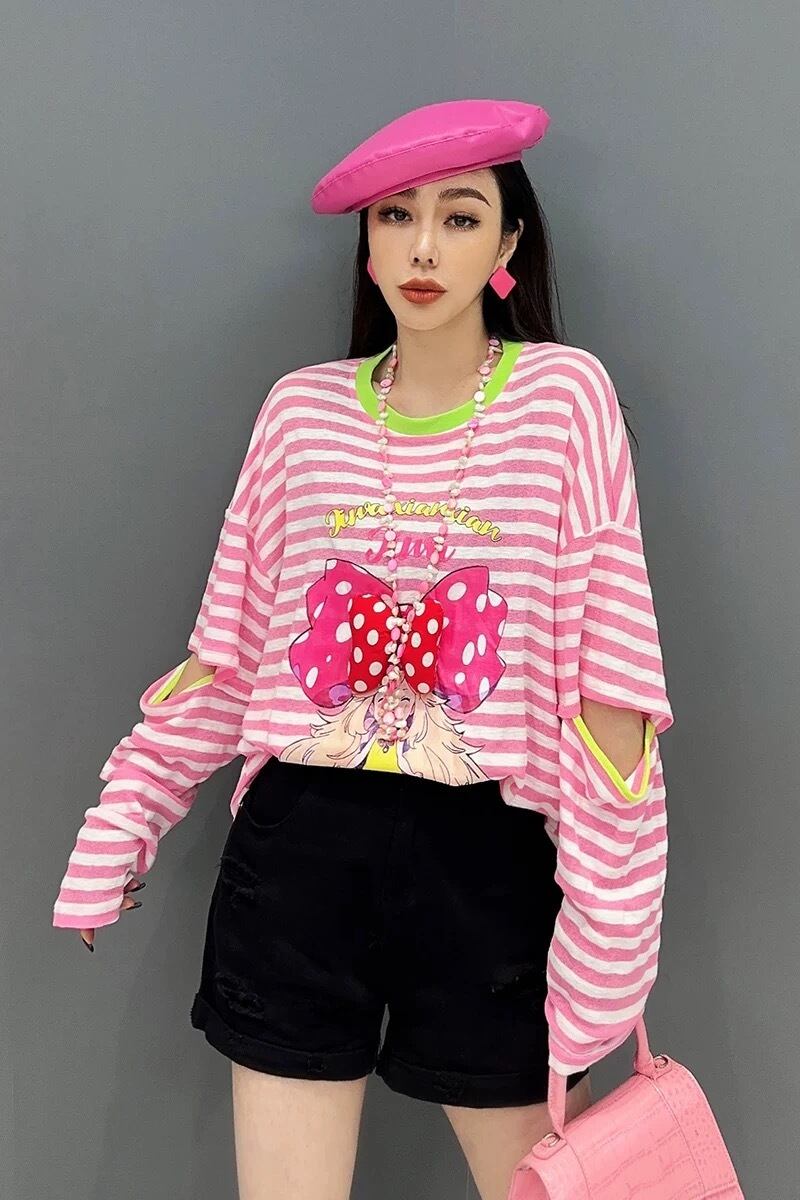 グラデーション 白 黒 ブラウス トップス ピンク リボン ボーダー 黄色 オフショルダー