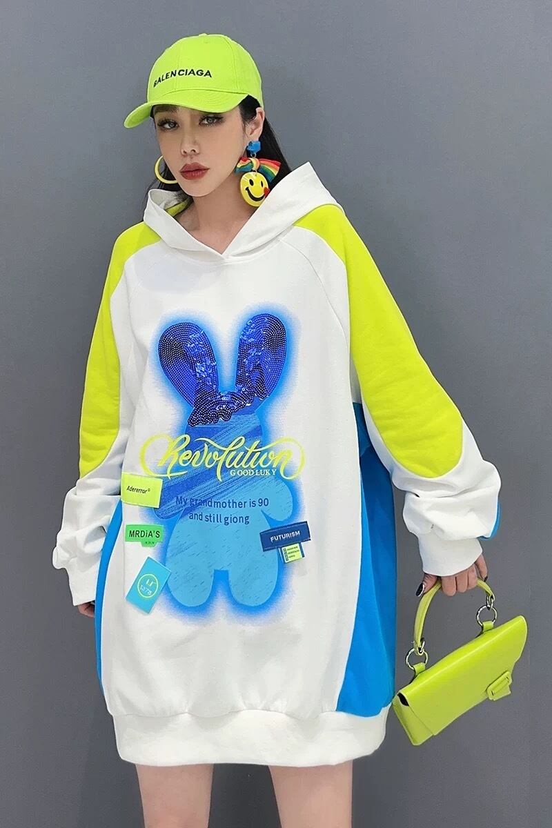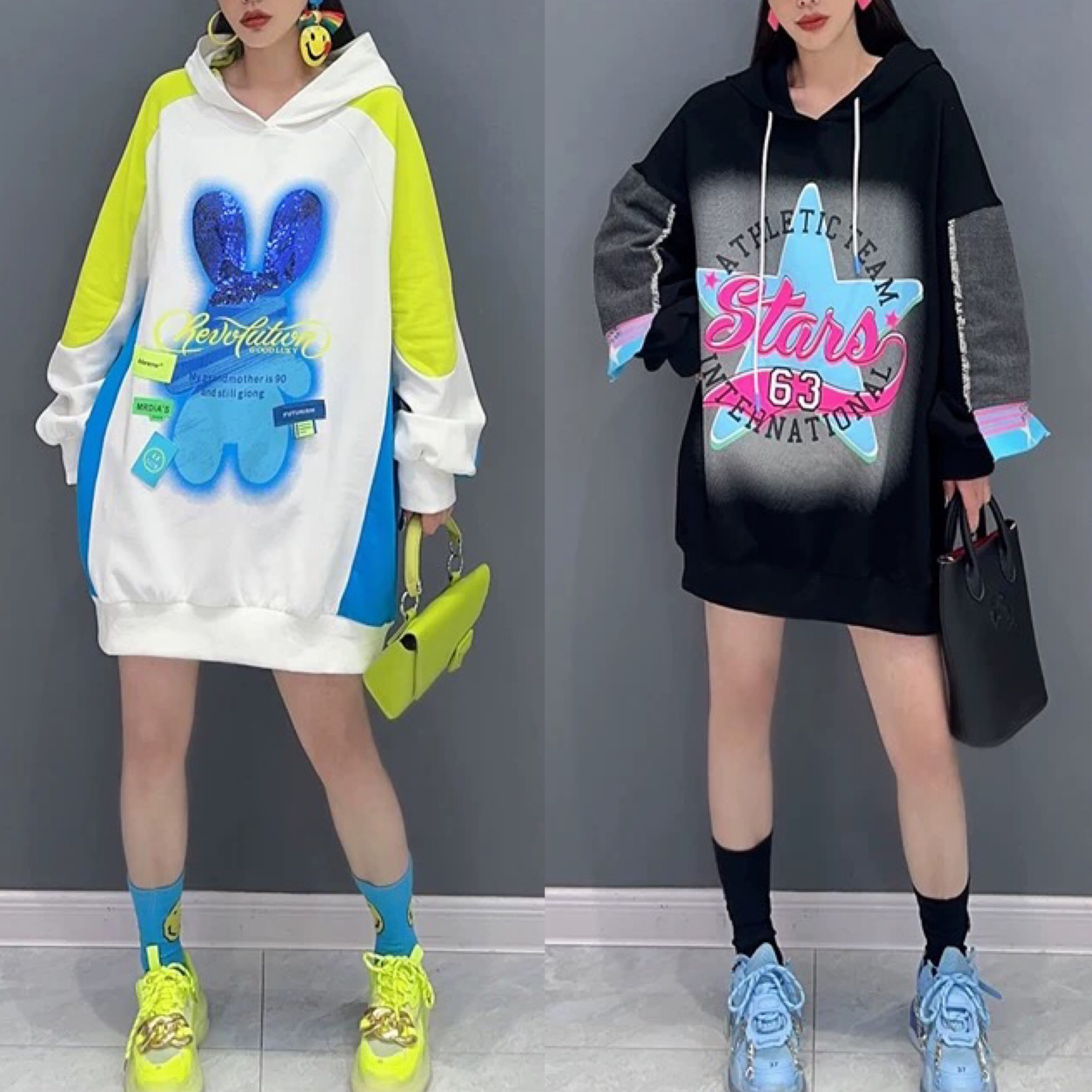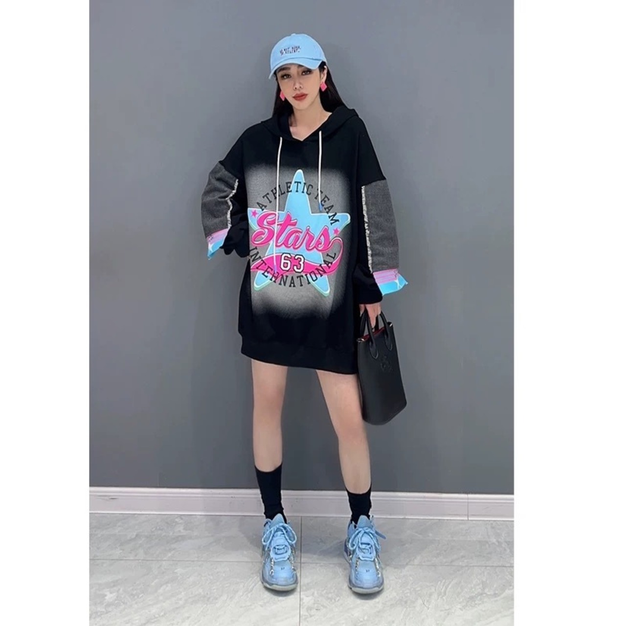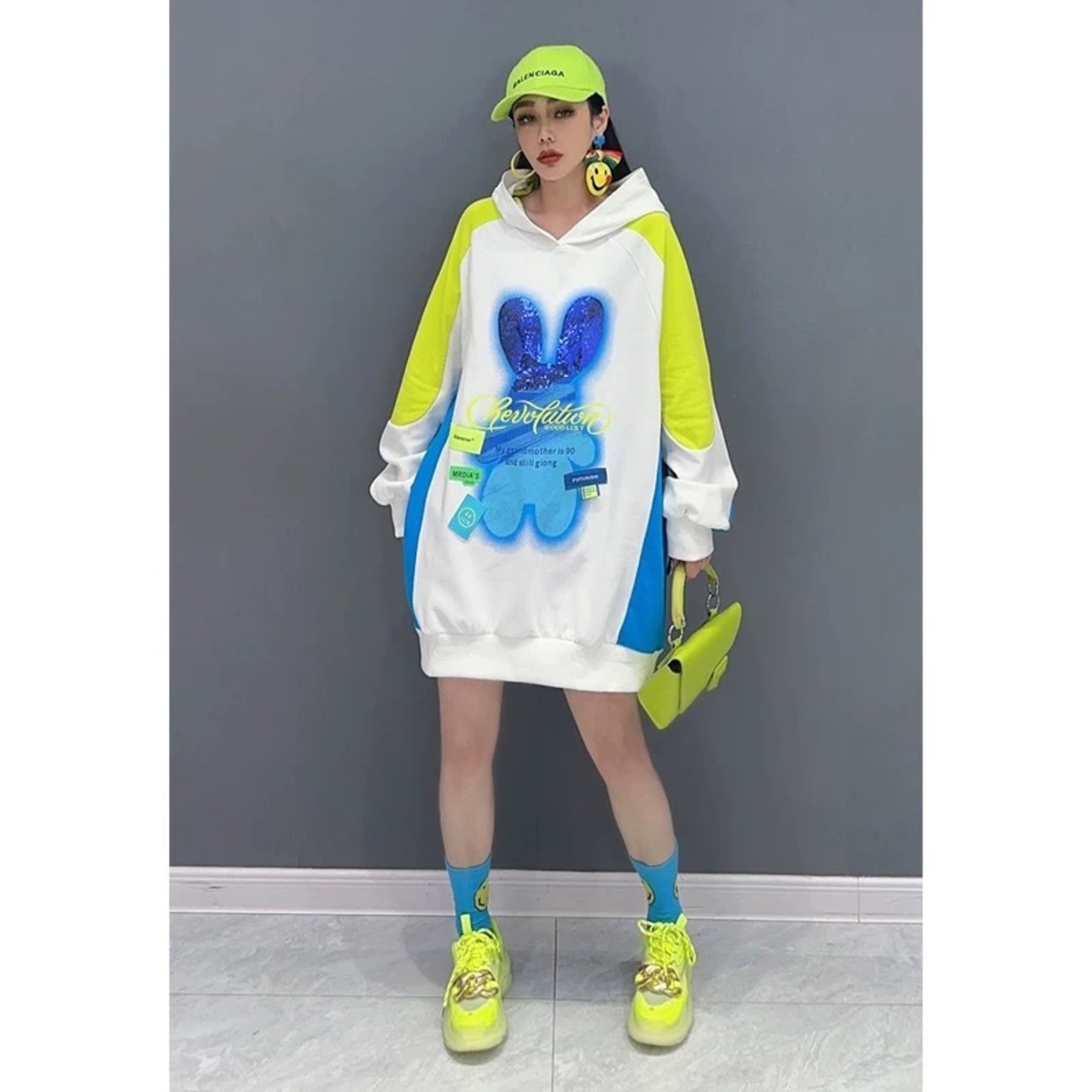 パーカー スウェット 黒 水色 星 黄色 うさぎ トレーナー ワンピース パーカー