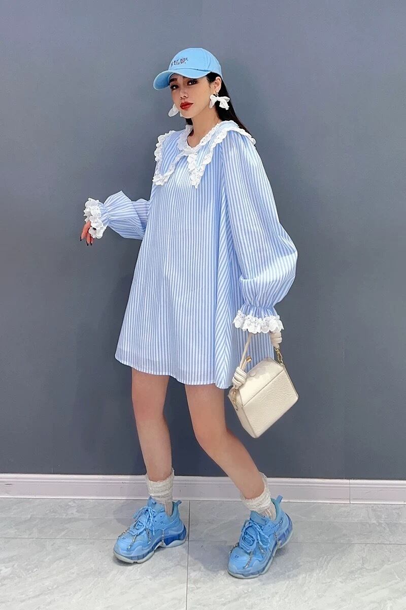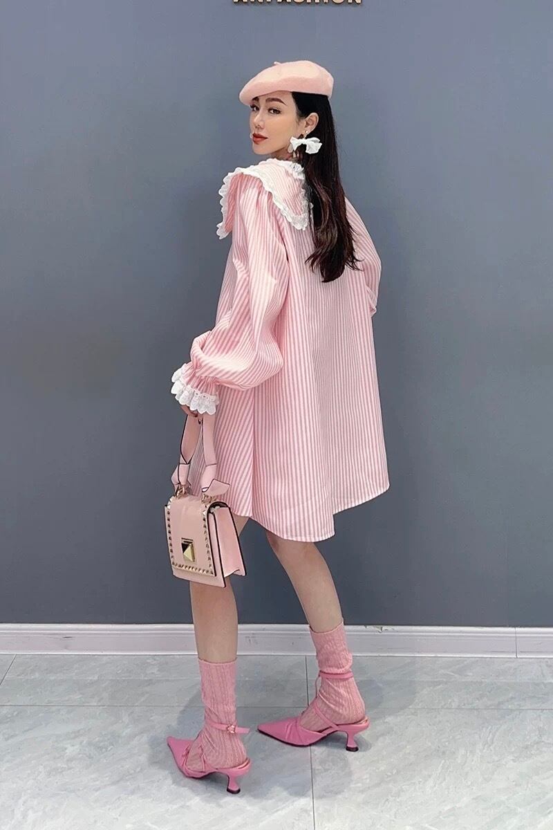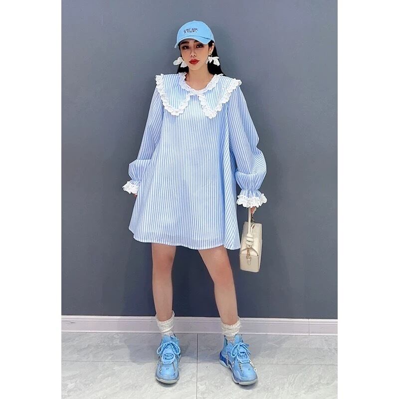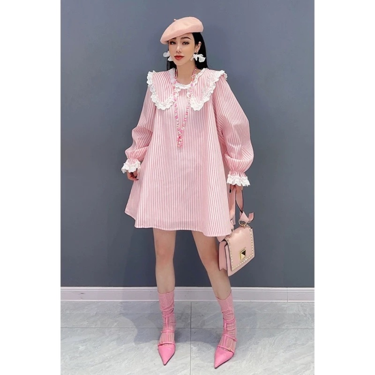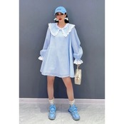 丸襟 ブラウス 水色 チェック ボーダー オレンジ カジュアル 可愛い お嬢様 ワンピース ピンク