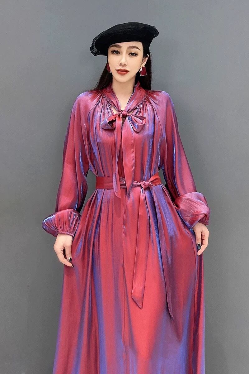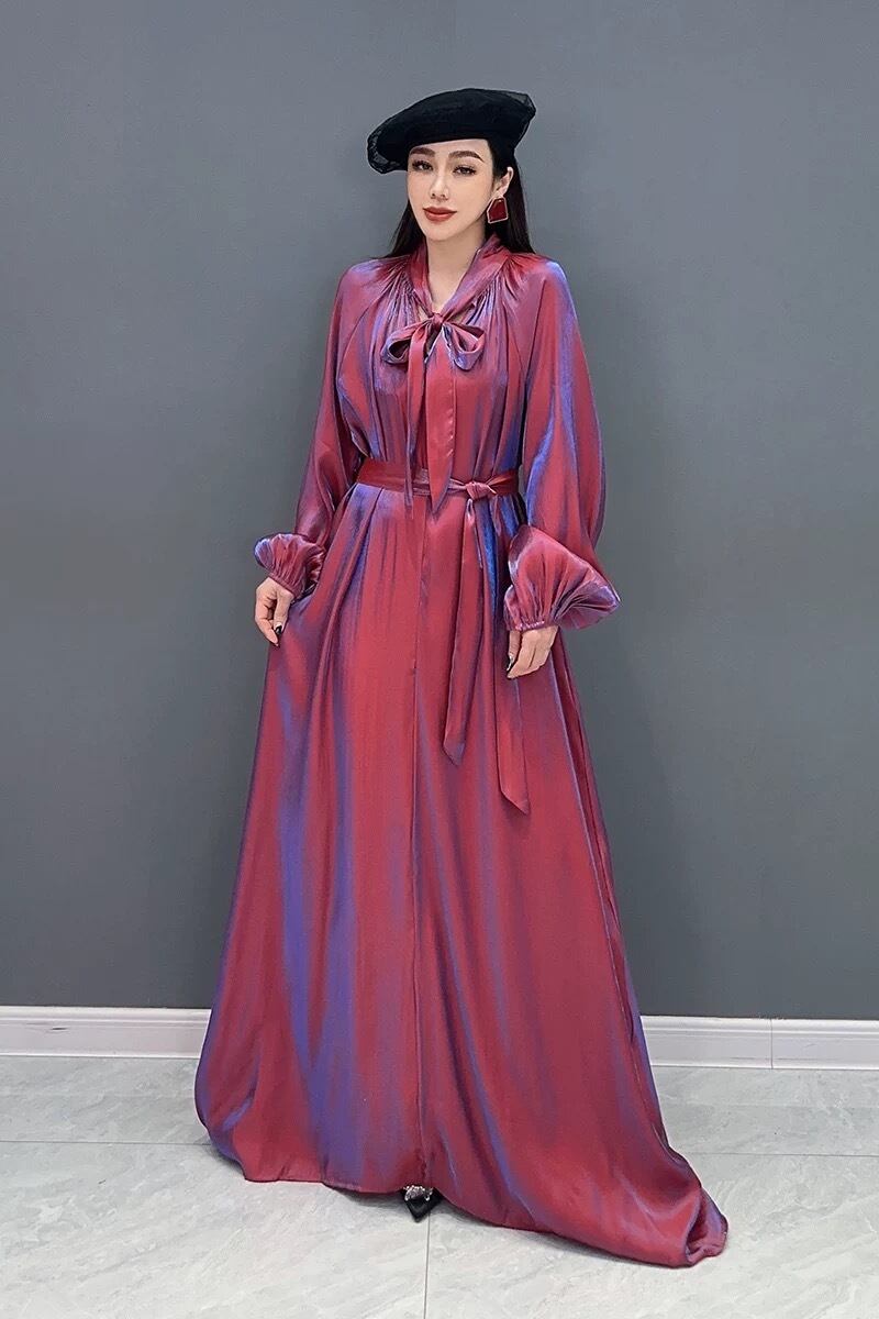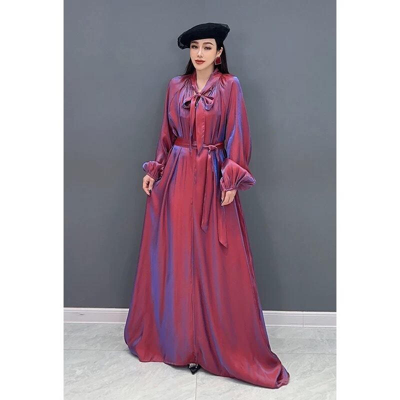 紫 ブラウス ワンピース ロング リボン エレガント マキシ