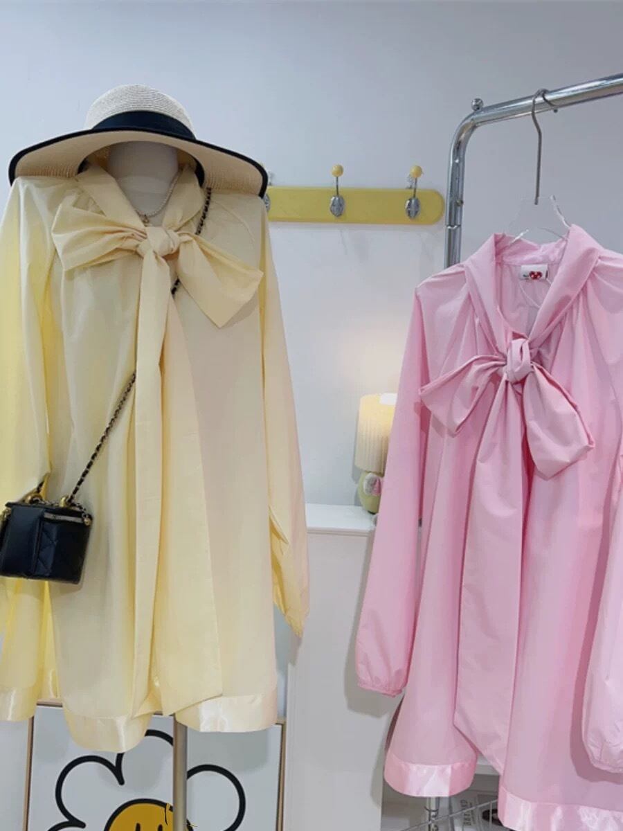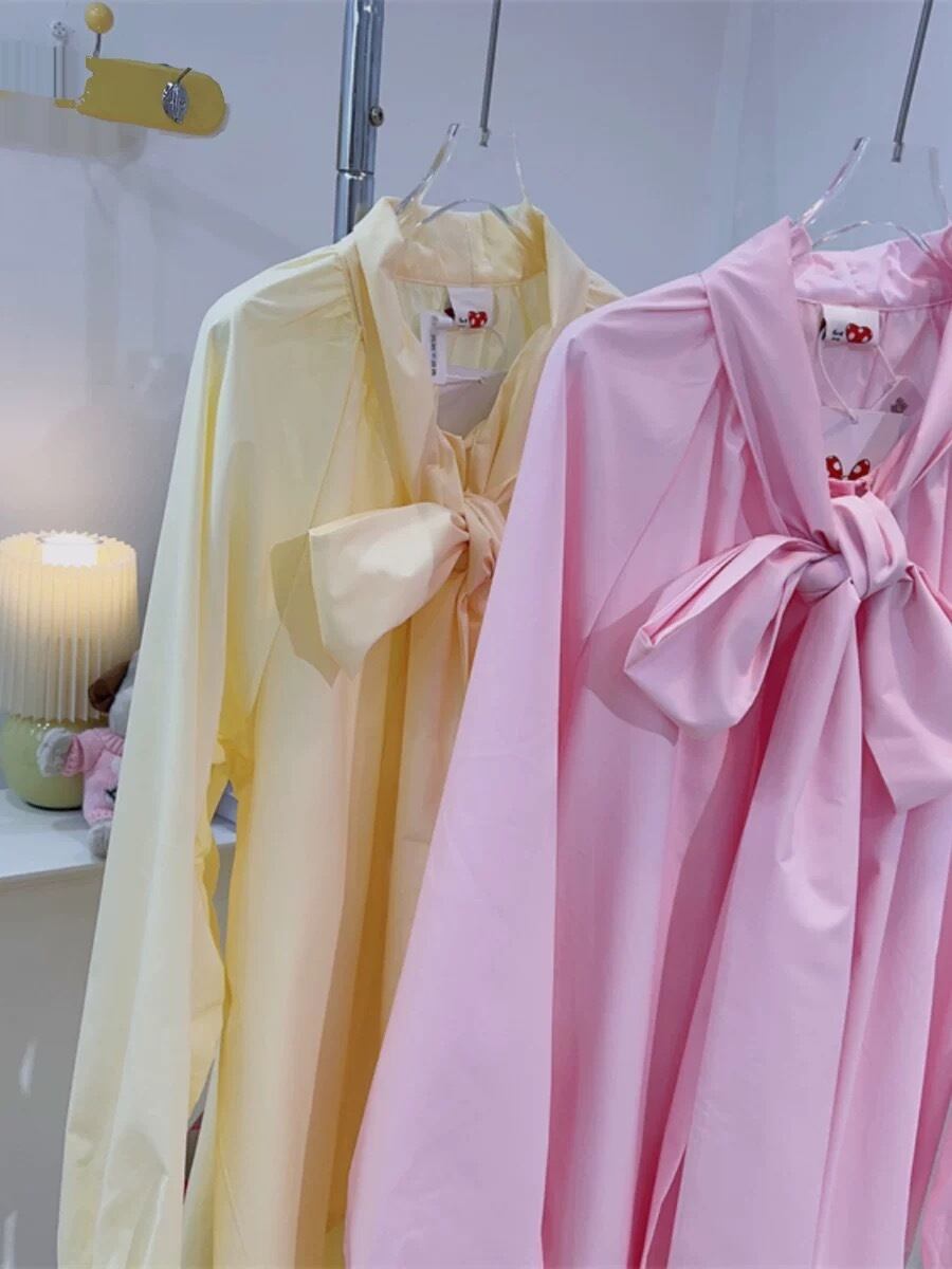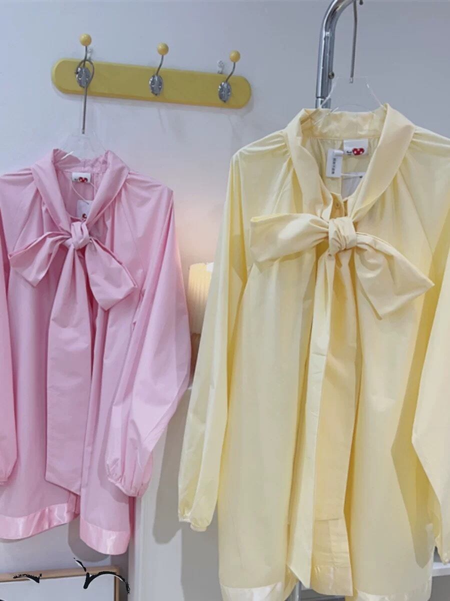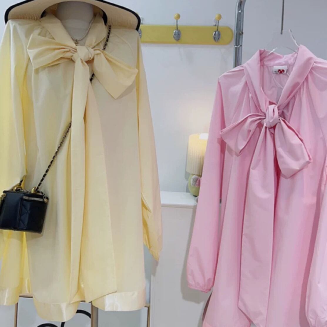 ブラウス リボン 黄色 ピンク ワンピース ガーリー 可愛い カジュアル