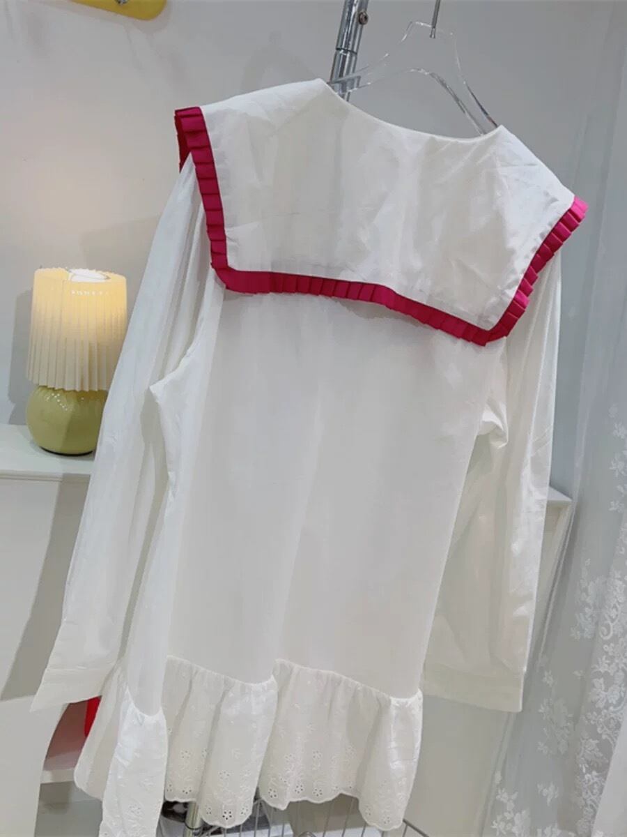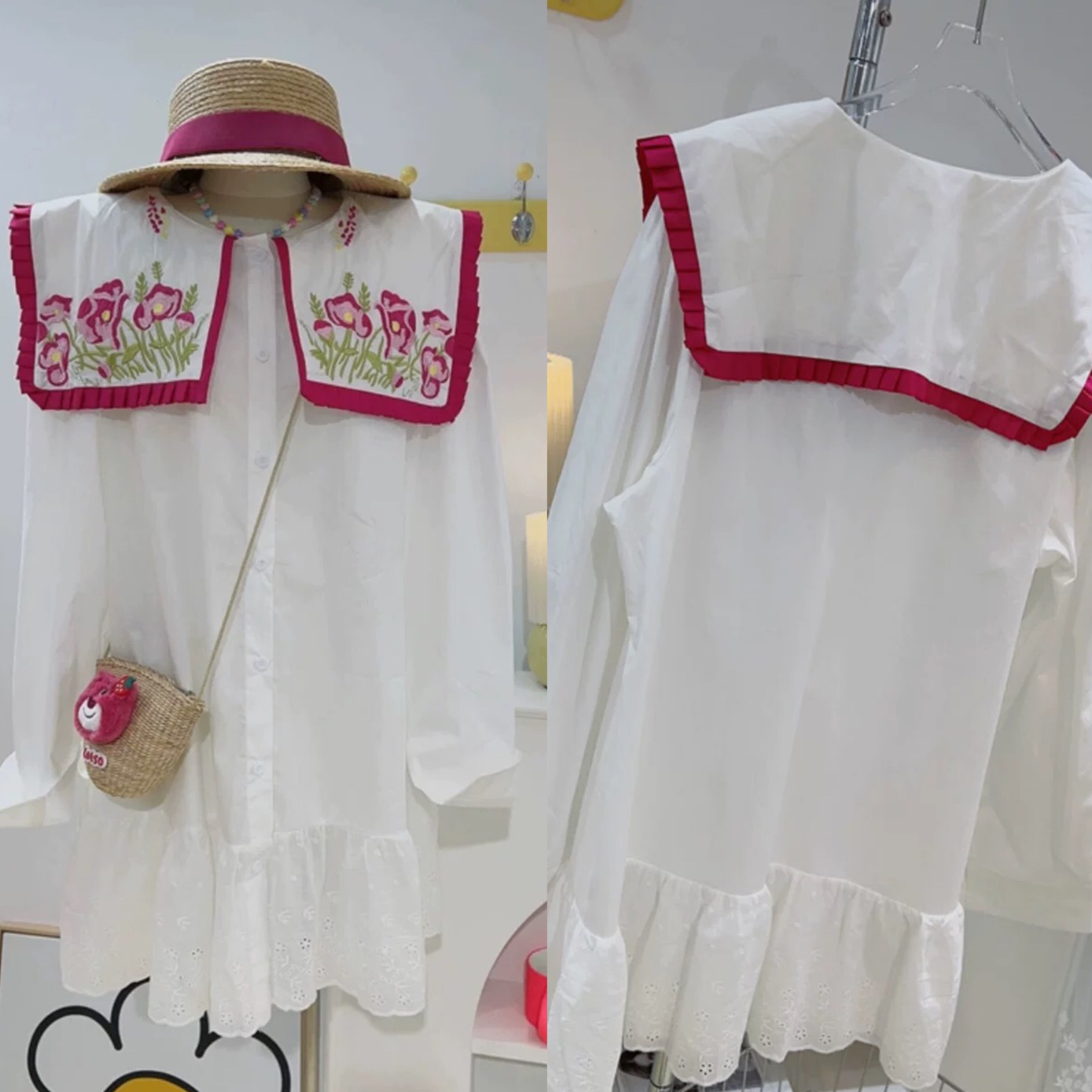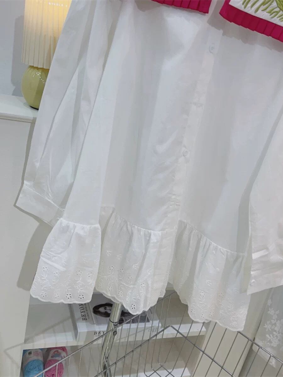 ワンピース 白 ブラウス トップス ガーリー ゆったり カジュアル 花柄 襟 フラワー