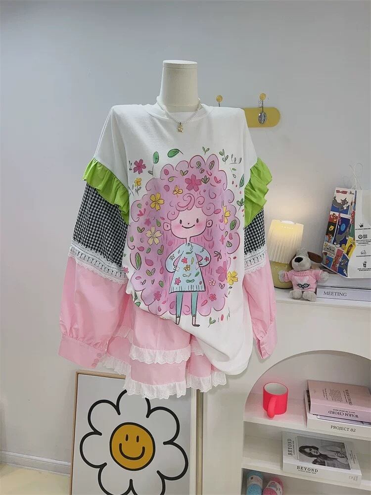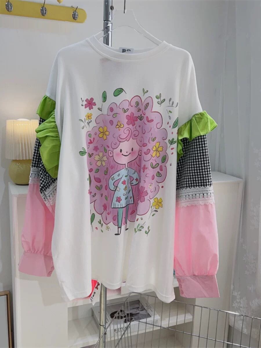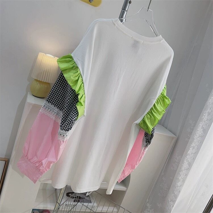 スウェット カジュアル ピンク 緑 トップス ブラウス トレーナー