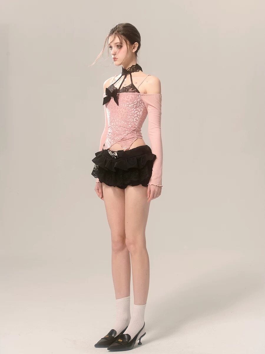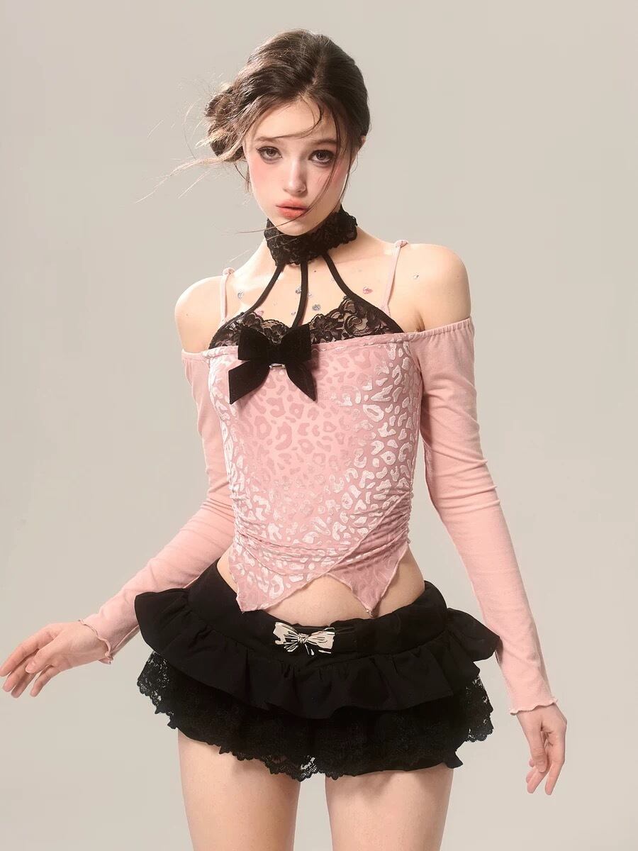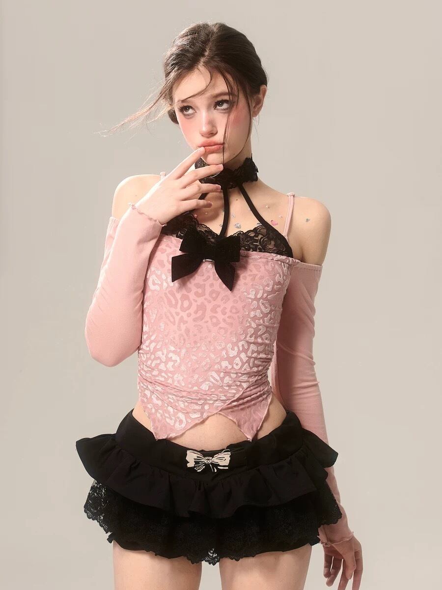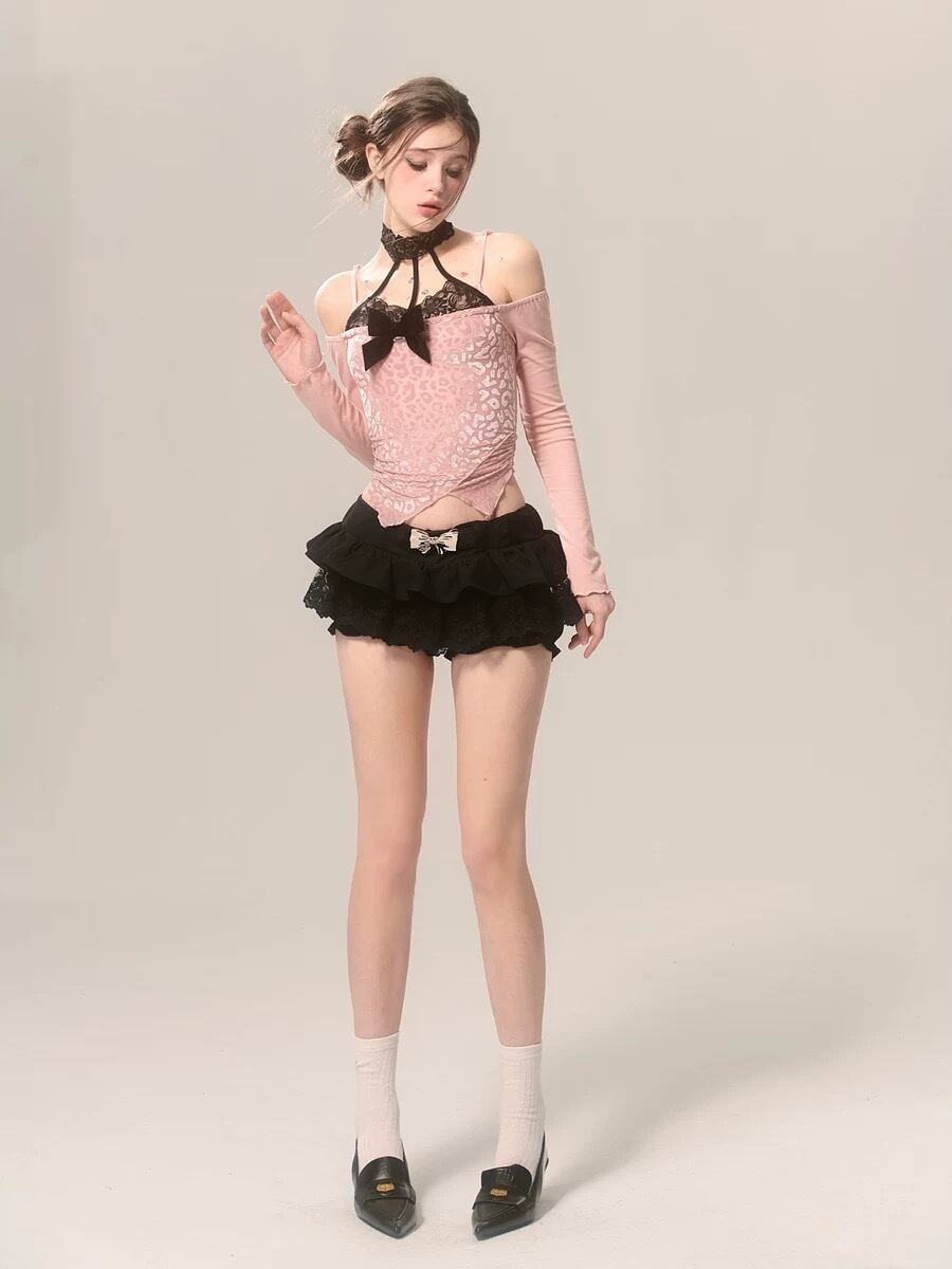ピンク オフショルダー 黄色 リボン ブラウス トップス ガーリー