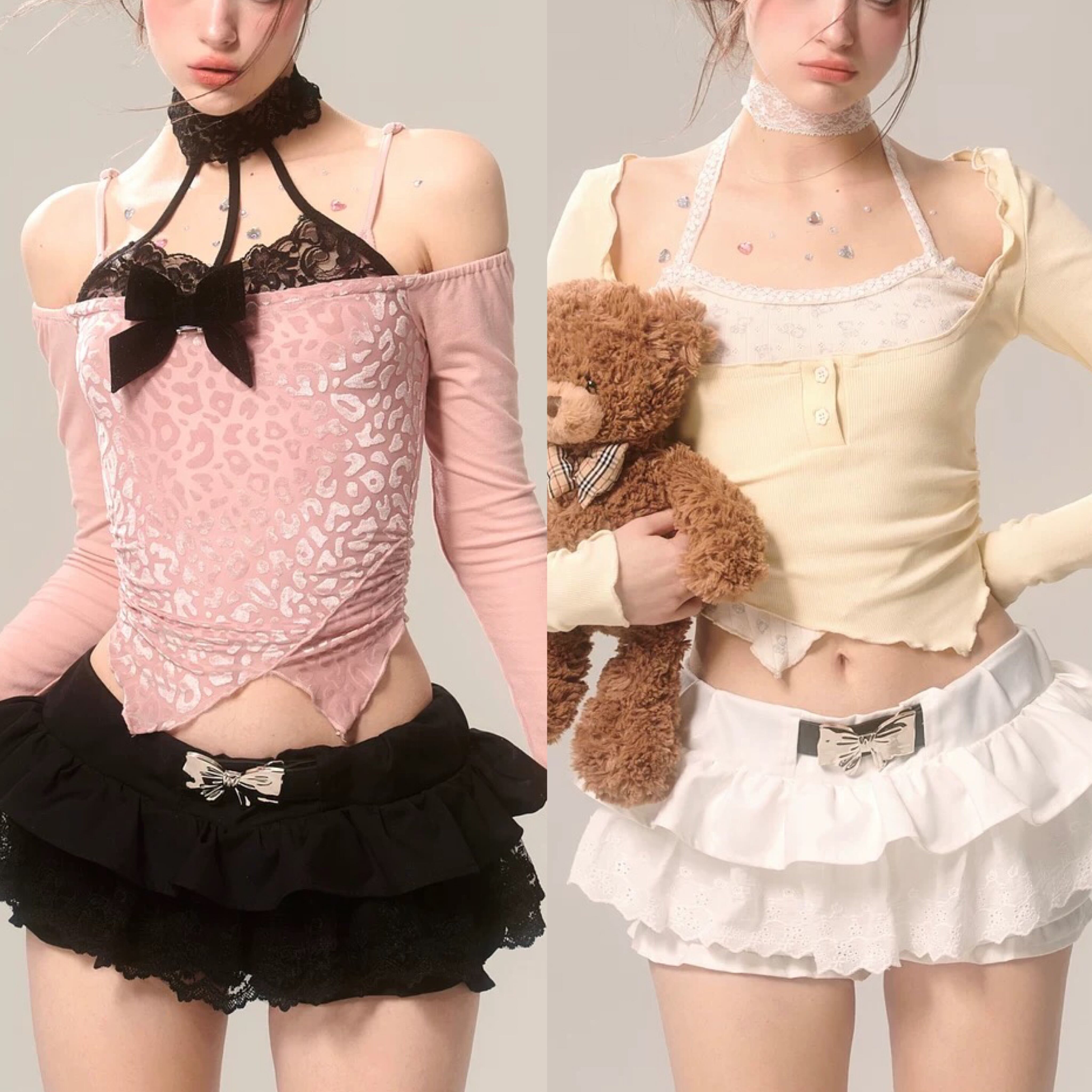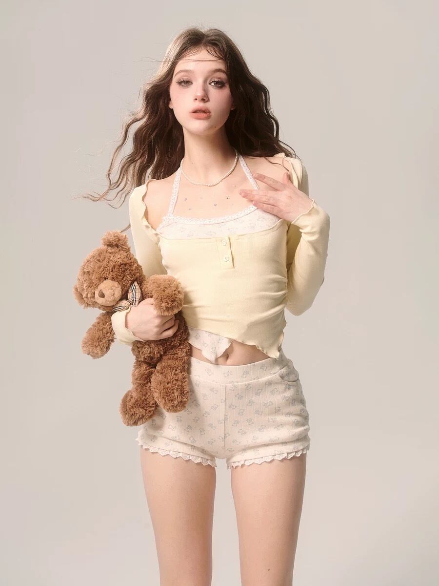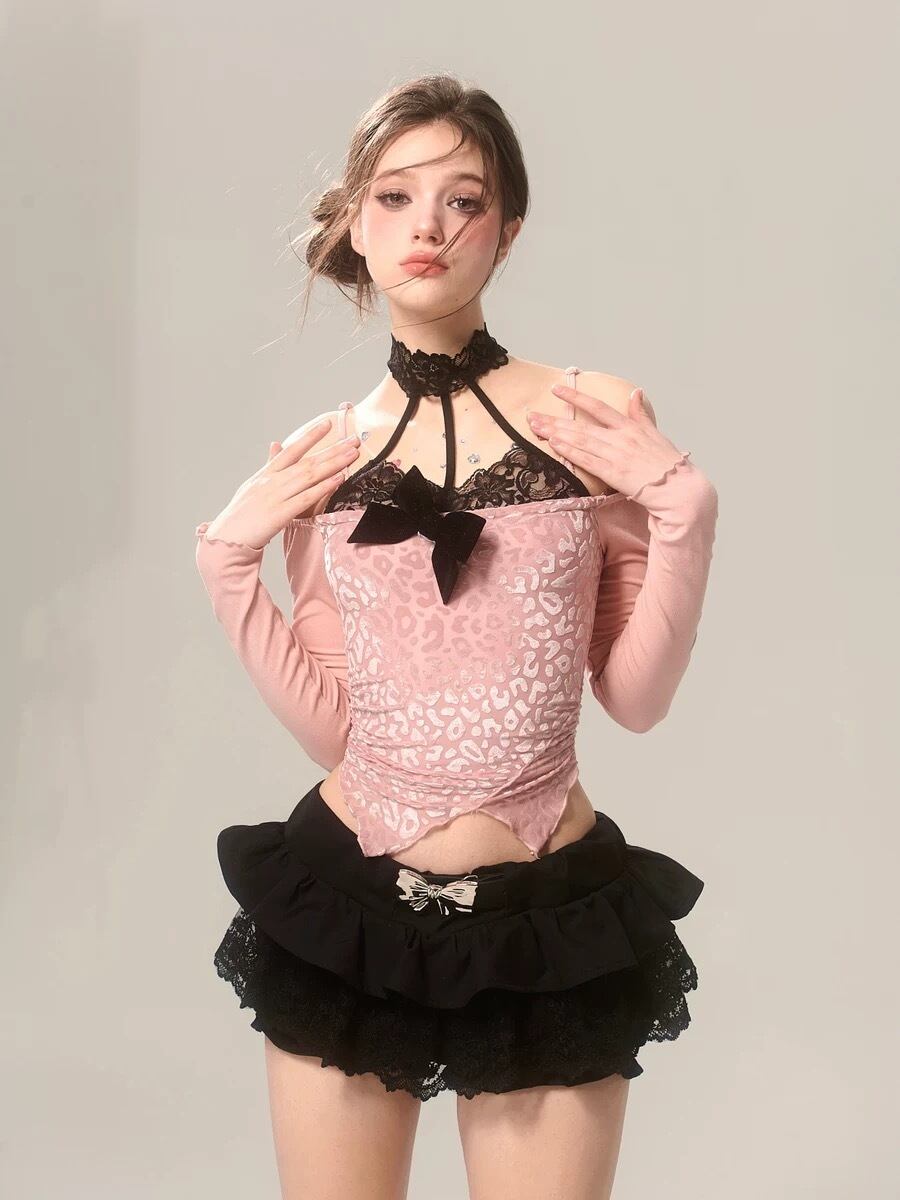 ピンク オフショルダー 黄色 リボン ブラウス トップス ガーリー