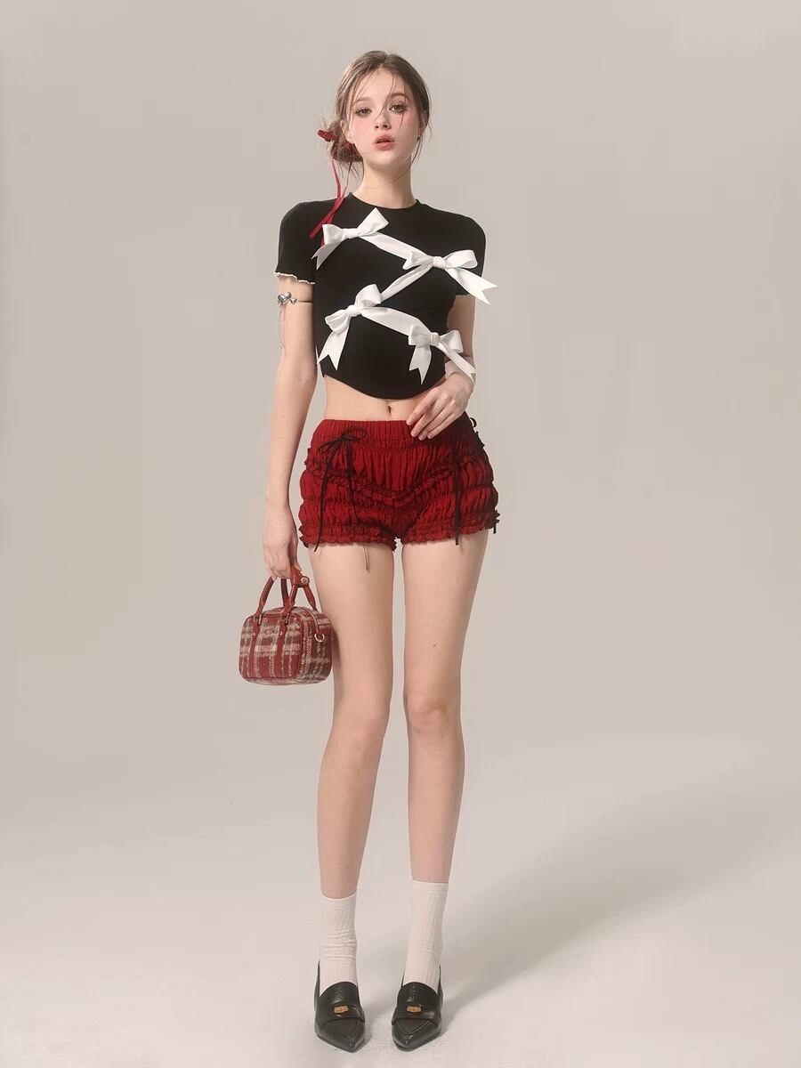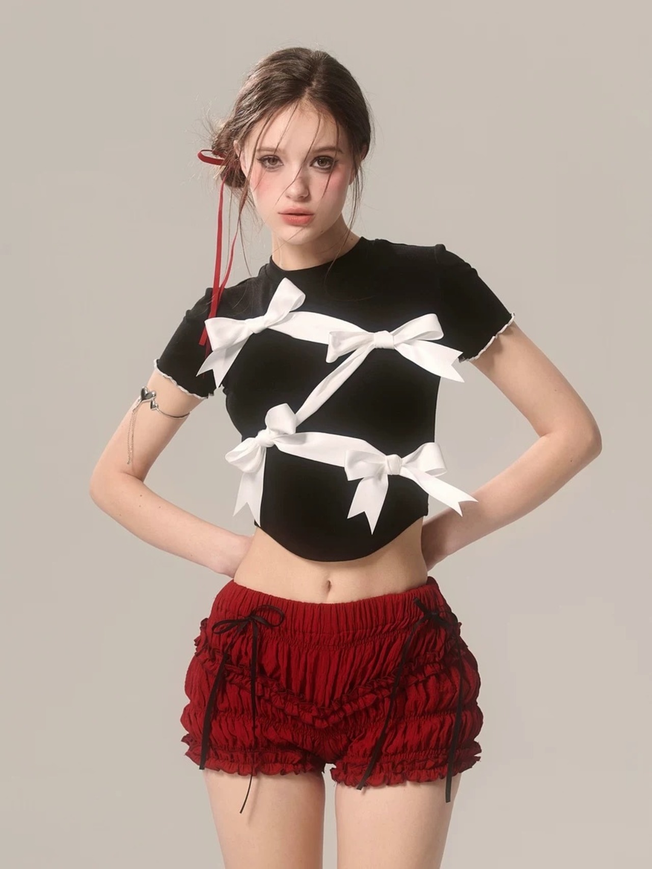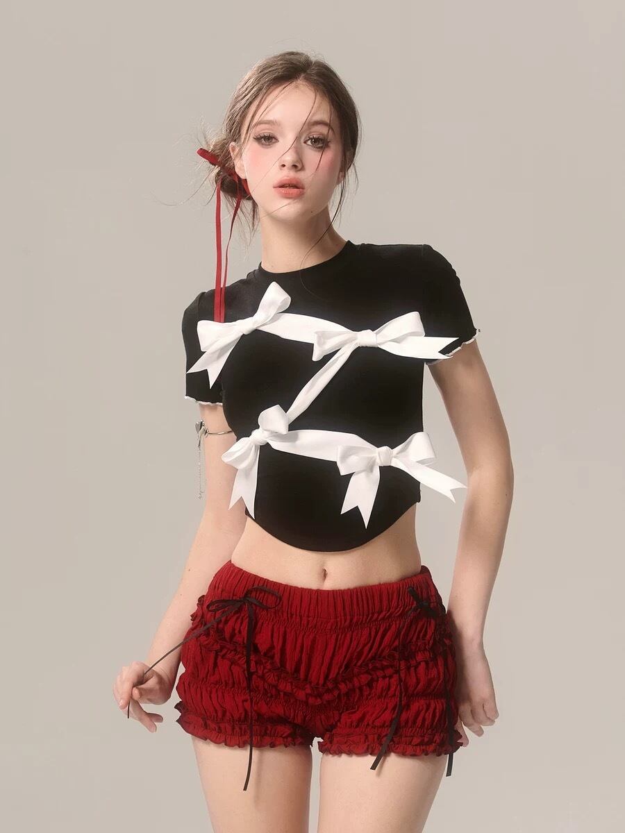 トップス リボン 黒 Tシャツ ブラウス カジュアル 可愛い