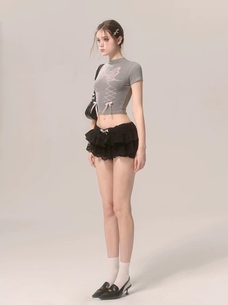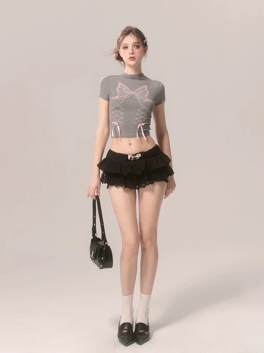 グレー 白 ホワイト リボン トップス ブラウス