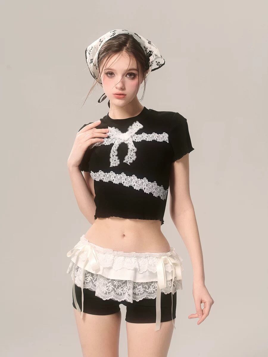 トップス リボン 白 黒 ブラウス カジュアル Tシャツ