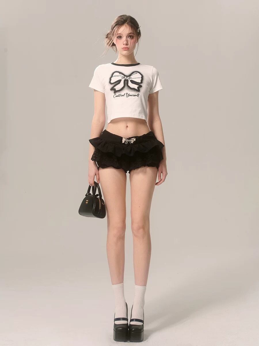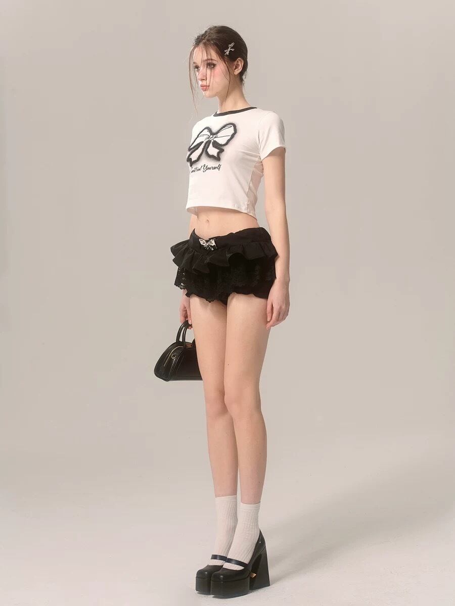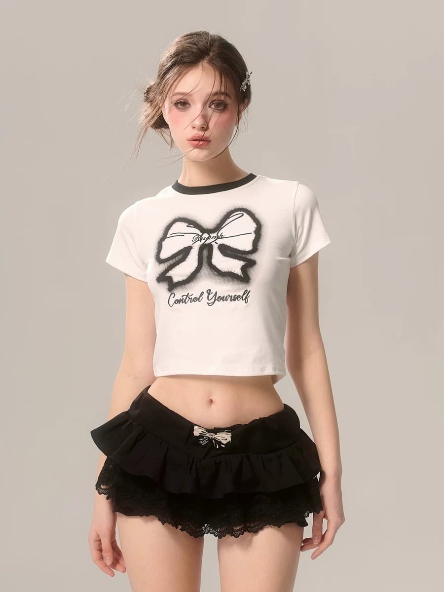 トップス ブラウス リボン 白 黒 カジュアル