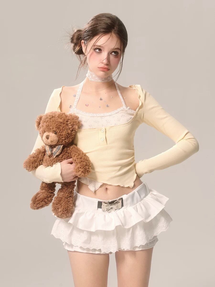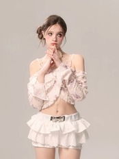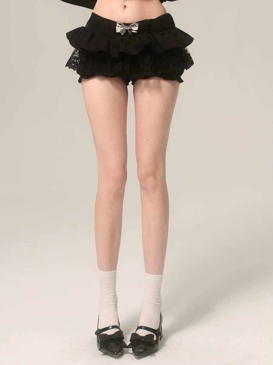 ボトムス 赤 黒 リボン ショートパンツ ミニスカート フリル